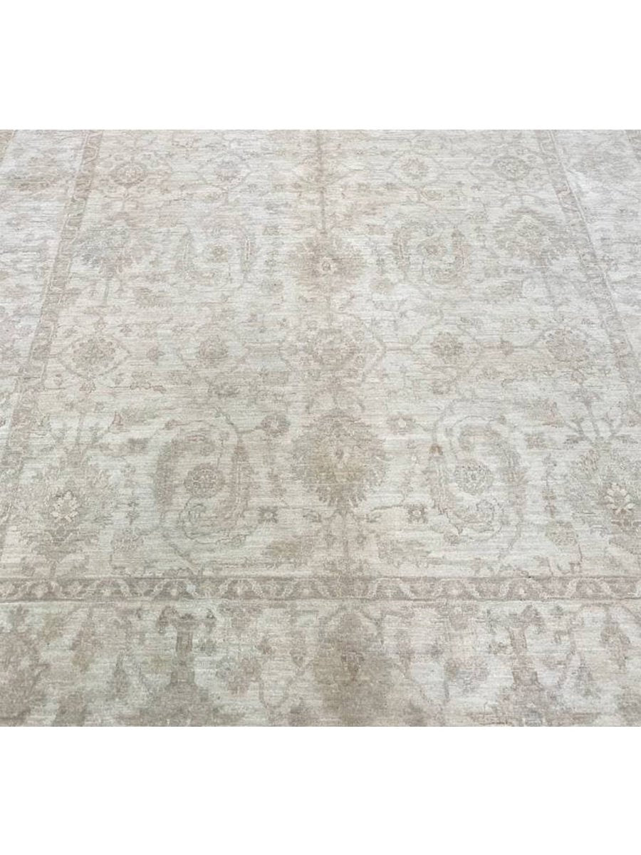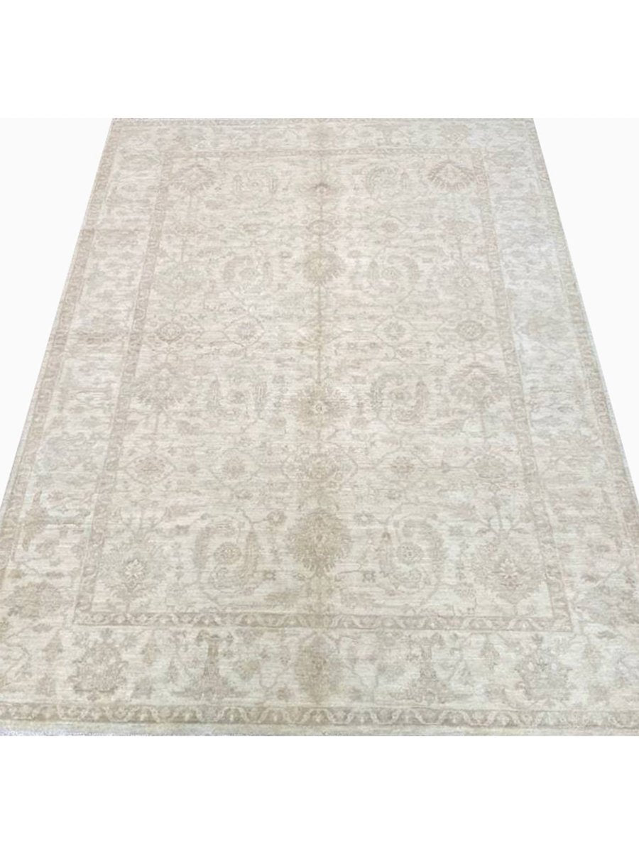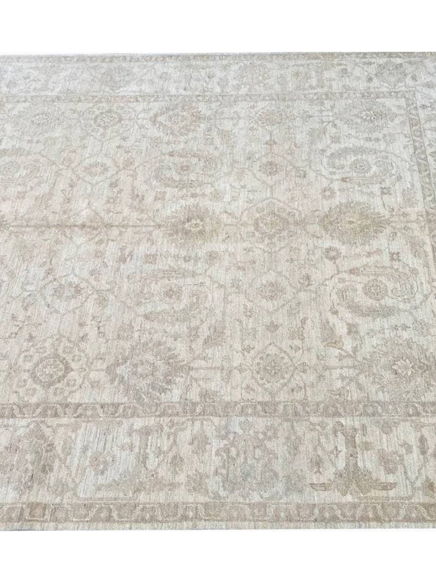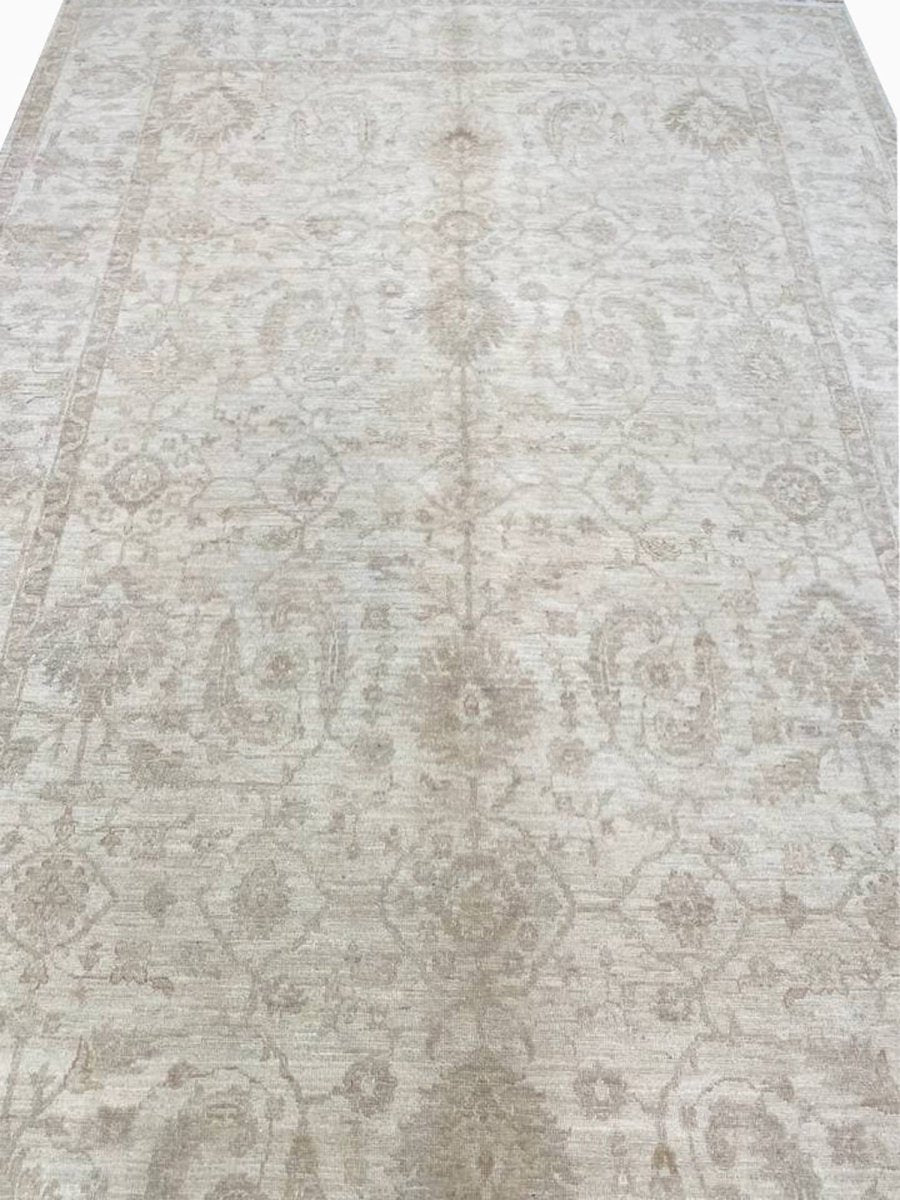 Elevate your home with the 6x9 Handwoven Pakistani Area Rug, a unique piece that seamlessly blends traditional craftsmanship with sophistication. Hand-knotted from high-quality wool, this exquisite rug showcases a floral pattern that adds warmth and elegance to any room. Perfect for open living or dining areas, or as a focal point in your entryway, it creates an inviting ambiance. The soothing sandy tones such as light and dark brown, and beige provides a versatile backdrop, making it an ideal match for any decorative style. This exceptional rug is not merely a fashion accessory; it's a classic piece of art that enhances the beauty of your home. Free shipping is available within the US.