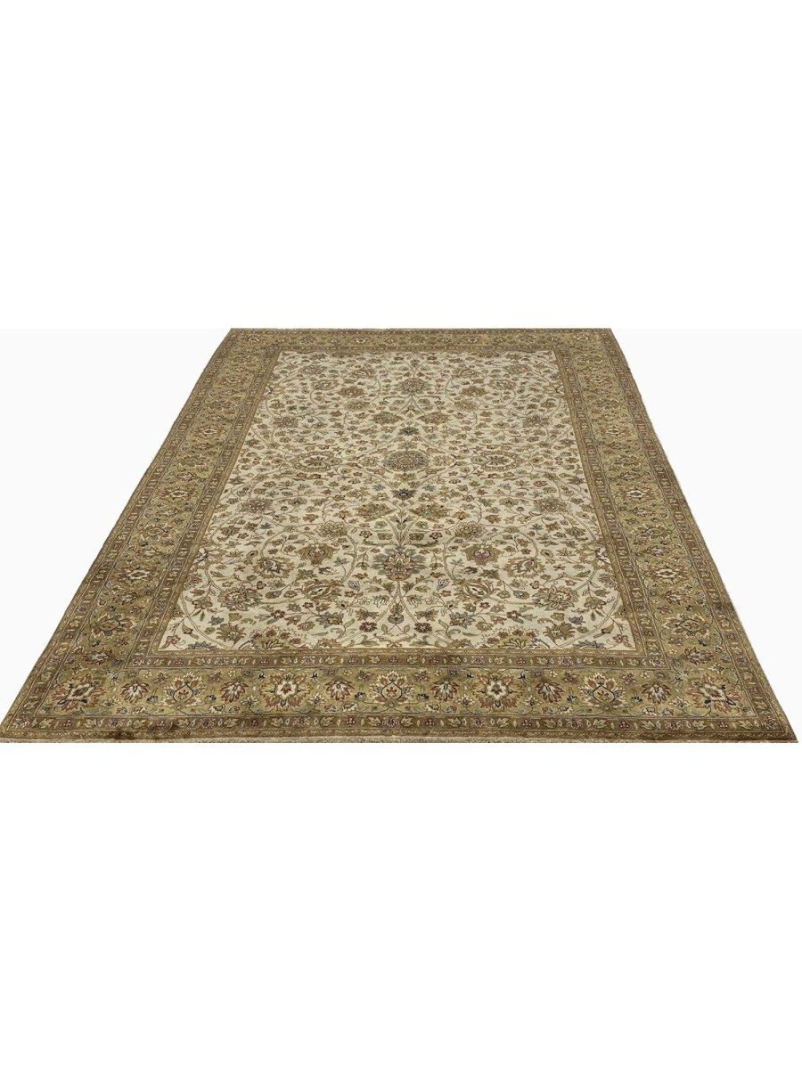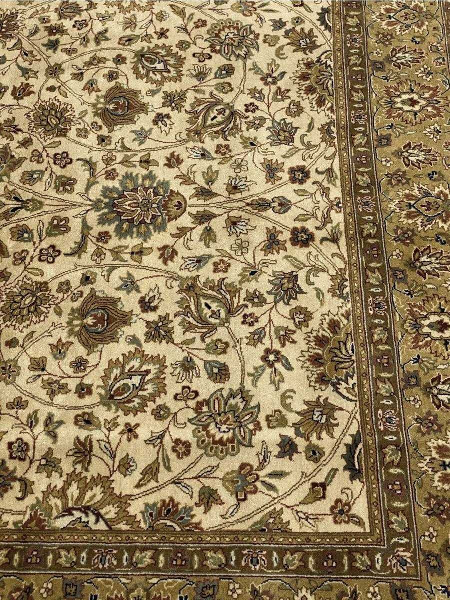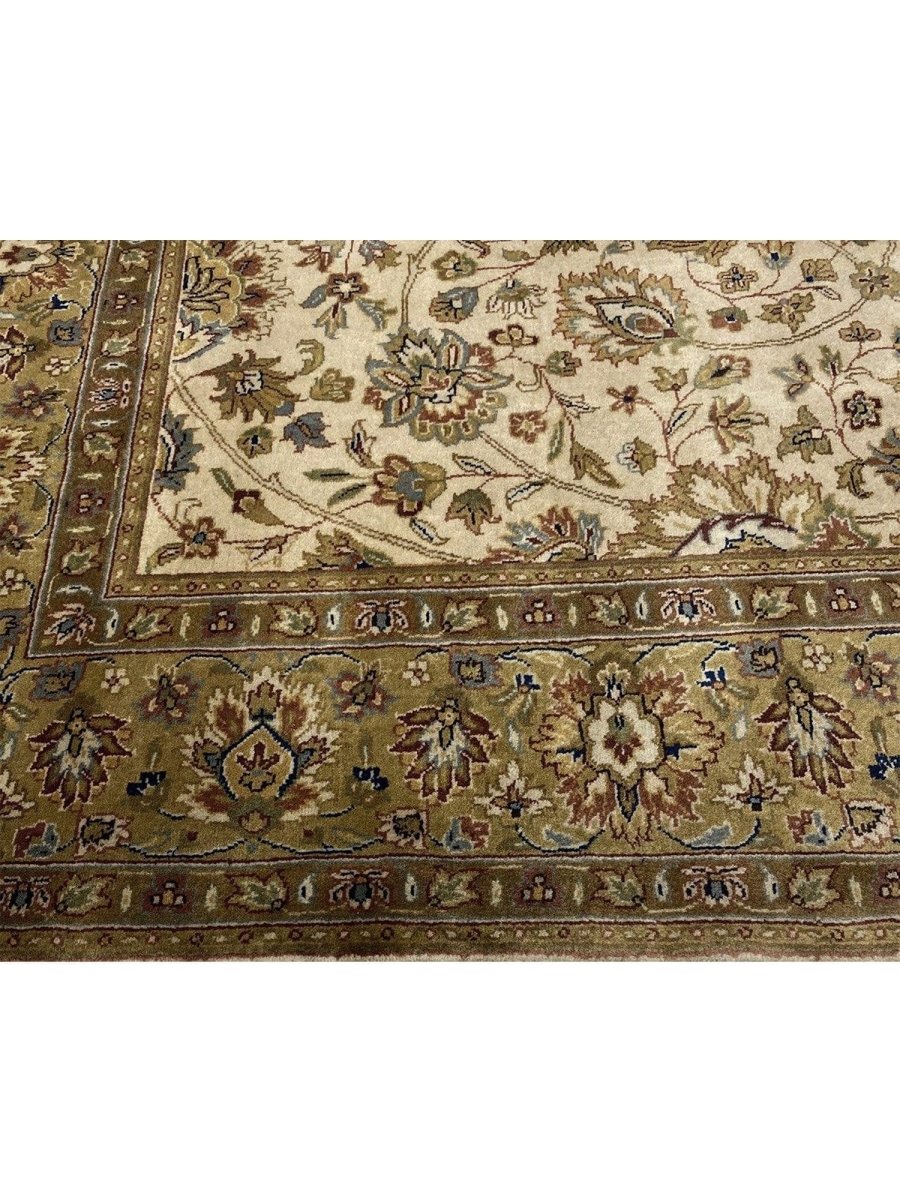Add a touch of classic beauty to your home with this 6x9 handmade area rug, crafted in India. This rug features a captivating floral pattern with a central medallion, showcasing intricate motifs in a soft light beige, gold, and light blue palette. Composed of durable wool, it ensures longevity and is perfect for living areas, bedrooms, or dining spaces. The intricate border detail reflects expert craftsmanship and enduring design. This piece effortlessly complements, adding warmth, texture, and sophistication. A true blend of artistry and utility, it easily brings heritage charm into any space. Enjoy the benefit of free shipping across the United States. Each rug has one-of-a-kind subtle variations inherent to its creation.