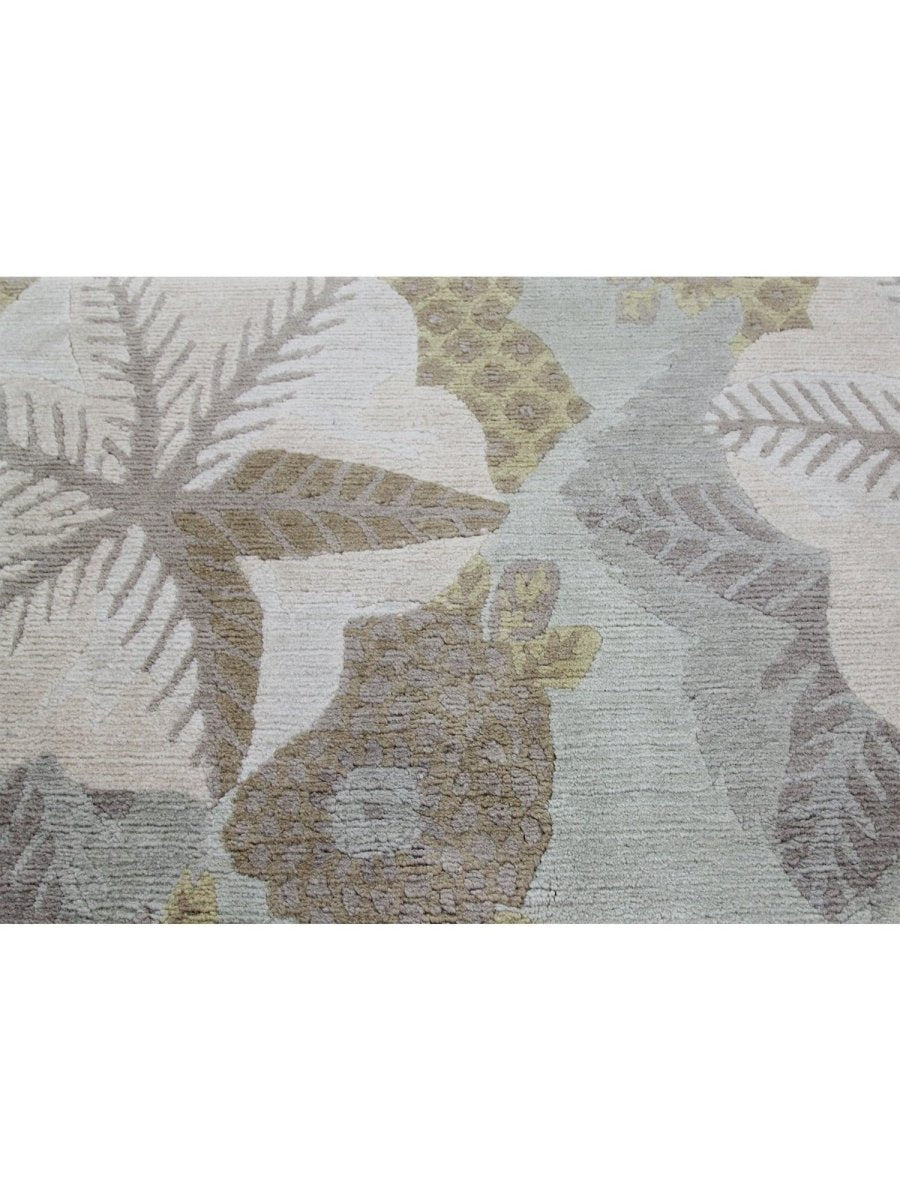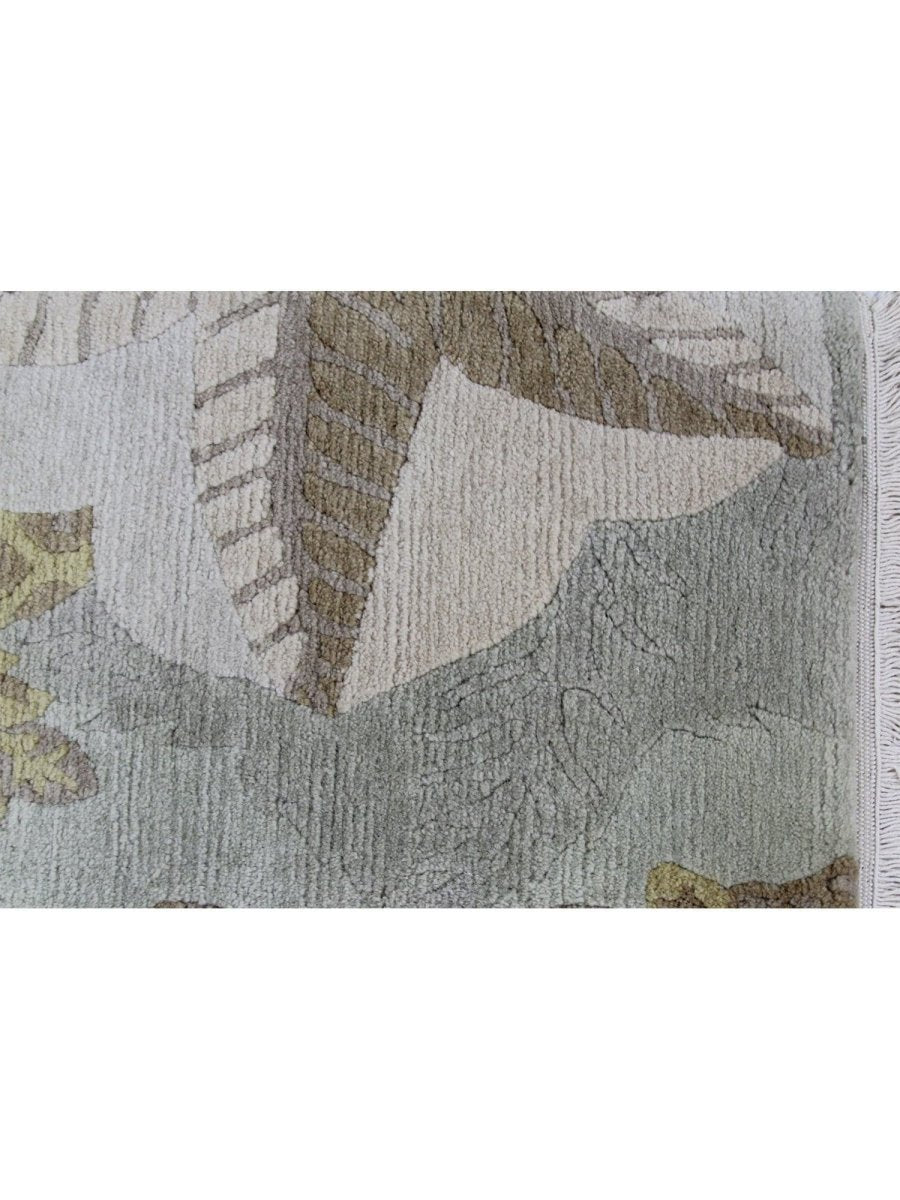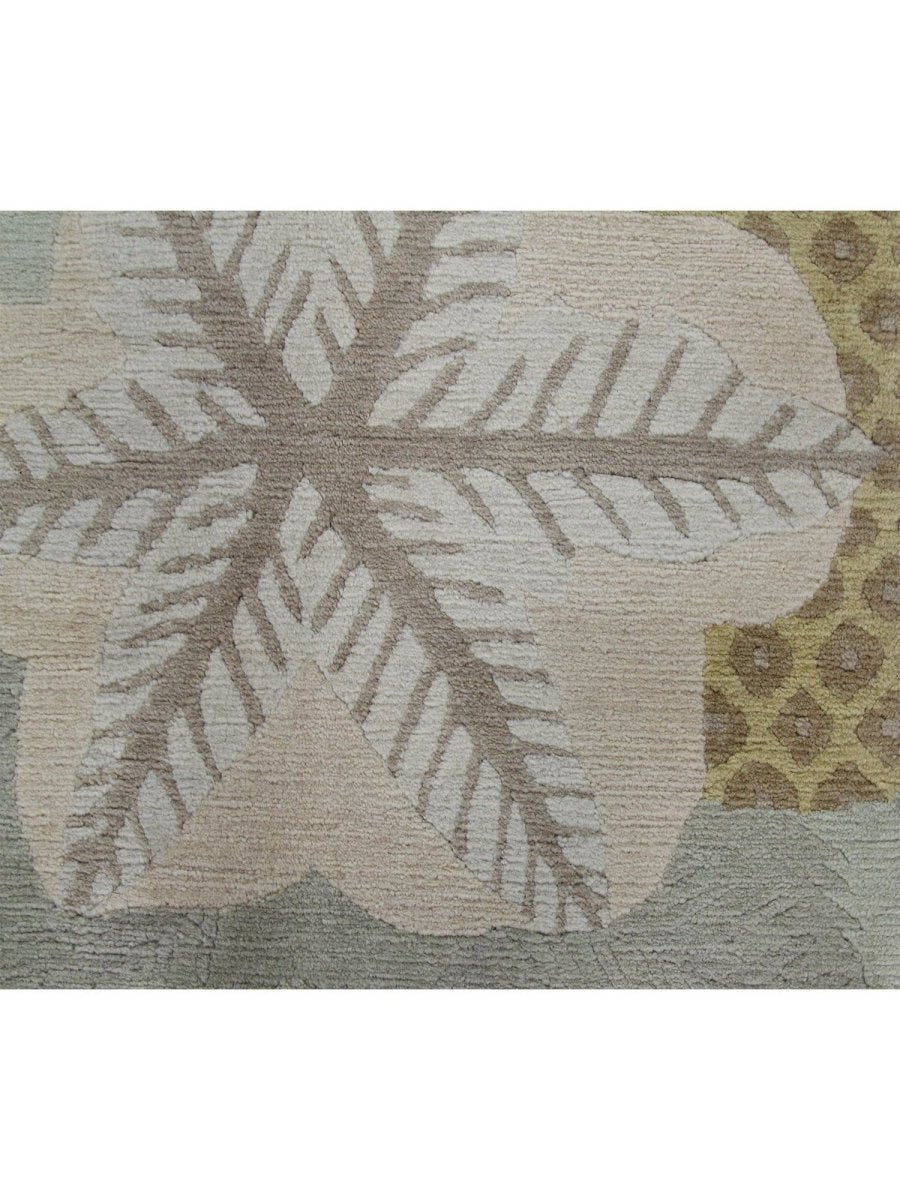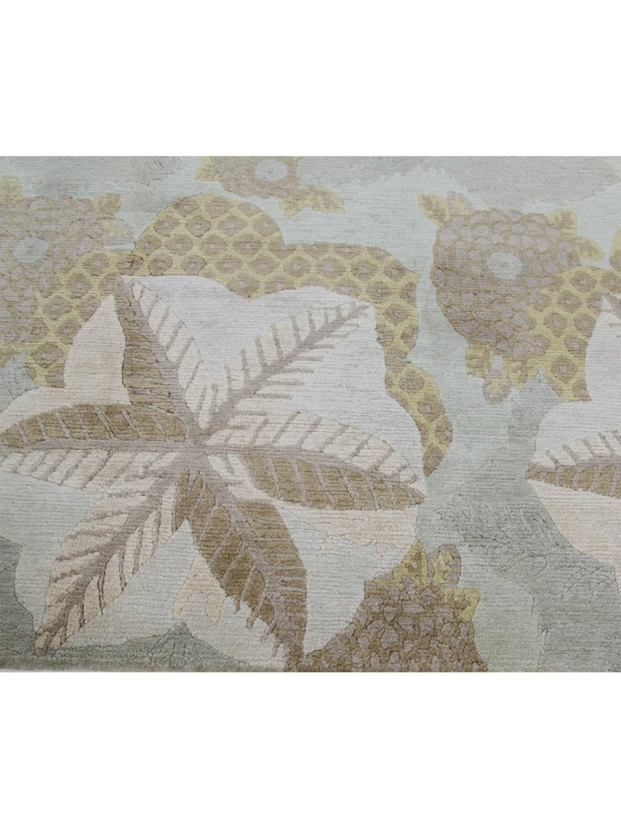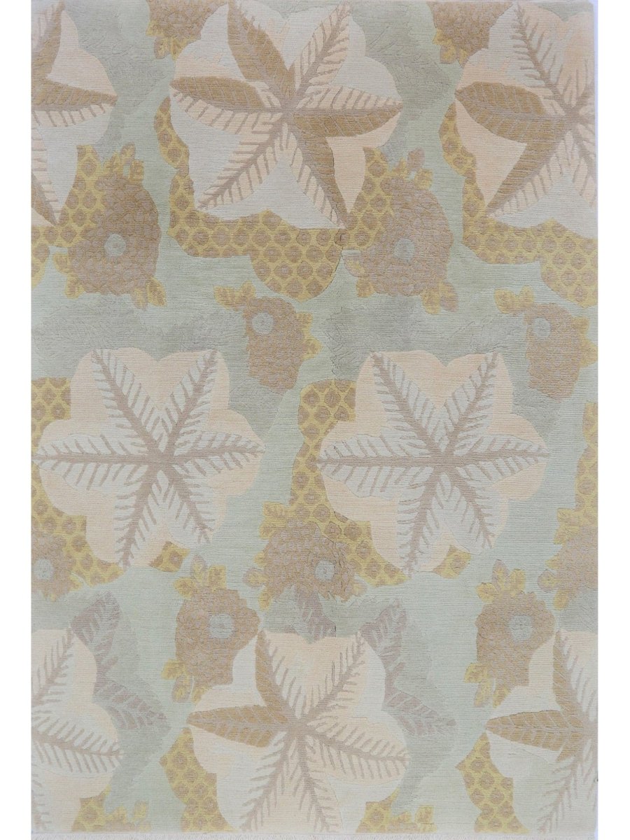 Introduce a captivating and artistic touch to your home with this striking hand-knotted 6x9 Tibetan area rug, meticulously crafted in China. This rug features a bold floral pattern with large, stylized blossoms in shades of cream and beige set against a soft, pale mint green field. Hints of yellow and light brown woven throughout the design add depth and a subtle sheen, creating a unique visual texture. The artistic interpretation of floral forms makes it a distinctive piece for any interior. Crafted from high-quality wool, this rug offers a dense, durable pile that provides comforting softness underfoot and resilient performance for everyday living. Its captivating design and lasting construction make it a versatile and stylish addition that enhances the character of any space for years to come.
