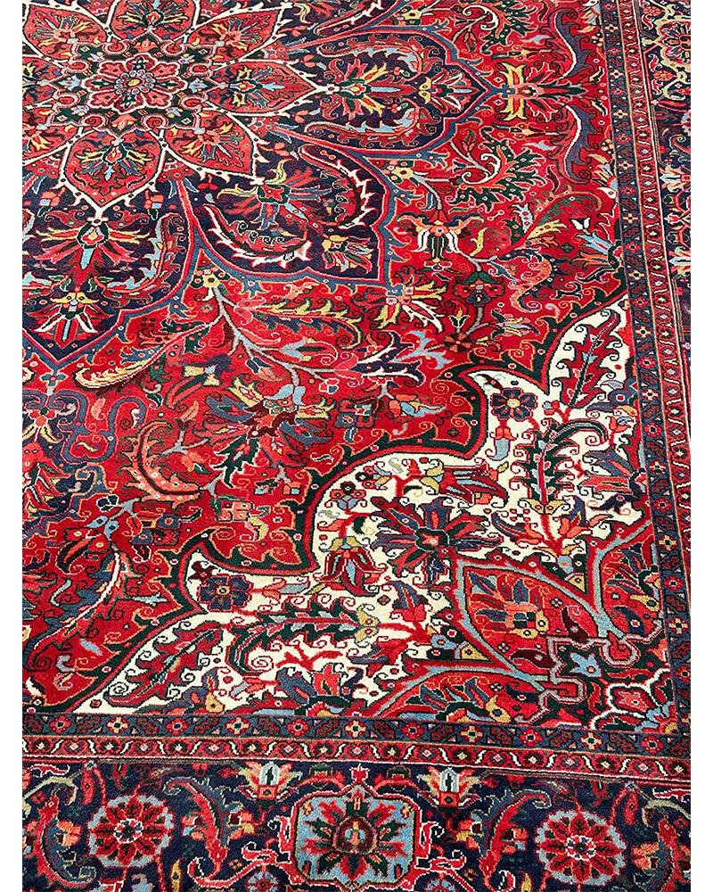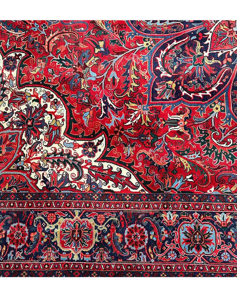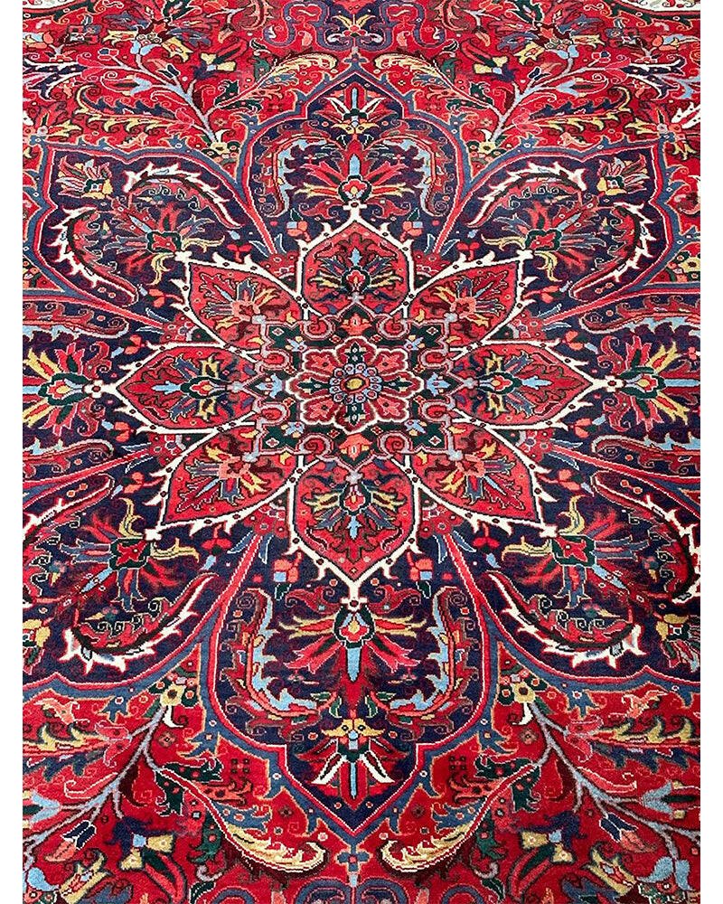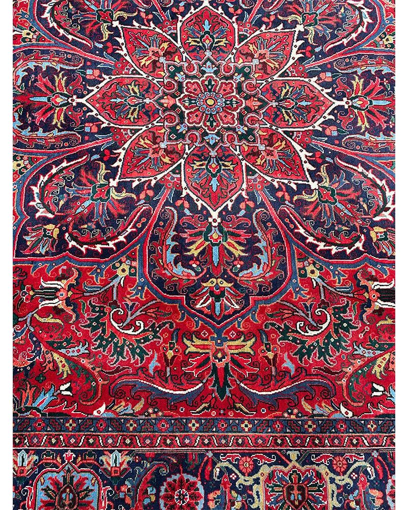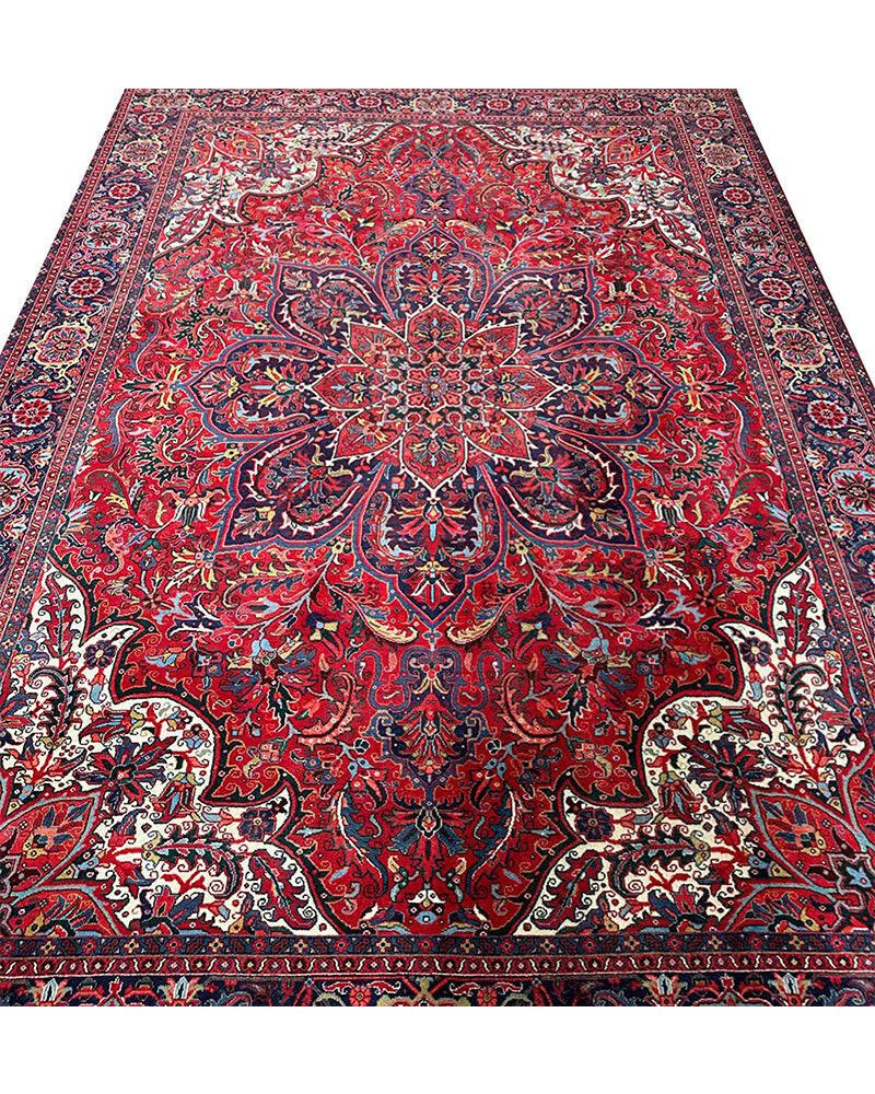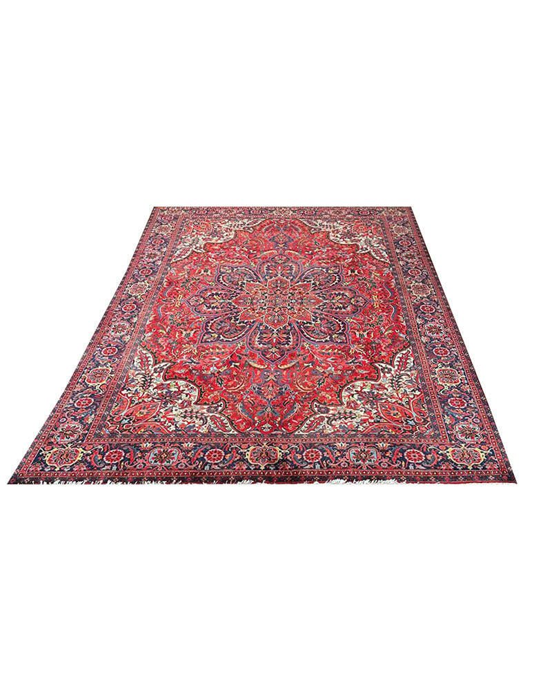 Discover the exquisite beauty of this 6x9 Old Persian Heriz Area Rug. Hand-knotted in Persia, this rug features a classic design with a prominent central medallion, beautifully complemented by a dense, all-over floral pattern that fills the field and borders with intricate details of blooms, vines, and leaves. The color palette is rich and elegant, with a dominant rich red field, and the central medallion and all-over floral motifs rendered in shades of blue, beige and pink. Its generous size makes it perfect for anchoring a living room, dining area, or spacious bedroom, adding warmth, style, and a commanding presence. This traditional rug embodies enduring elegance and skilled Persian craftsmanship. Enjoy the convenience of free US shipping.