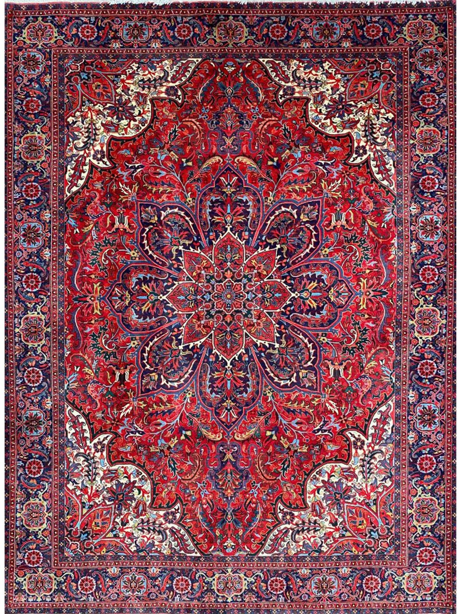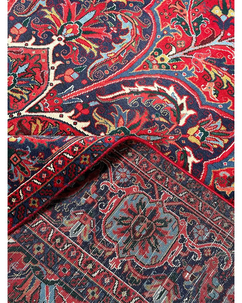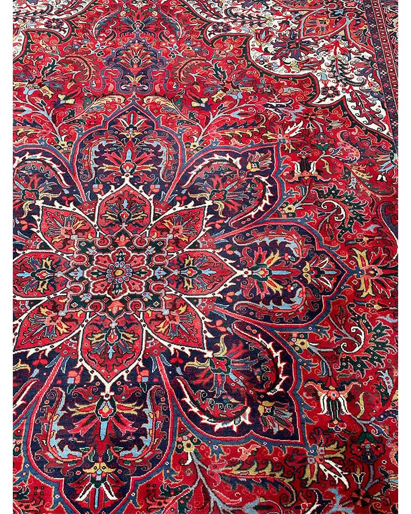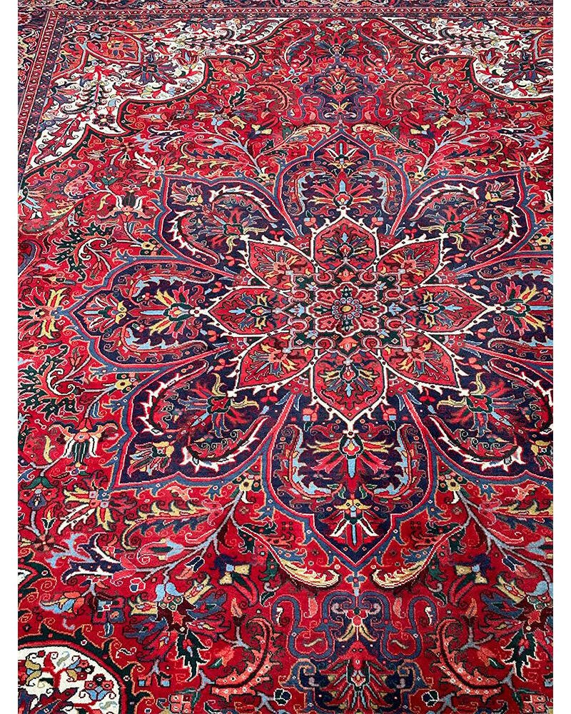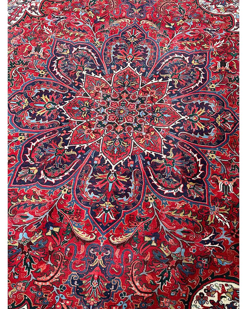 Discover the exquisite beauty of this 6x9 Old Persian Heriz Area Rug. Hand-knotted in Persia, this rug features a classic design with a prominent central medallion, beautifully complemented by a dense, all-over floral pattern that fills the field and borders with intricate details of blooms, vines, and leaves. The color palette is rich and elegant, with a dominant rich red field, and the central medallion and all-over floral motifs rendered in shades of blue, beige and pink. Its generous size makes it perfect for anchoring a living room, dining area, or spacious bedroom, adding warmth, style, and a commanding presence. This traditional rug embodies enduring elegance and skilled Persian craftsmanship. Enjoy the convenience of free US shipping.