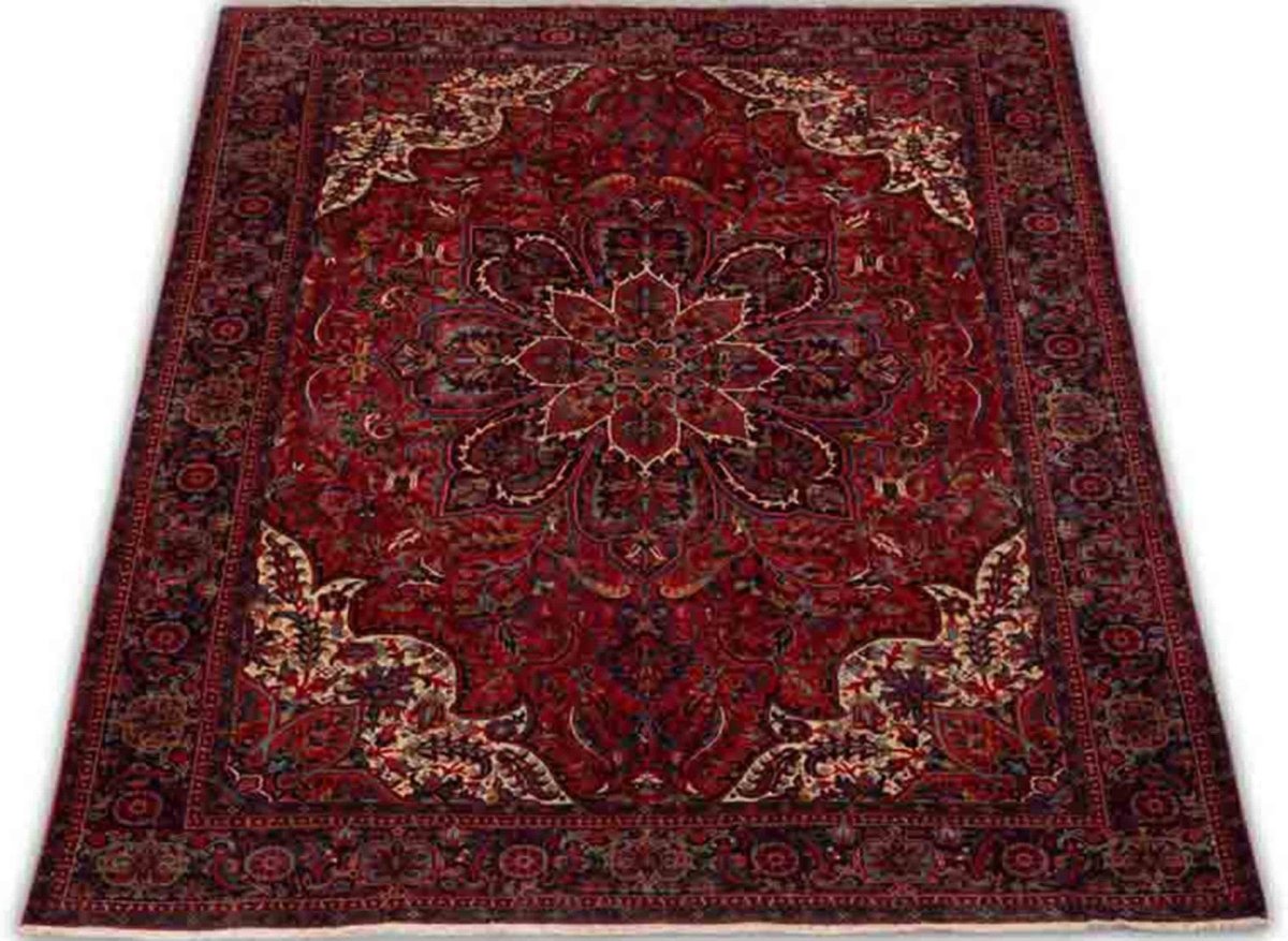 Discover the enduring artistry of this 6x9 Old Persian Heriz Area Rug. Hand-knotted in Persia, this rug features a classic design with a prominent central medallion, beautifully complemented by a geometric pattern that fills the field and borders with intricate detail. The color palette is rich and deep, featuring a red field with medallion pattern rendered in shades of red, blue, and beige. Crafted from fine wool, this traditional rug offers both exceptional durability and a comfortable texture underfoot. Its versatile size makes it perfect for anchoring a living room, dining area, or spacious bedroom, adding warmth, style, and a commanding presence. This rug embodies timeless elegance and skilled craftsmanship. Enjoy the convenience of free US shipping.