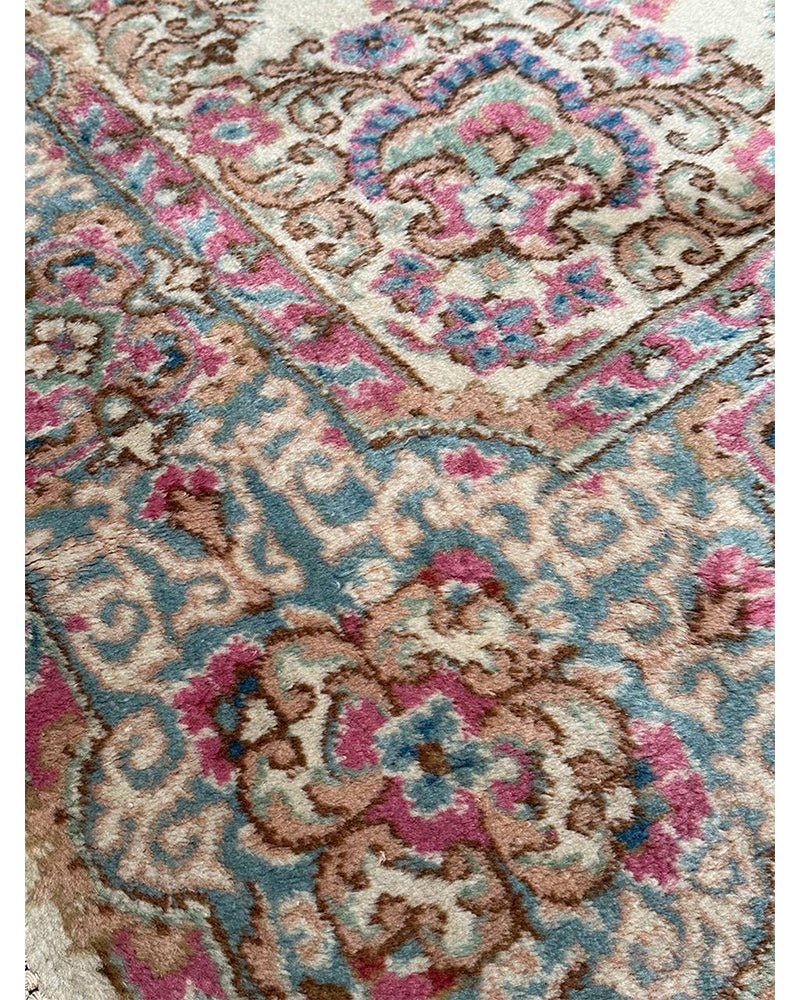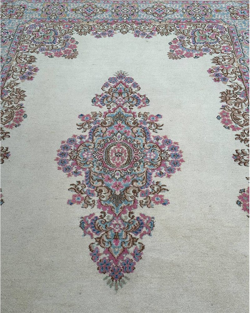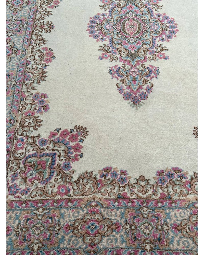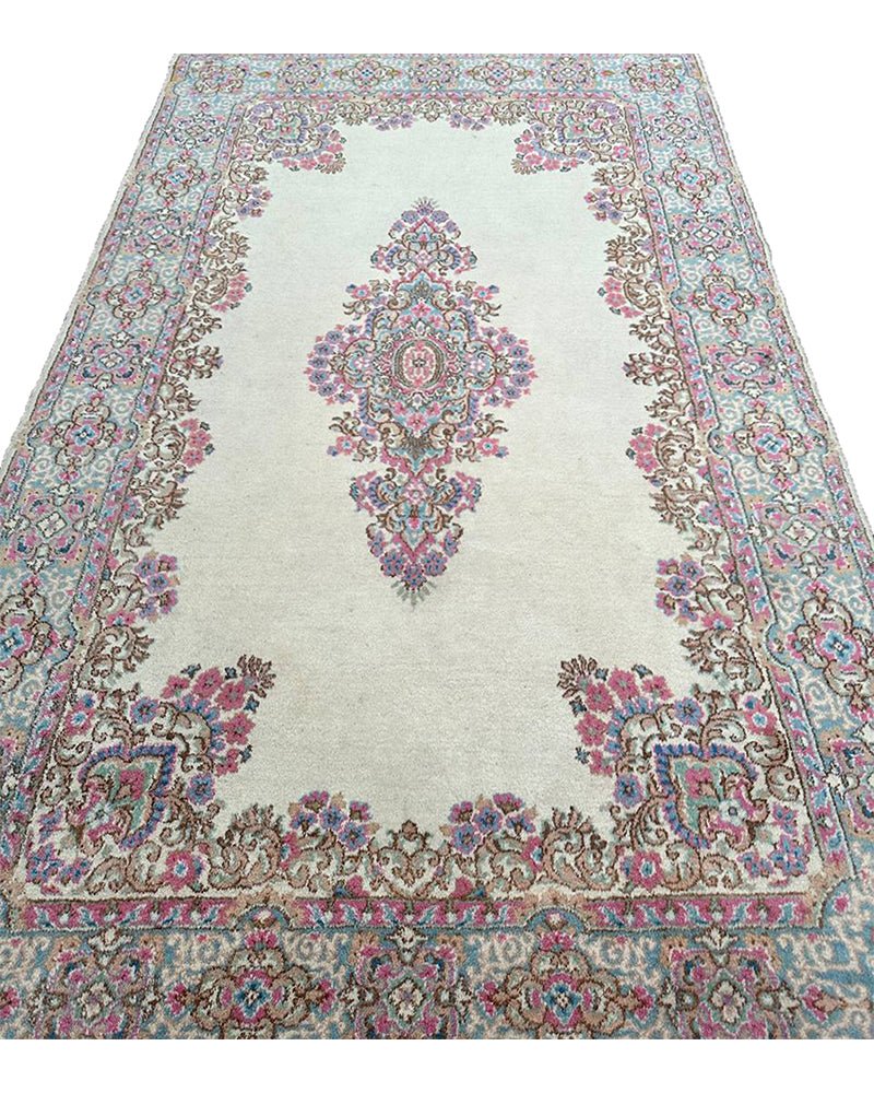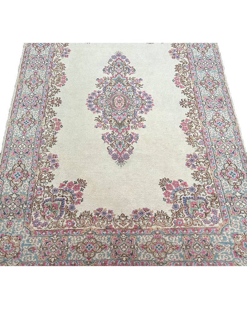 The 6x9 Old Persian Kerman Area Rug is a unique treasure that embodies the rich history of Persian weaving and will transform your living area. Made from high-quality wool, this gorgeous traditional rug features a medallion design that blends in perfectly with any type of interior design. It provides a friendly atmosphere and is perfect for large dining rooms, comfortable living spaces, or as a chic addition in your workplace. It is a multipurpose addition to your house because of the striking blend of beige, purple, Pink, and blue hues that offer depth and character. This amazing carpeting is a stunning work of art that elevates your living area and goes beyond simple decoration. Take advantage of free US delivery.