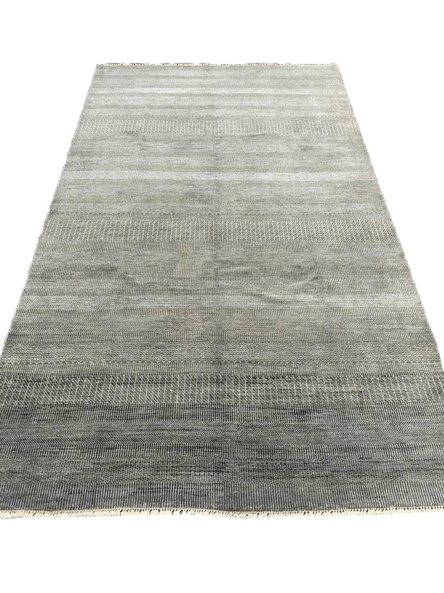 Made in India, this 6x9 tribal area rug blends tribal design with current elegance in black and gray hues. Its compact size makes it ideal for dining rooms, living spaces, or executive offices. The intricate pattern is soft yet impactful, grounding your interior with refined style. A one-of-a-kind textile that adds quiet sophistication to any room. Durable yet luxurious, it's made for beauty and practicality. Free shipping in the US.