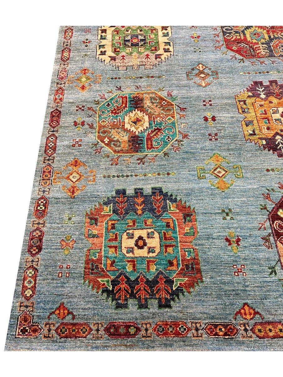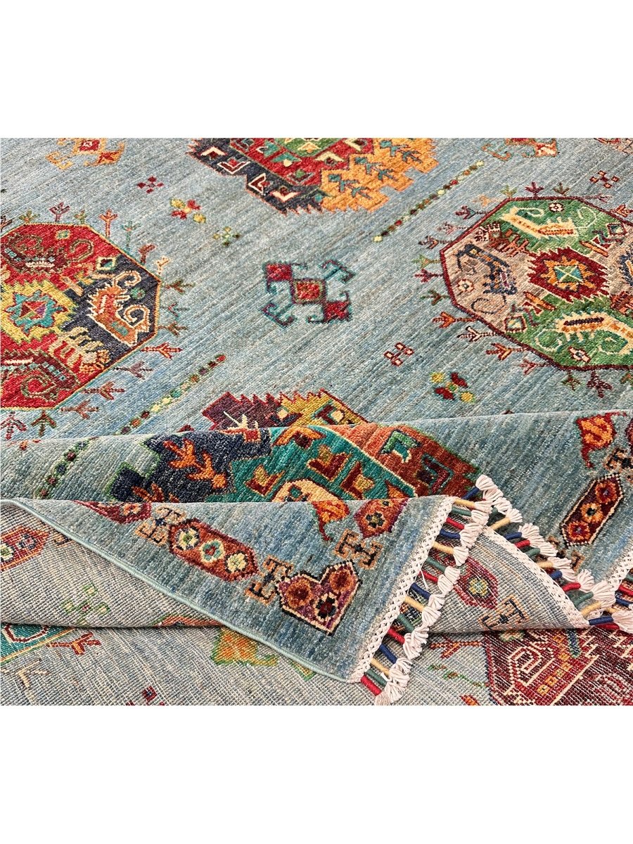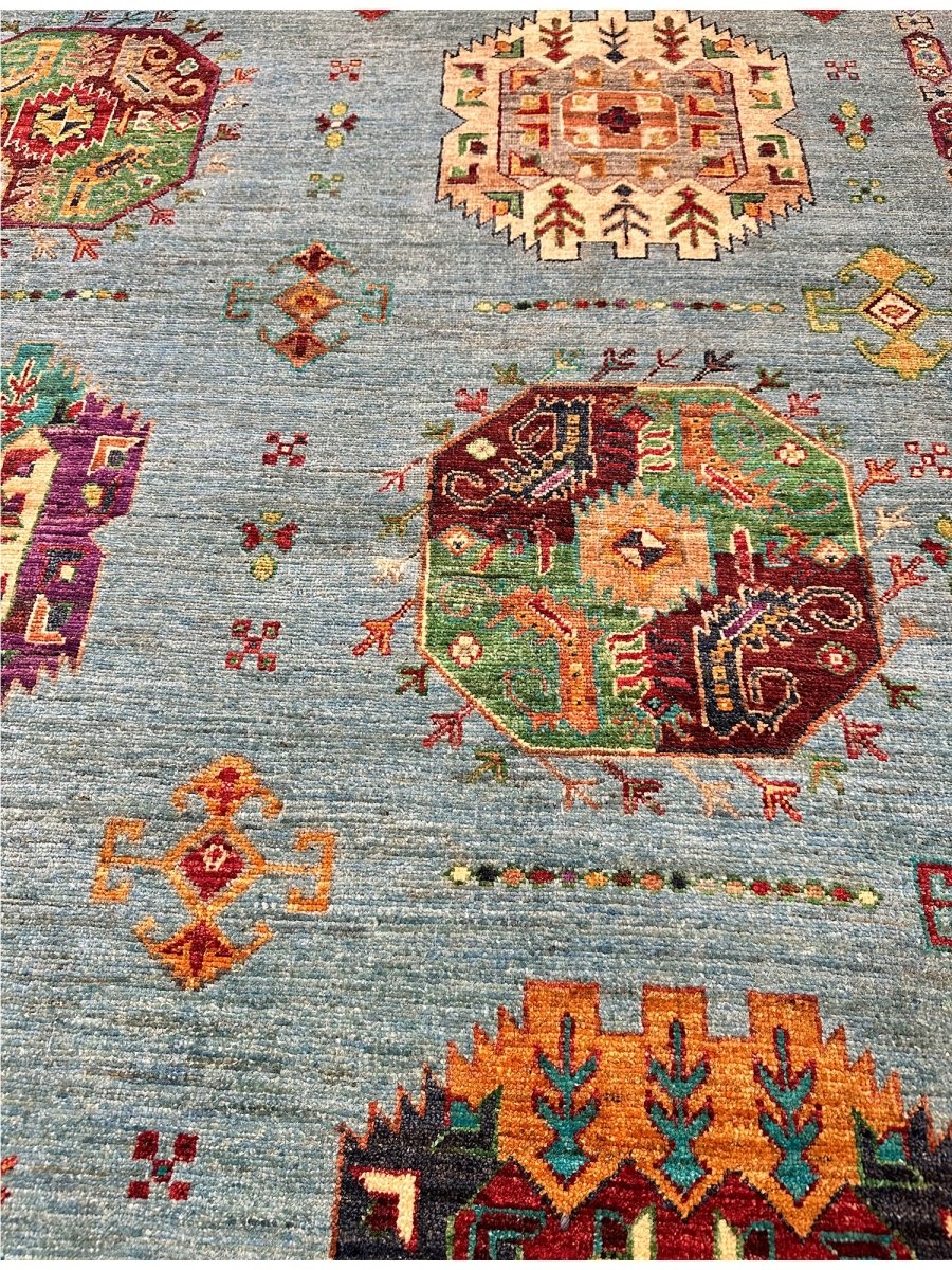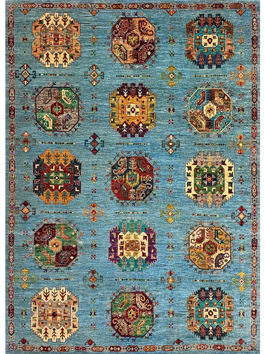 Experience the beauty of the 7x9 Handmade Tribal Style area rug, a unique piece that brings classic sophistication to your home. Hand-knotted with high-quality wool, this exquisite rug features a tribal pattern that adds charm to any room. It brings warmth and hospitality to your home. The lovely blue, burgundy, orange, tan, and beige colors make it a versatile choice for various styles. This remarkable piece not only enhances your decor but also serves as a stunning work of art. Enjoy free shipping within the US.