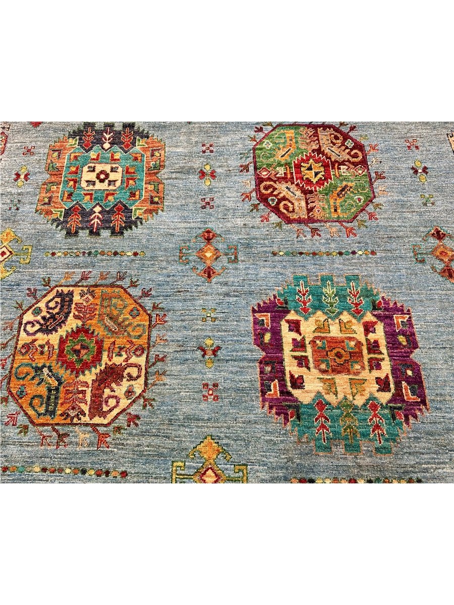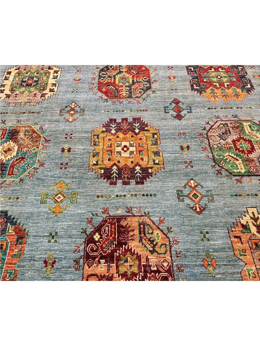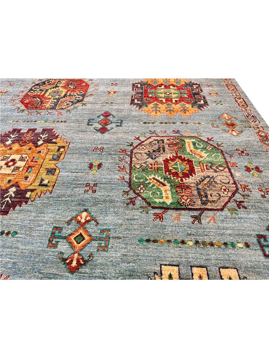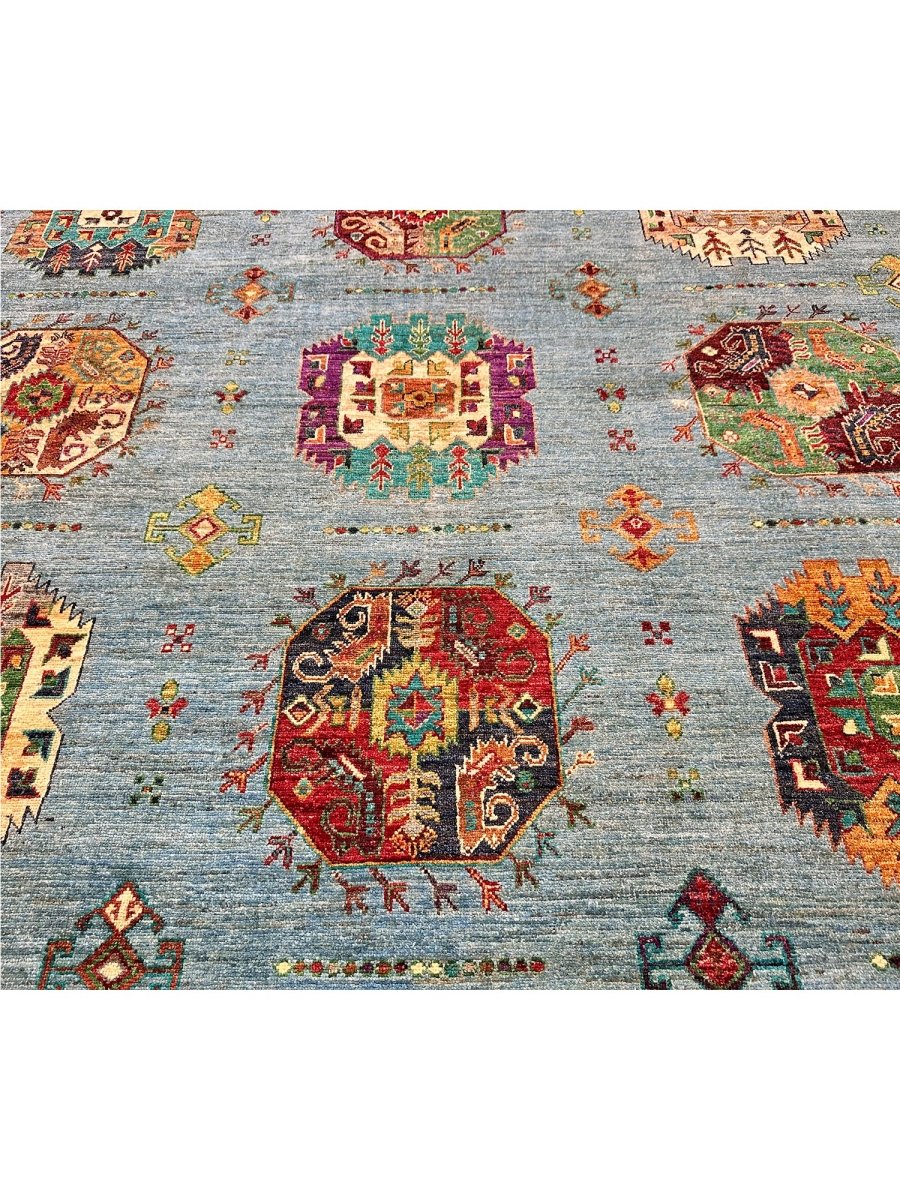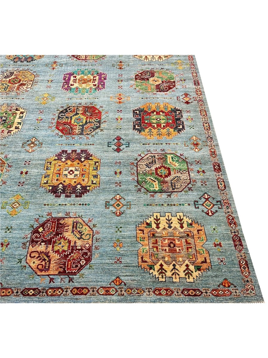 Experience the beauty of the 7x9 Handmade Tribal Style area rug, a unique piece that brings classic sophistication to your home. Hand-knotted with high-quality wool, this exquisite rug features a tribal pattern that adds charm to any room. It brings warmth and hospitality to your home. The lovely blue, burgundy, orange, tan, and beige colors make it a versatile choice for various styles. This remarkable piece not only enhances your decor but also serves as a stunning work of art. Enjoy free shipping within the US.