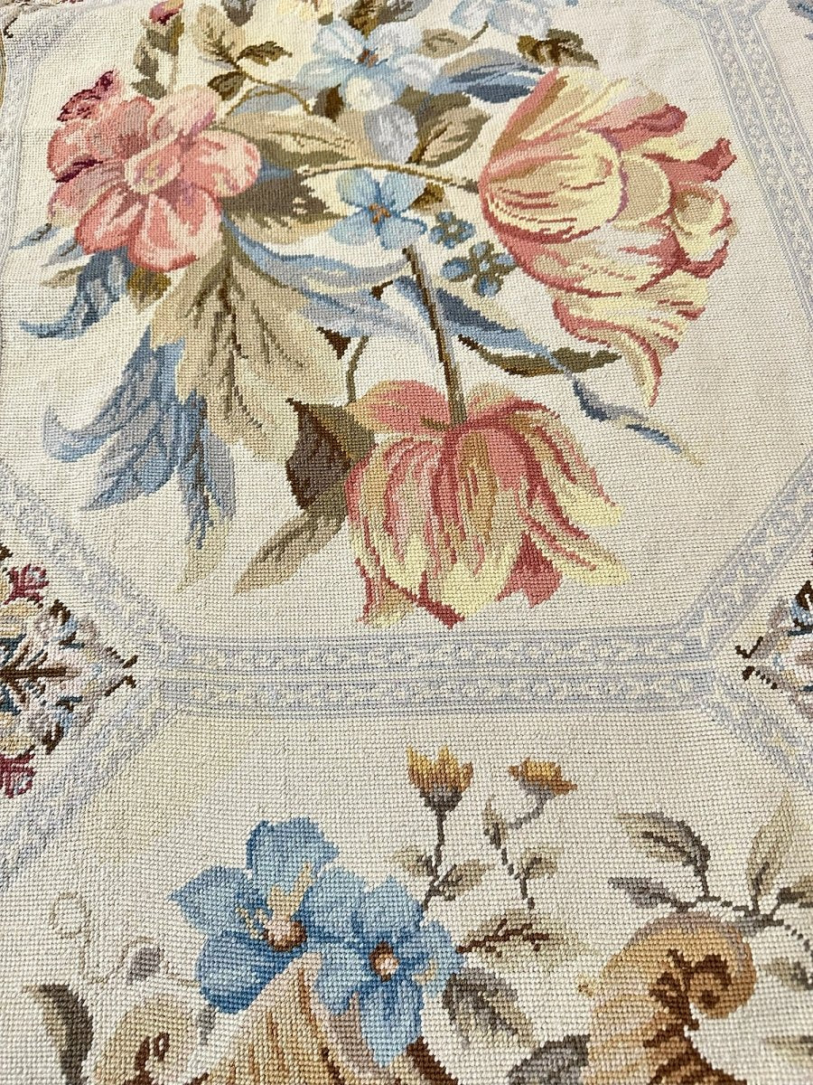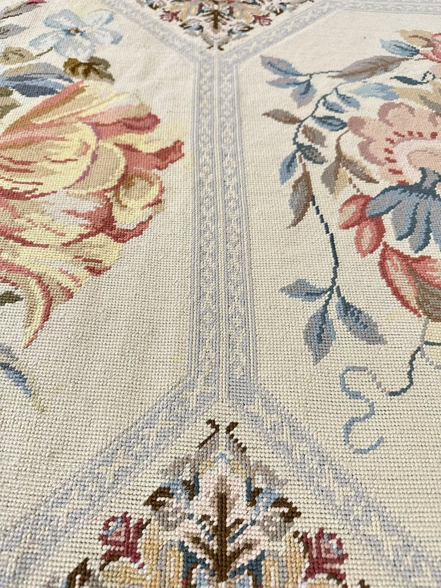 Delicate detailing and fine needlepoint craftsmanship give the rug a tapestry-like quality, while the wool construction ensures durability, softness, and lasting beauty.