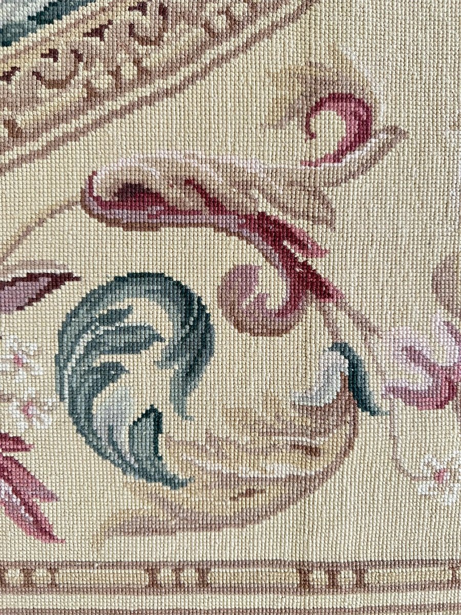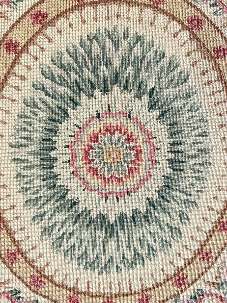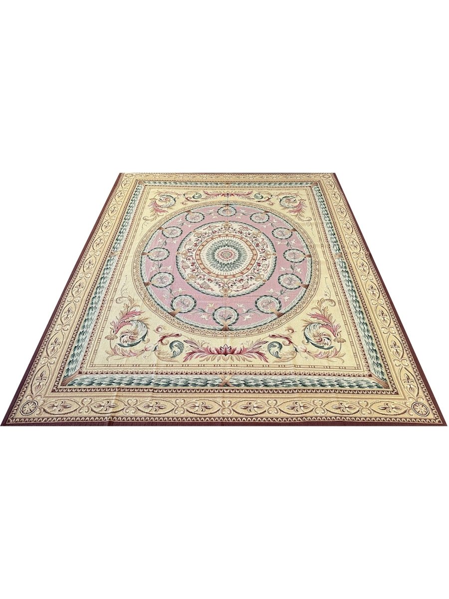 Crafted from premium wool using traditional needlepoint techniques and made in China, this new rug offers exceptional artistry, a smooth tapestry-like texture, and timeless sophistication.