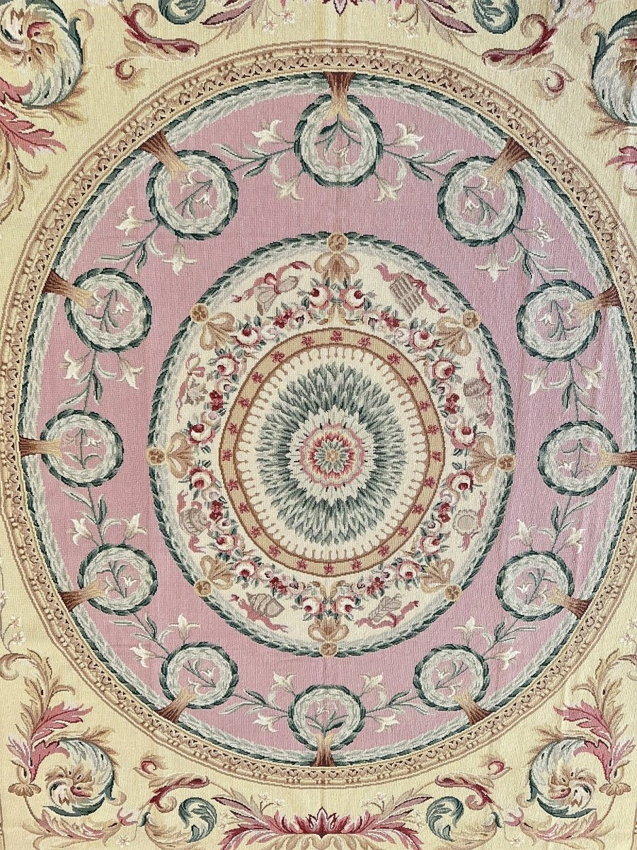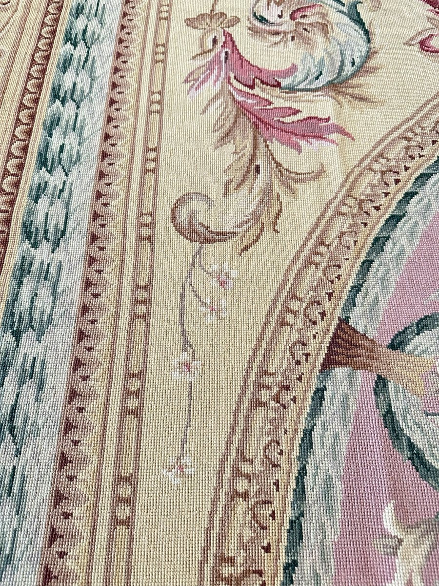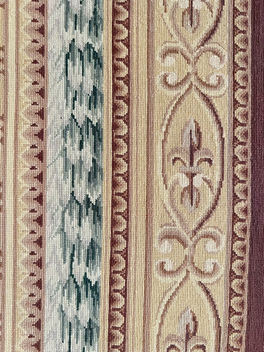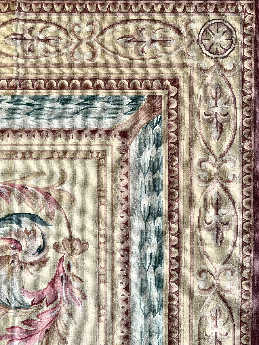 Crafted from premium wool using traditional needlepoint techniques and made in China, this new rug offers exceptional artistry, a smooth tapestry-like texture, and timeless sophistication.