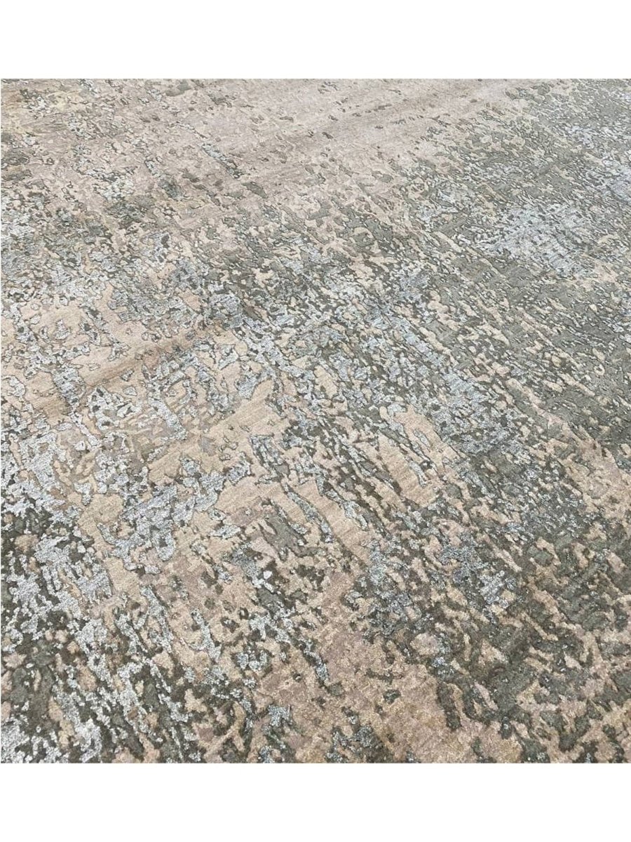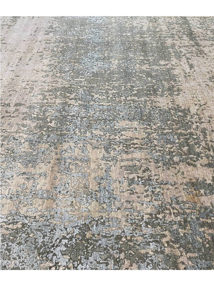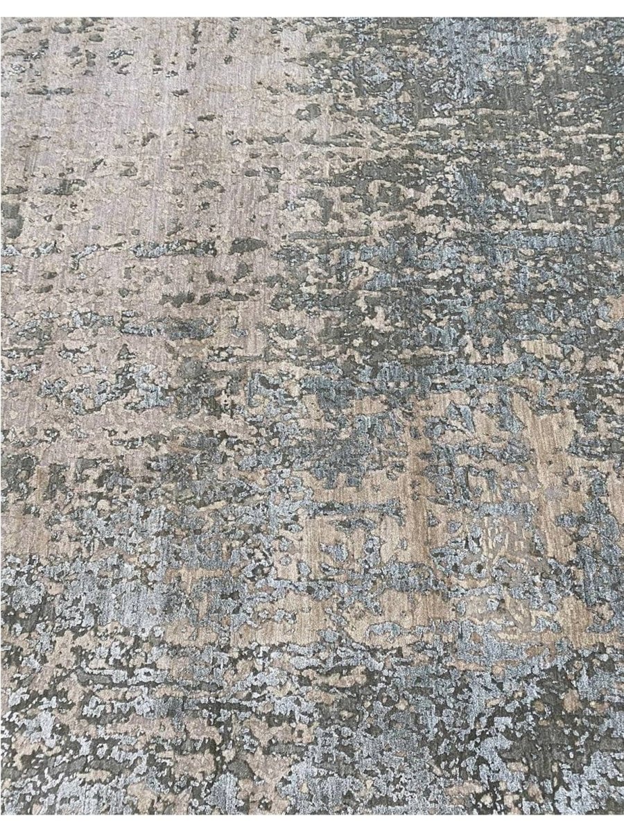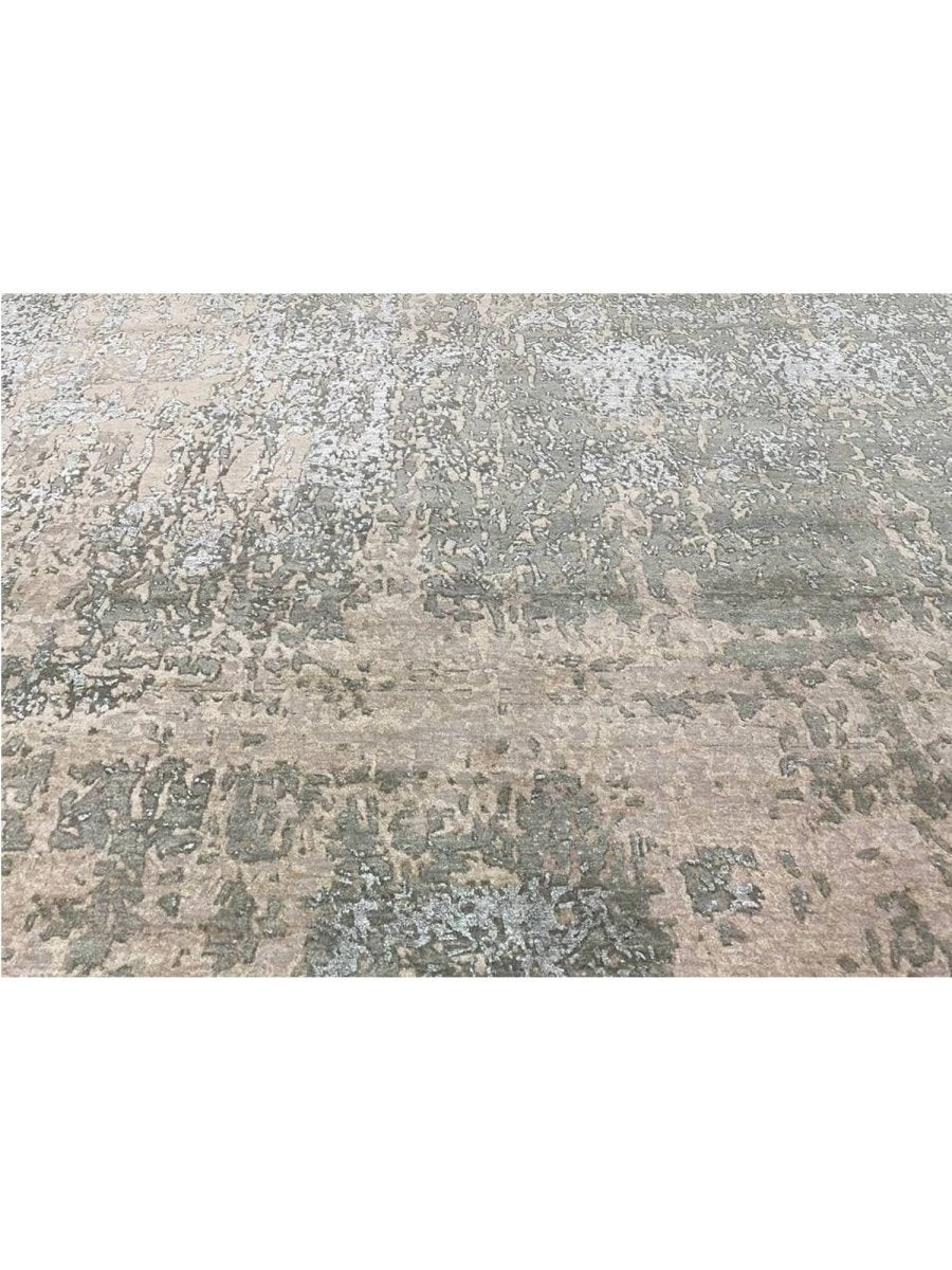 Enhance your space with this 9x12 modern abstract rug, hand-knotted in India from high-quality wool and bamboo silk. Featuring a refined blend of taupe brown with beige, warm gray, and slate blue tones, its sophisticated abstract patterns add depth, character, and visual interest to any interior. With an exact size of 9'0" x 12'3", it provides generous coverage while maintaining a balanced and harmonious presence. Combining durability with a soft, luxurious texture, this rug offers long-lasting beauty and comfort. Its elegant design complements a variety of decor styles, effortlessly enhancing the overall aesthetic of your home.