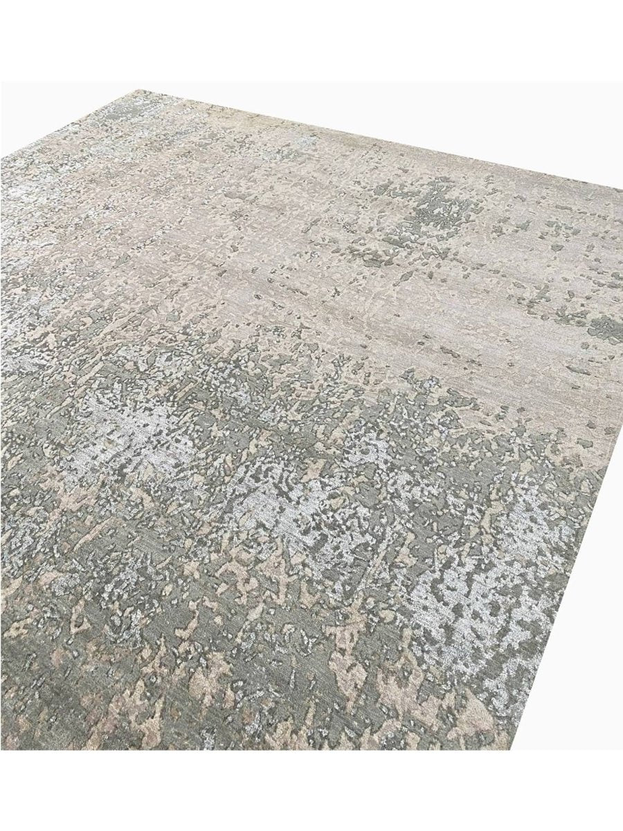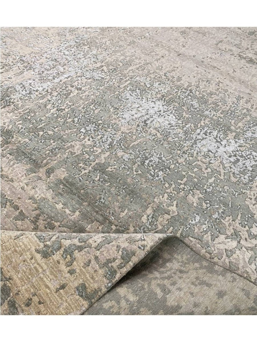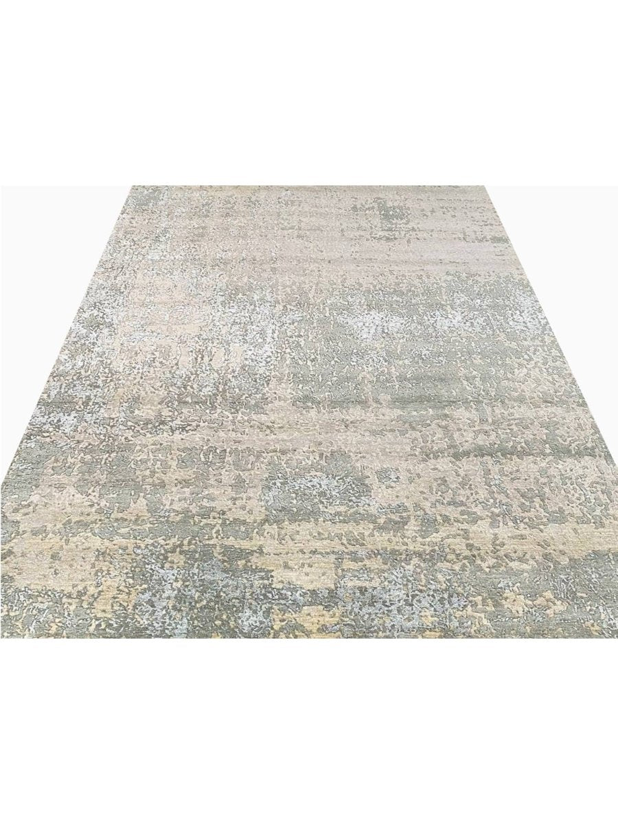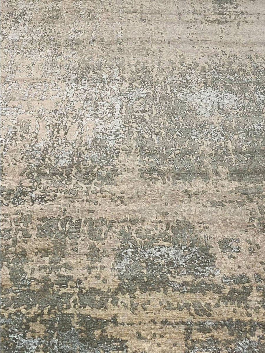 Enhance your space with this 9x12 modern abstract rug, hand-knotted in India from high-quality wool and bamboo silk. Featuring a refined blend of taupe brown with beige, warm gray, and slate blue tones, its sophisticated abstract patterns add depth, character, and visual interest to any interior. With an exact size of 9'0" x 12'3", it provides generous coverage while maintaining a balanced and harmonious presence. Combining durability with a soft, luxurious texture, this rug offers long-lasting beauty and comfort. Its elegant design complements a variety of decor styles, effortlessly enhancing the overall aesthetic of your home.