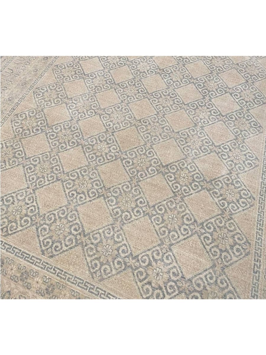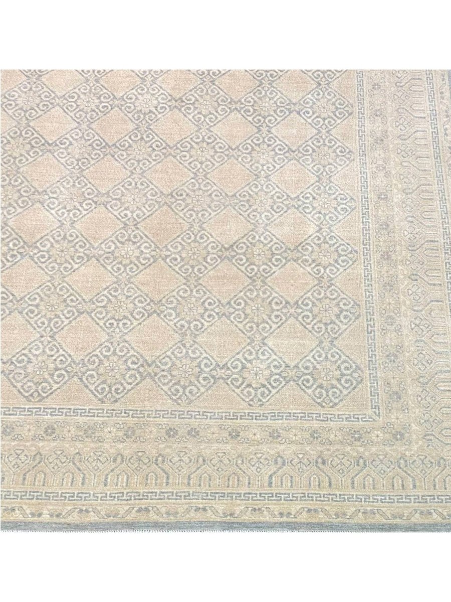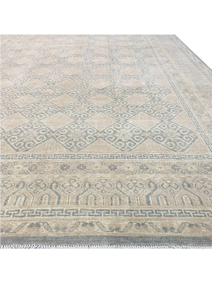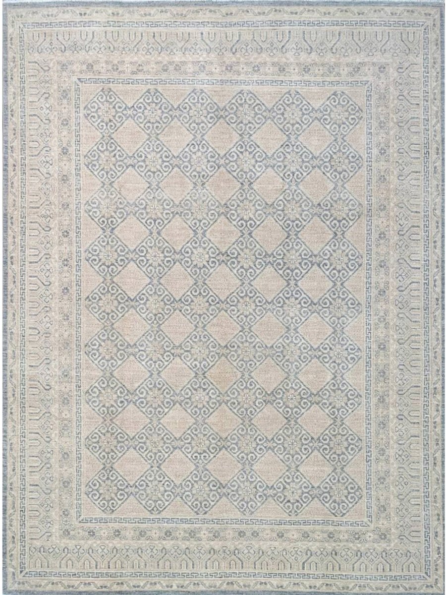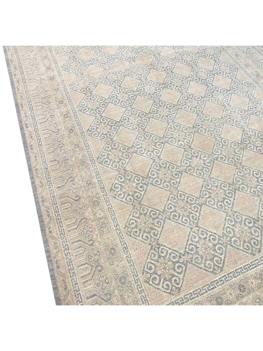 Enhance your space with this distinctive 9x12 Pakistani Area Rug, featuring a harmonious blend of brown, gray, and ivory tones. Expertly hand-knotted by skilled artisans, this rug showcases a refined geometric pattern that adds character, depth, and artistic appeal. Crafted from durable wool, it offers long-lasting quality while maintaining a warm and inviting presence. Thoughtfully designed, this exceptional piece serves as both a functional foundation and a sophisticated decorative accent. Enjoy the convenience of free shipping within the U.S. for a seamless purchasing experience.