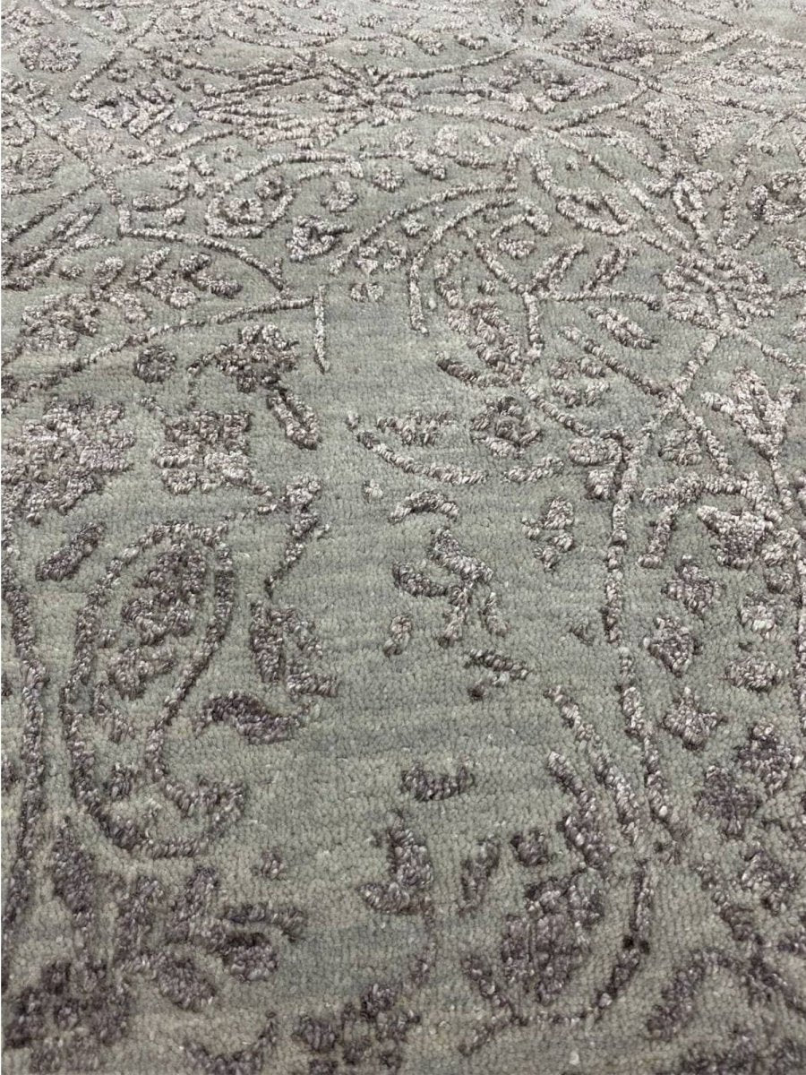 Revamp your home with this exquisite 9x12 Transitional Rug, hand-knotted in India for exceptional quality and durability. Crafted from a premium blend of wool and bamboo silk, this rug offers a plush texture with a soft, radiant finish. The sophisticated gray, beige, and brown hues create a versatile palette that complements a wide range of interior styles. With exact dimensions of 9'2" x 12'2", this finely crafted rug brings timeless elegance and charm to any space. Enjoy the convenience of free shipping within the U.S. and elevate your home with this masterfully crafted piece.
