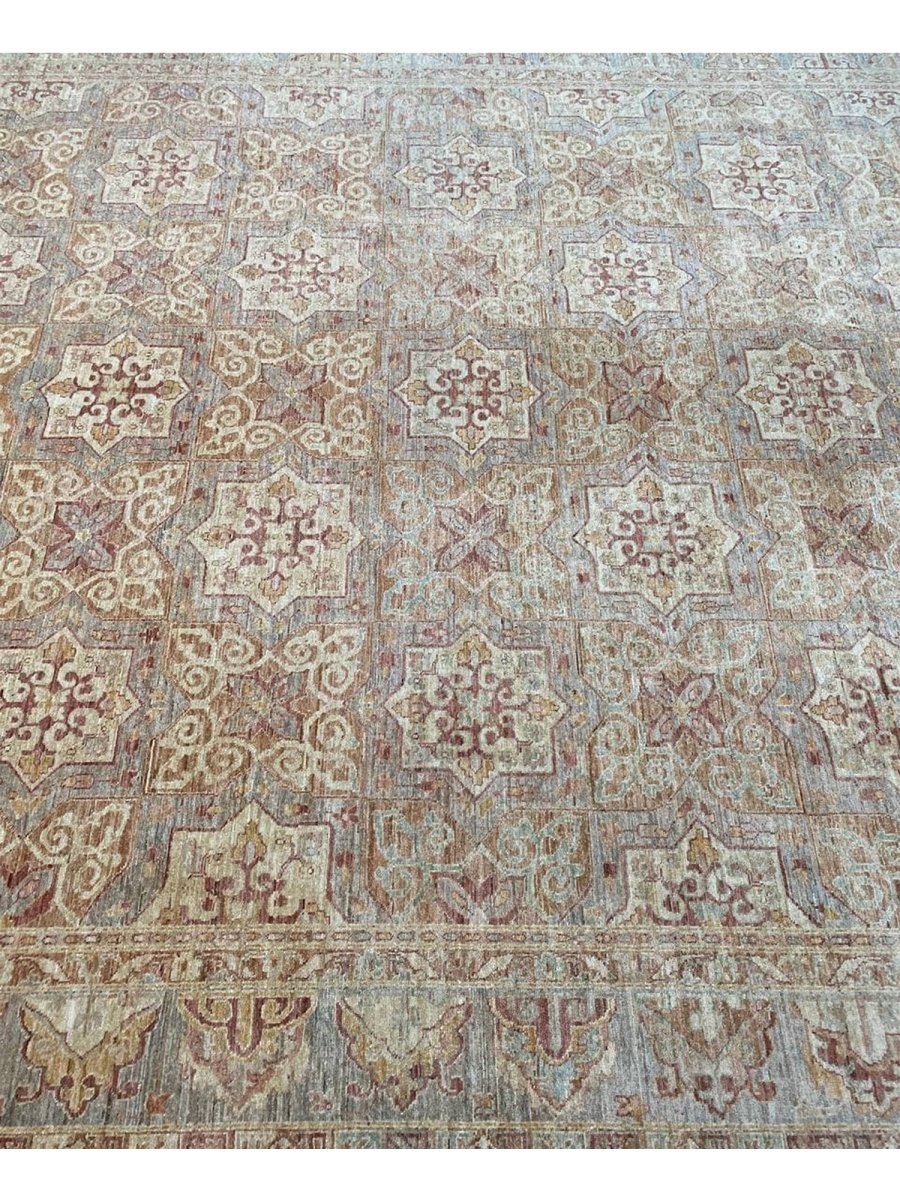 The 10x13 Pakistani Transitional Area Rug is a distinctive piece that reflects the rich heritage of Pakistani weaving and brings timeless sophistication. Crafted from high-quality wool, this exquisite rug features a refined geometric design that adds depth, character, and visual interest to any space. The harmonious blend of soft beige, brown, gray, and burgundy tones creates a versatile palette that complements a wide range of interior styles. Thoughtfully crafted with exceptional attention to detail, this luxurious rug enhances any environment with elegance and refined charm. Enjoy the convenience of free shipping within the U.S., delivered directly to your home.