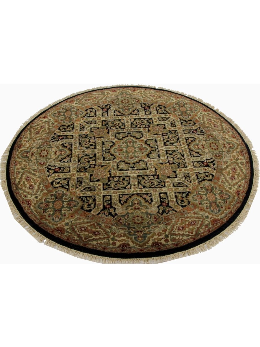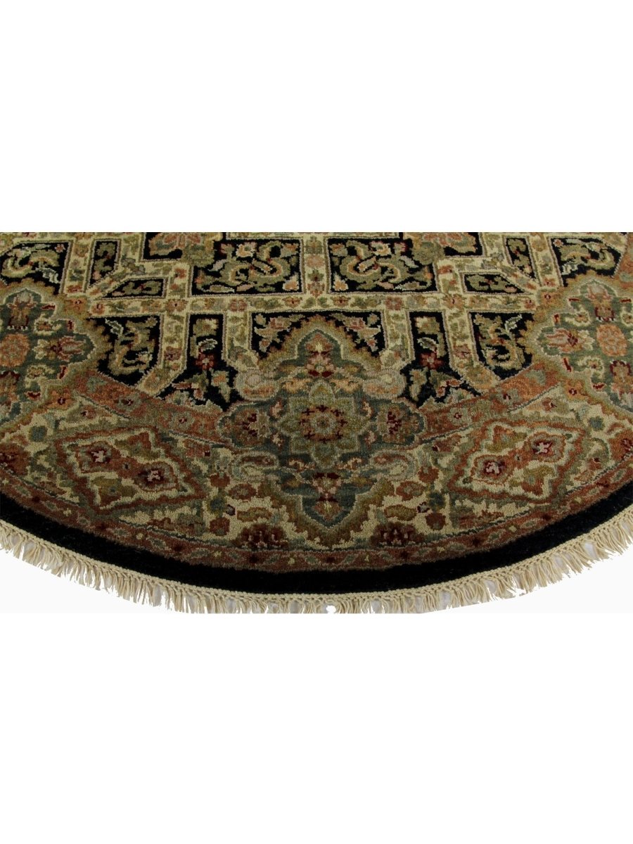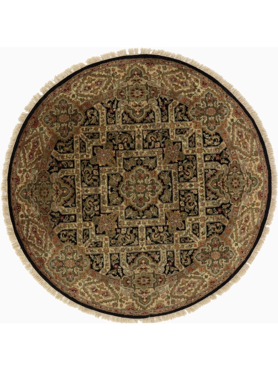 This amazing 4x4 Round Indian Mughal Area Rug will transform your house with its alluring medallion design in sophisticated beige, brown, green, and black shades. This traditional rug, which is hand-knotted from high-quality wool, is perfect for adding charm to your dining area, living room, or hallway. Its circular form and elaborate embellishments create a cozy and welcoming ambiance, making it a flexible addition to your decor. This new rug is a work of art that tells a tale, not merely a floor covering. Take advantage of free delivery on this gorgeous item inside the United States!