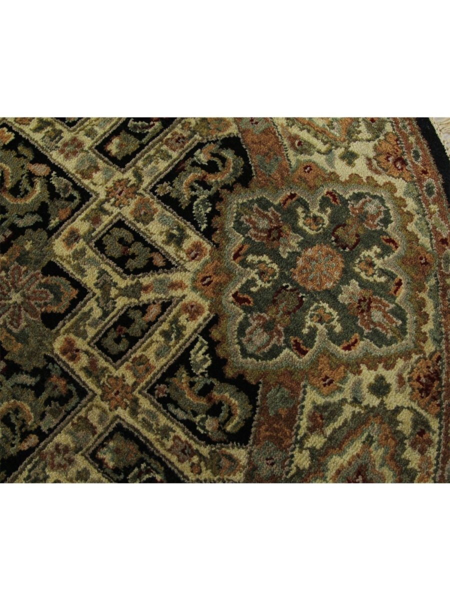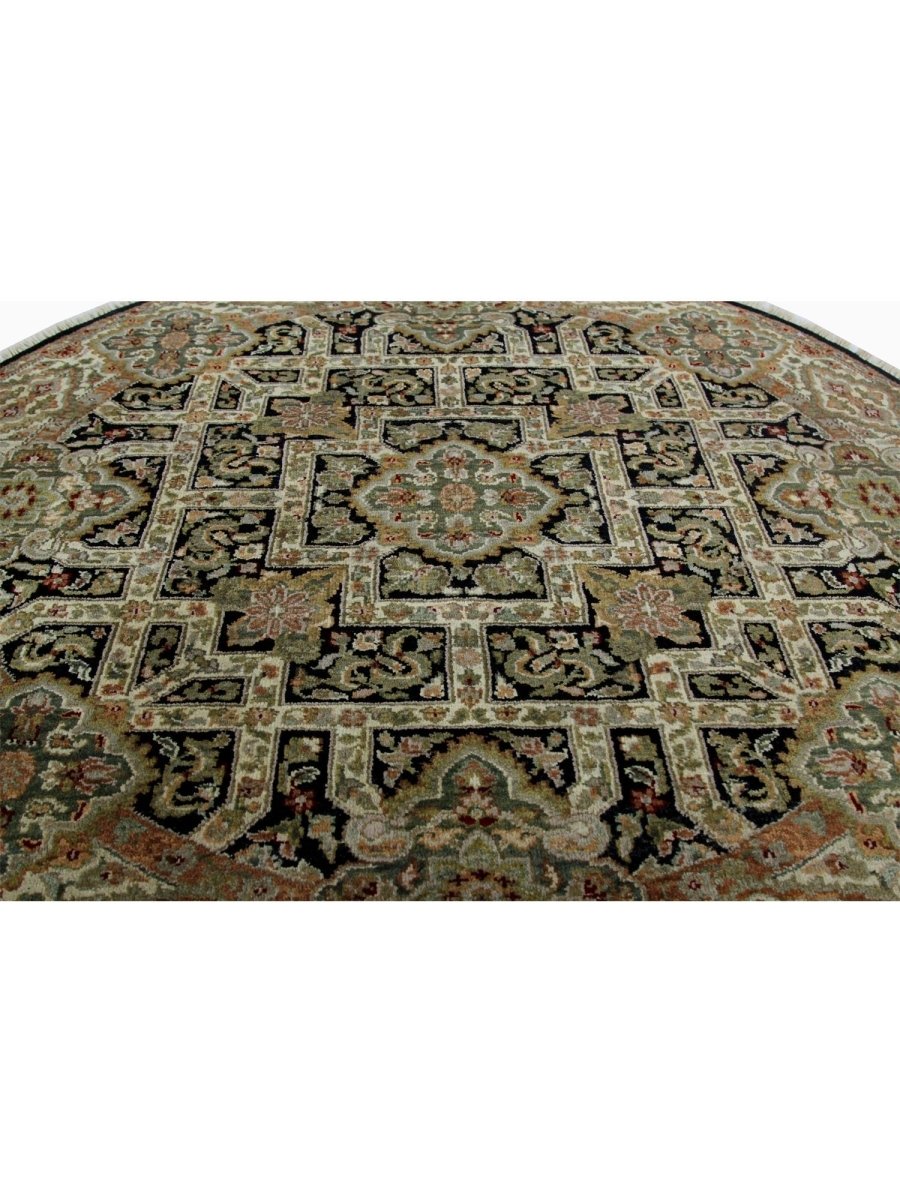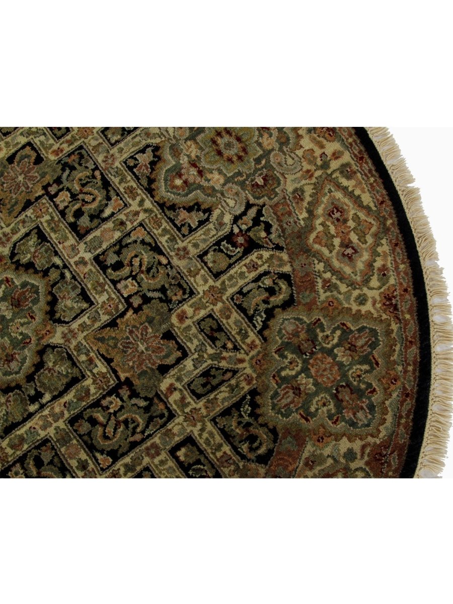 This amazing 4x4 Round Indian Mughal Area Rug will transform your house with its alluring medallion design in sophisticated beige, brown, green, and black shades. This traditional rug, which is hand-knotted from high-quality wool, is perfect for adding charm to your dining area, living room, or hallway. Its circular form and elaborate embellishments create a cozy and welcoming ambiance, making it a flexible addition to your decor. This new rug is a work of art that tells a tale, not merely a floor covering. Take advantage of free delivery on this gorgeous item inside the United States!