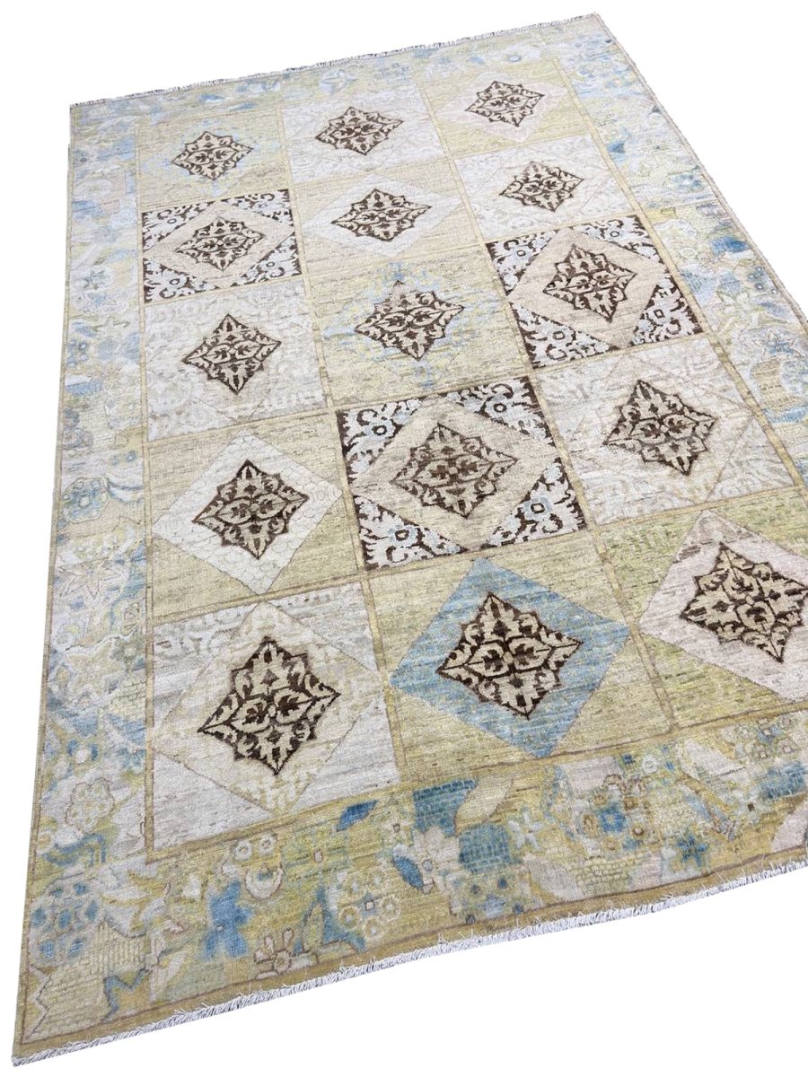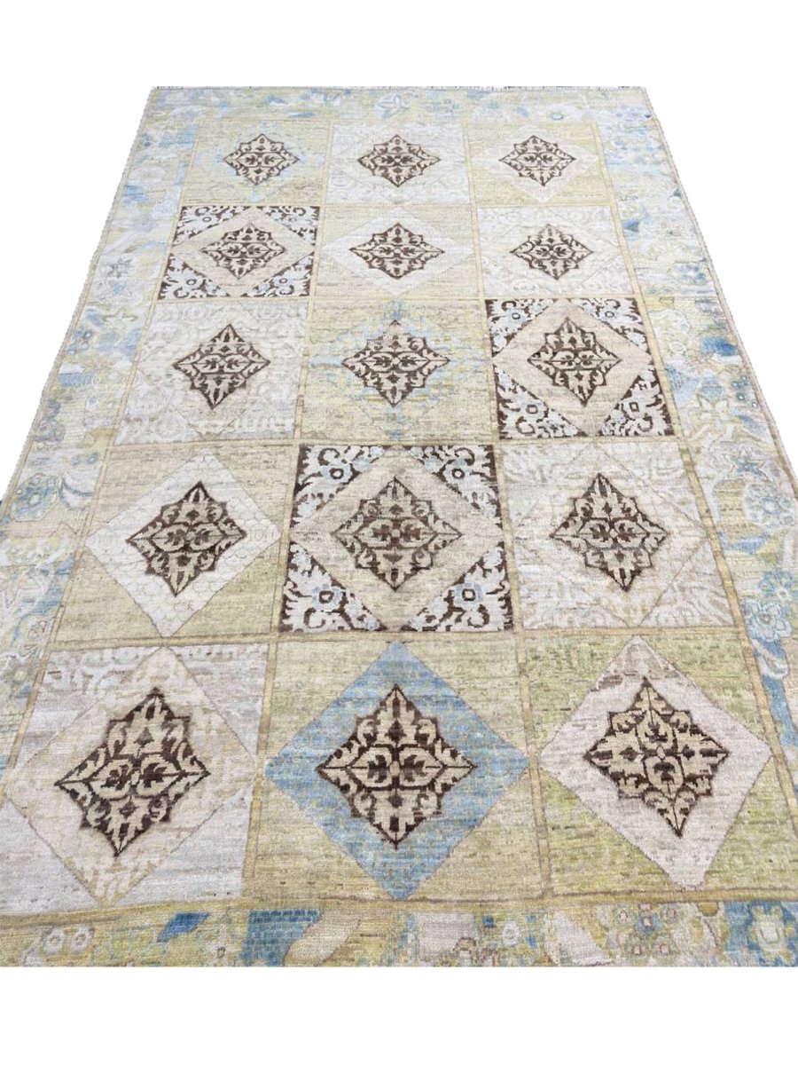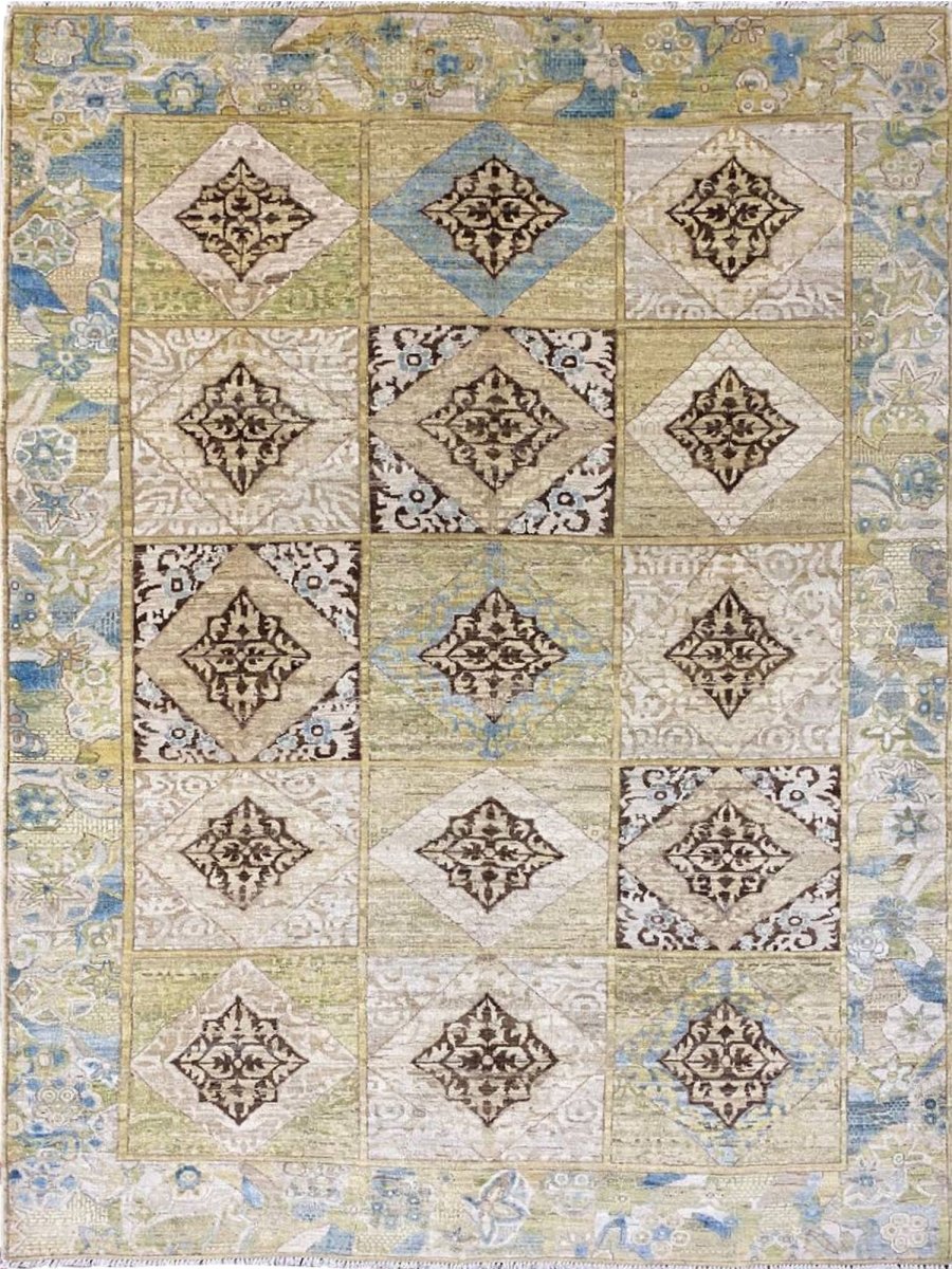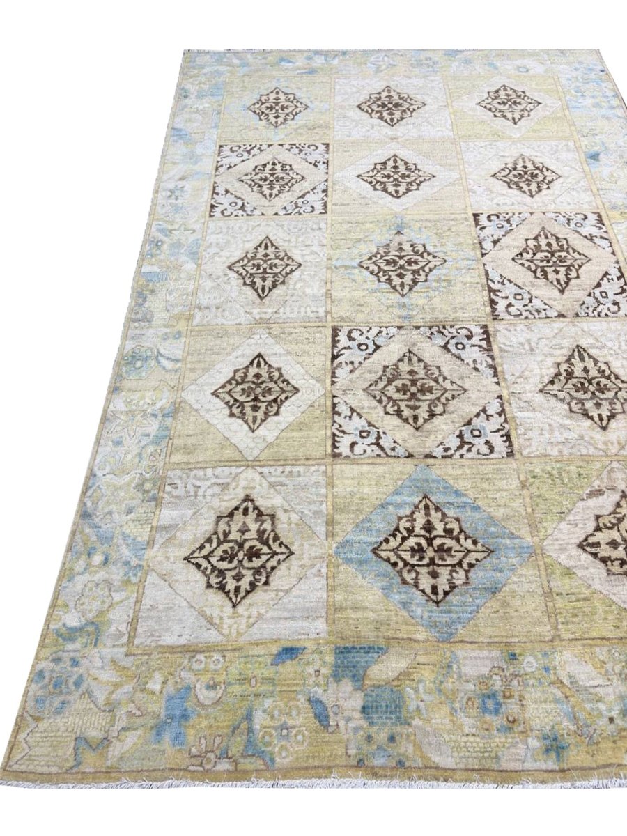 Transform your space with the classic elegance of this 6x9 Transitional Area Rug. Expertly handcrafted in Pakistan from premium materials, this rug features an intricate geometric pattern with a sophisticated blend of gold, ivory, blue, brown, and soft gray tones, exuding timeless charm and depth. Its durable construction and detailed design make it ideal for living rooms, dining areas, or cozy bedrooms. Crafted with meticulous attention to detail, this rug enhances any classic or diverse decor with its rich texture and exceptional quality. Shop now for fast and free shipping in the United States, making this beautiful piece a perfect addition to your home. The charm of this rug will be forever cherished due to its long-lasting natural qualities.