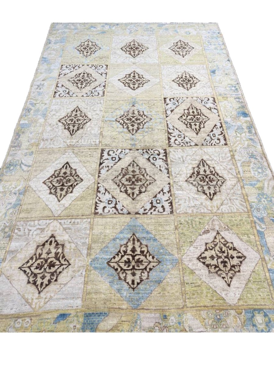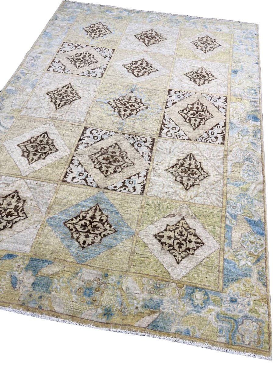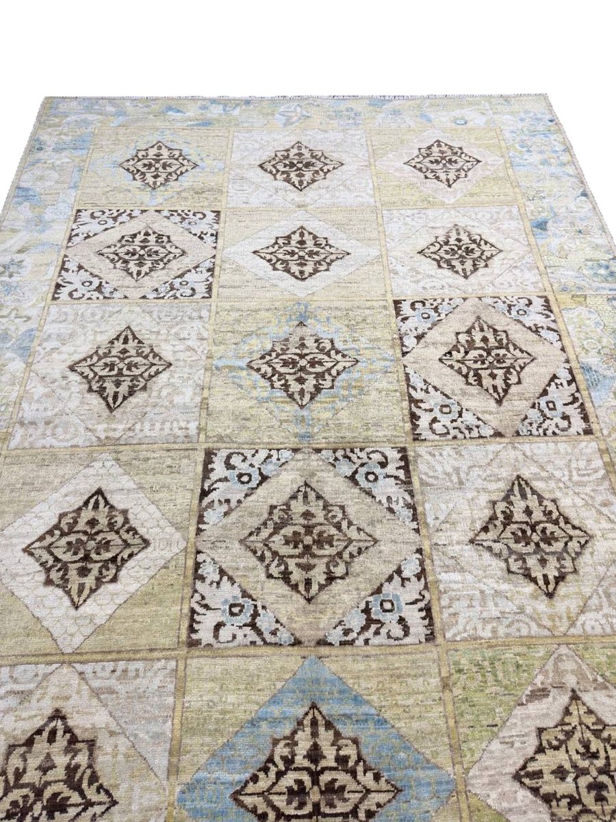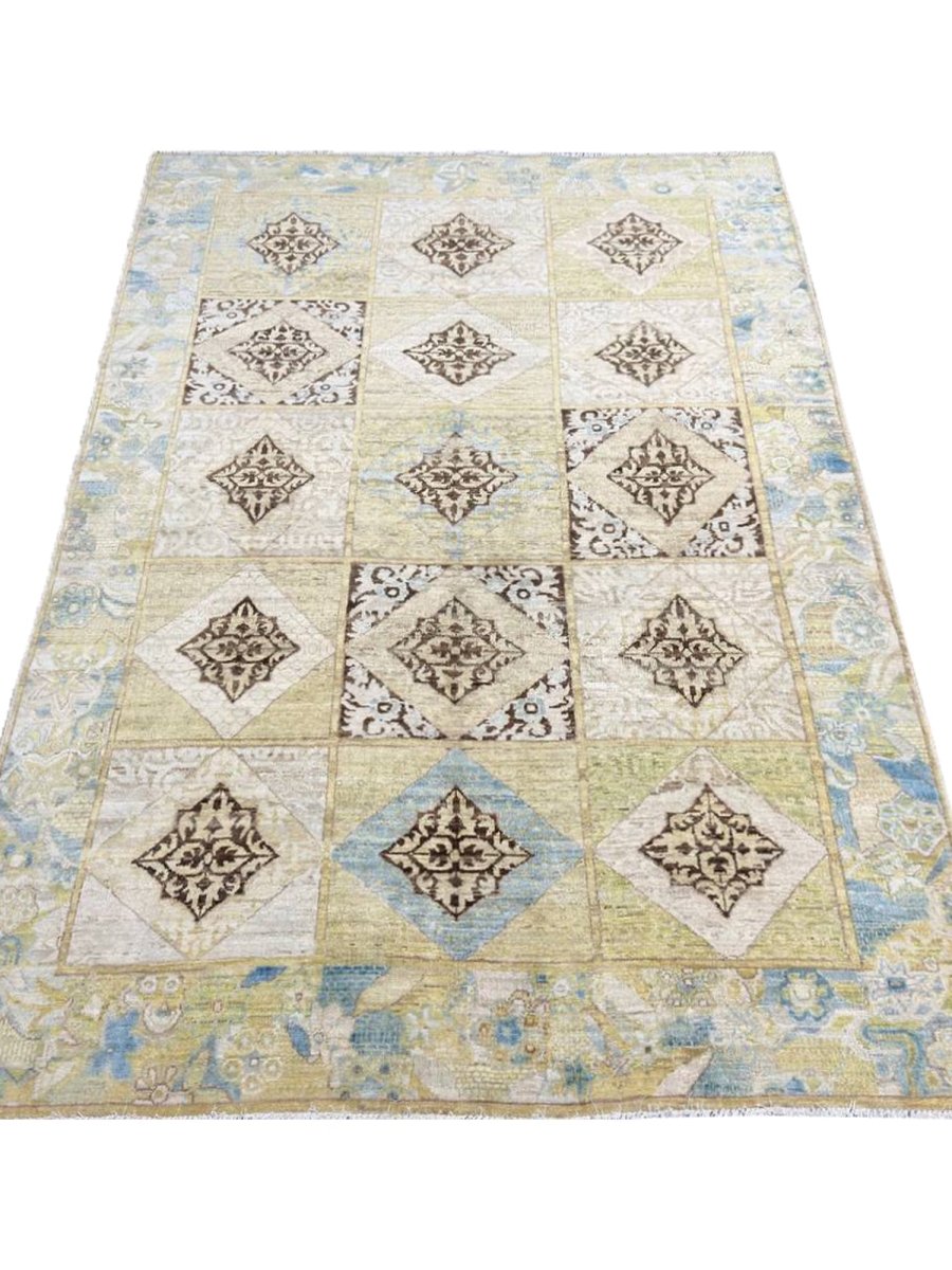 Transform your space with the classic elegance of this 6x9 Transitional Area Rug. Expertly handcrafted in Pakistan from premium materials, this rug features an intricate geometric pattern with a sophisticated blend of gold, ivory, blue, brown, and soft gray tones, exuding timeless charm and depth. Its durable construction and detailed design make it ideal for living rooms, dining areas, or cozy bedrooms. Crafted with meticulous attention to detail, this rug enhances any classic or diverse decor with its rich texture and exceptional quality. Shop now for fast and free shipping in the United States, making this beautiful piece a perfect addition to your home. The charm of this rug will be forever cherished due to its long-lasting natural qualities.