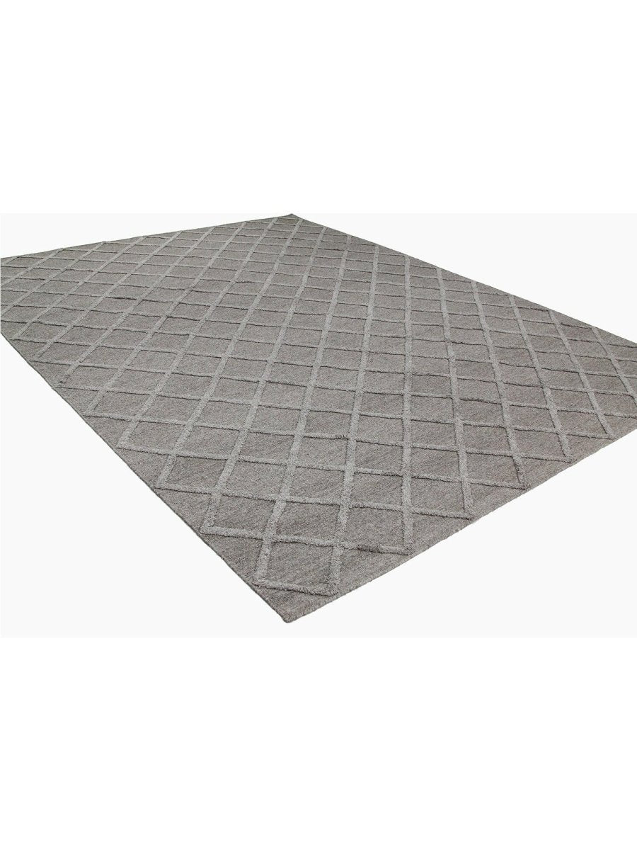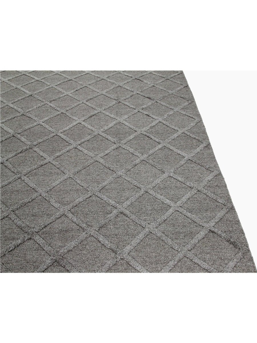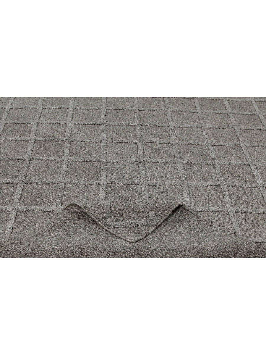 Transform your space with the classic elegance of this 9x12 Indo Dhurry Area Rug. Expertly flat-woven in India from a luxurious blend of wool and bamboo silk, this new rug features a striking geometric pattern in elegant gray tones, exuding timeless charm and sophistication. Measuring exactly 9'1" x 12'1", its durable construction and textured design make it an ideal piece for living rooms, dining areas, or large bedrooms. Crafted for both beauty and longevity, this rug enhances any classic or diverse decor with its unique appeal and exceptional quality. Shop now to avail the benefit of fast and free shipping in the United States to make this beautiful piece a perfect addition to your home.