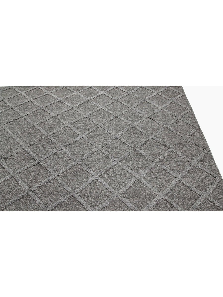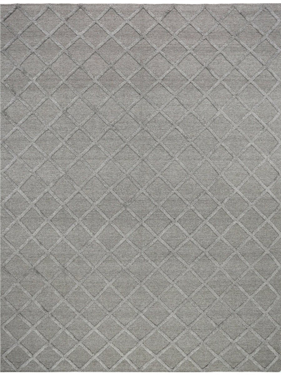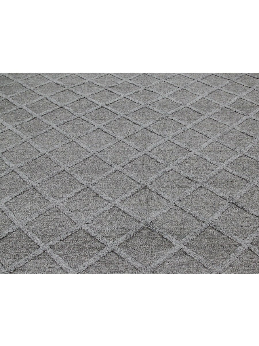 Transform your space with the classic elegance of this 9x12 Indo Dhurry Area Rug. Expertly flat-woven in India from a luxurious blend of wool and bamboo silk, this new rug features a striking geometric pattern in elegant gray tones, exuding timeless charm and sophistication. Measuring exactly 9'1" x 12'1", its durable construction and textured design make it an ideal piece for living rooms, dining areas, or large bedrooms. Crafted for both beauty and longevity, this rug enhances any classic or diverse decor with its unique appeal and exceptional quality. Shop now to avail the benefit of fast and free shipping in the United States to make this beautiful piece a perfect addition to your home.