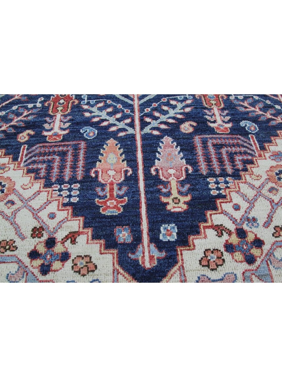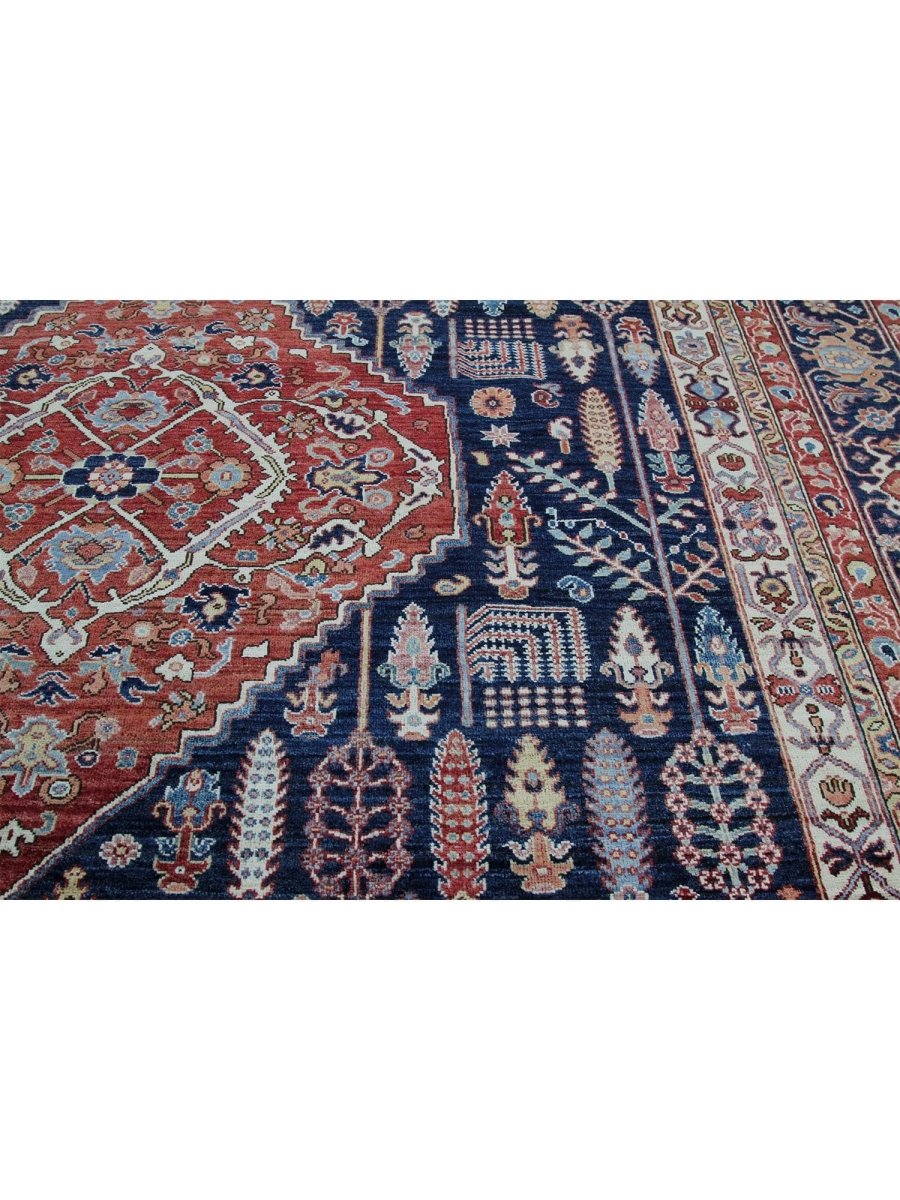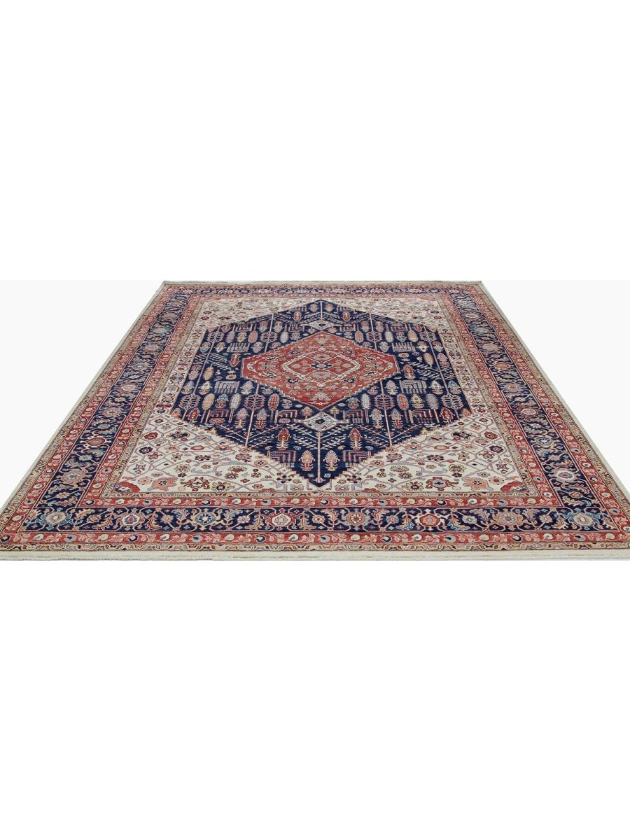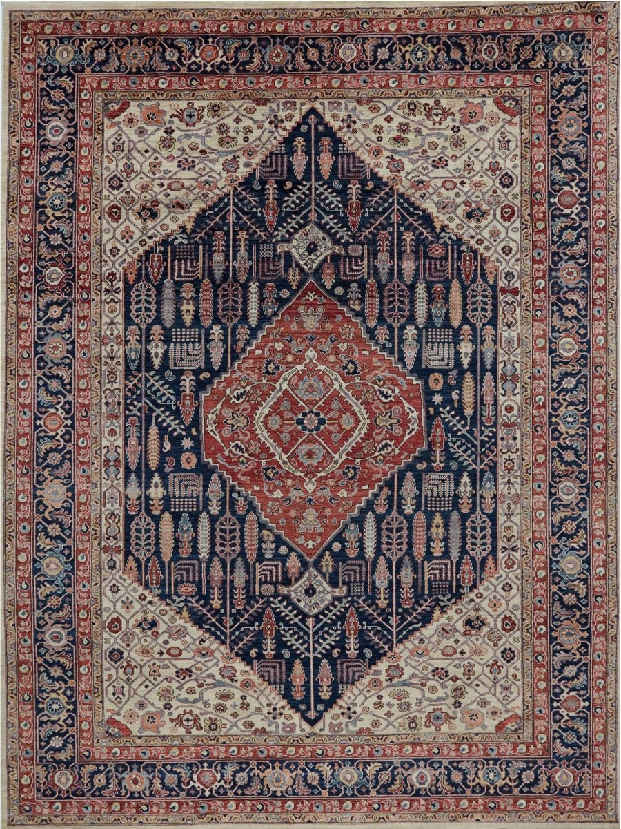 Add a touch of classic appeal to your home with this 9x12 Bakhshayesh Style Area Rug, crafted in Pakistan. This rug features a captivating geometric pattern with a central medallion, showcasing traditional motifs in a rich, deep blue, deep red, ivory, and pink palette. Crafted from durable wool ensures longevity. The intricate border detail reflects skilled craftsmanship and enduring design. This piece effortlessly complements, adding warmth, texture, and sophistication. A true blend of artistry and function, it easily brings heritage charm into any space. Enjoy the benefit of free shipping across the United States. Each rug is one-of-a-kind, with subtle variations inherent to its creation.