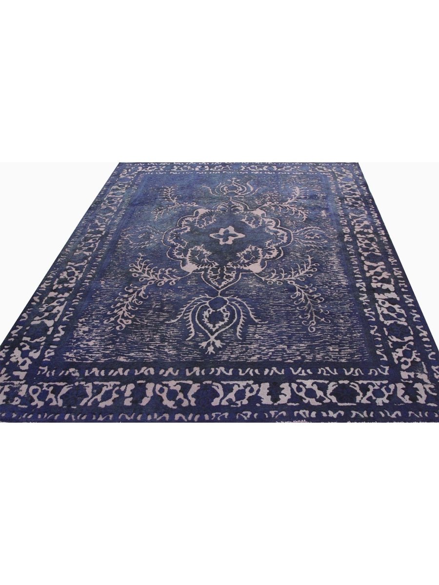 Enrich your living space with this captivating medellin pattern 9x13 overdyed Persian area rug, meticulously hand-knotted from luxurious wool. The rug features a profound navy hue, beautifully complemented by undertones of deep purple, creating an inviting and sophisticated ambiance. Its intricate medallion pattern, reminiscent of classic Persian artistry, offers a timeless elegance that will elevate any room. This rug is perfectly suited for grand living rooms, formal dining areas, or expansive bedrooms, providing a plush texture and exceptional durability for daily enjoyment. The substantial size makes it an ideal piece, grounding your furniture and defining your space with its captivating presence. Its unique overdyed finish adds depth and character, ensuring it will be a cherished addition to your home for years to come.