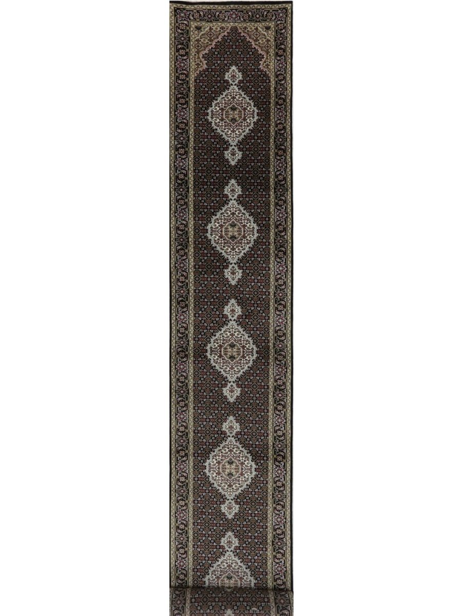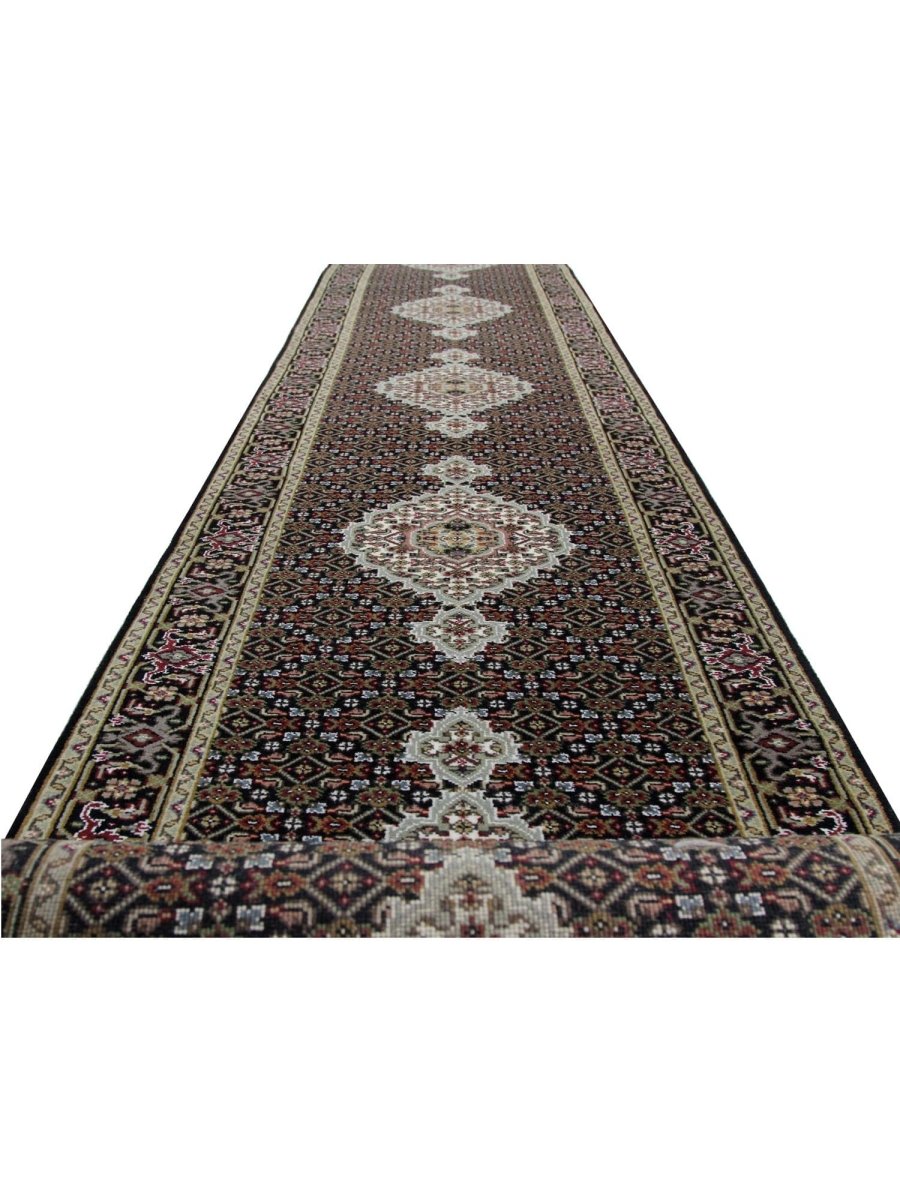 This gorgeous 3x21 Persian Style Runner Rug, hand-knotted from fine wool for outstanding quality and durability, will enhance any hallway, entryway, or small room. The vivid geometric design enriches any space by showcasing warm red, soft beige, rich green, and traditional black tones. It is ideal for high-traffic areas due to its velvety texture, which makes it comfortable underfoot. This versatile runner adds a chic and welcoming touch to your home and is perfect for complementing classic styles. Enjoy free delivery on your order within the United States.