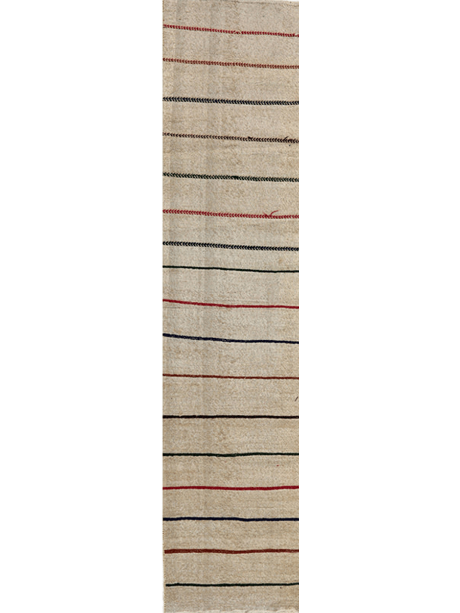 This 2x11 Handwoven Persian Kilim Runner is a timeless piece of Persian artistry, designed to bring elegance and warmth. Featuring a natural beige background with delicate red, black, and green stripes, this rug creates a subtle yet striking visual appeal. The minimal yet sophisticated striped design complements various decor styles, from sleek minimalist to classic Persian interiors.