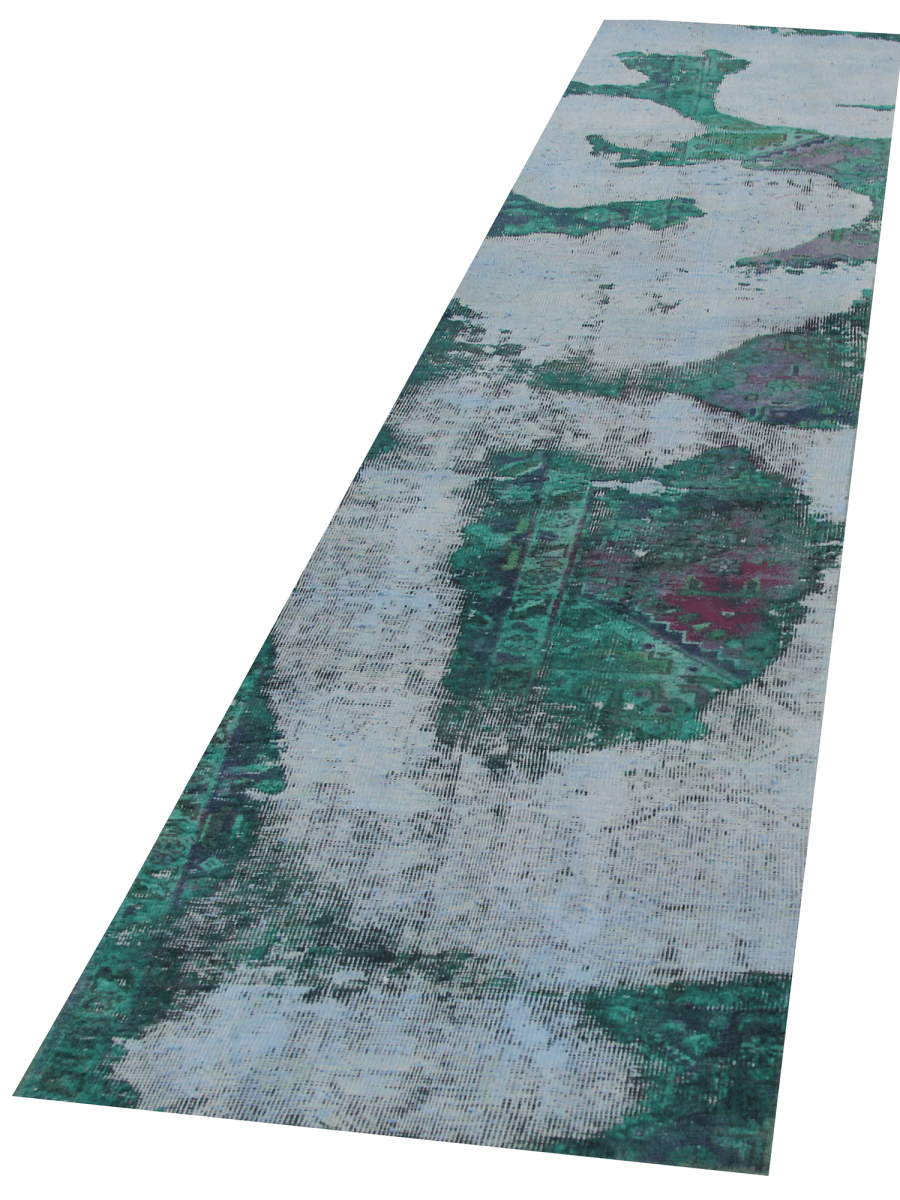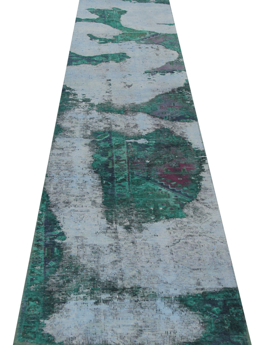 Elevate with this one-of-a-kind 2x12 vintage Persian runner rug. Hand-knotted from premium wool, its green and ivory distressed no-border design brings depth and sophistication to narrow spaces. The distressed overdyed effect adds character, making it an eye-catching addition to your home. With its timeless elegance, this runner enhances any setting.