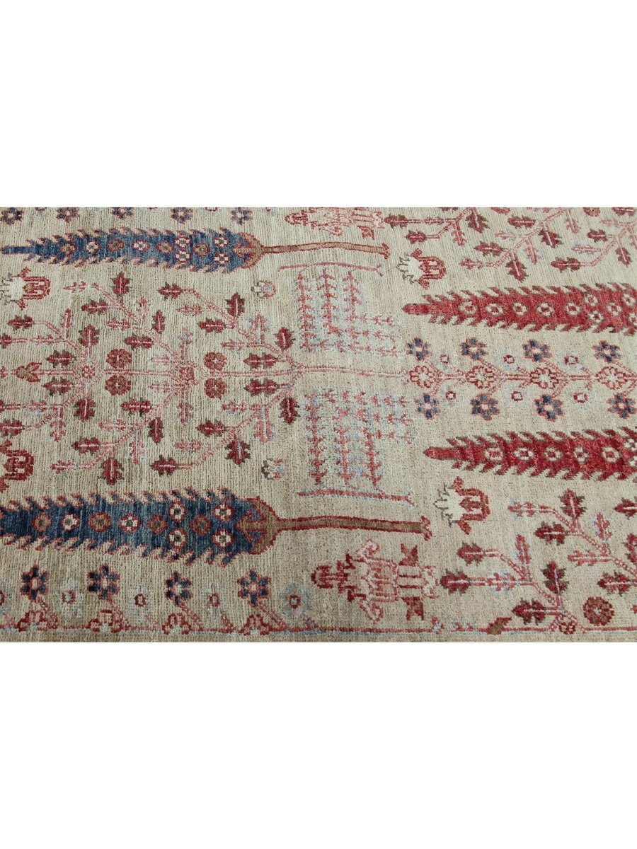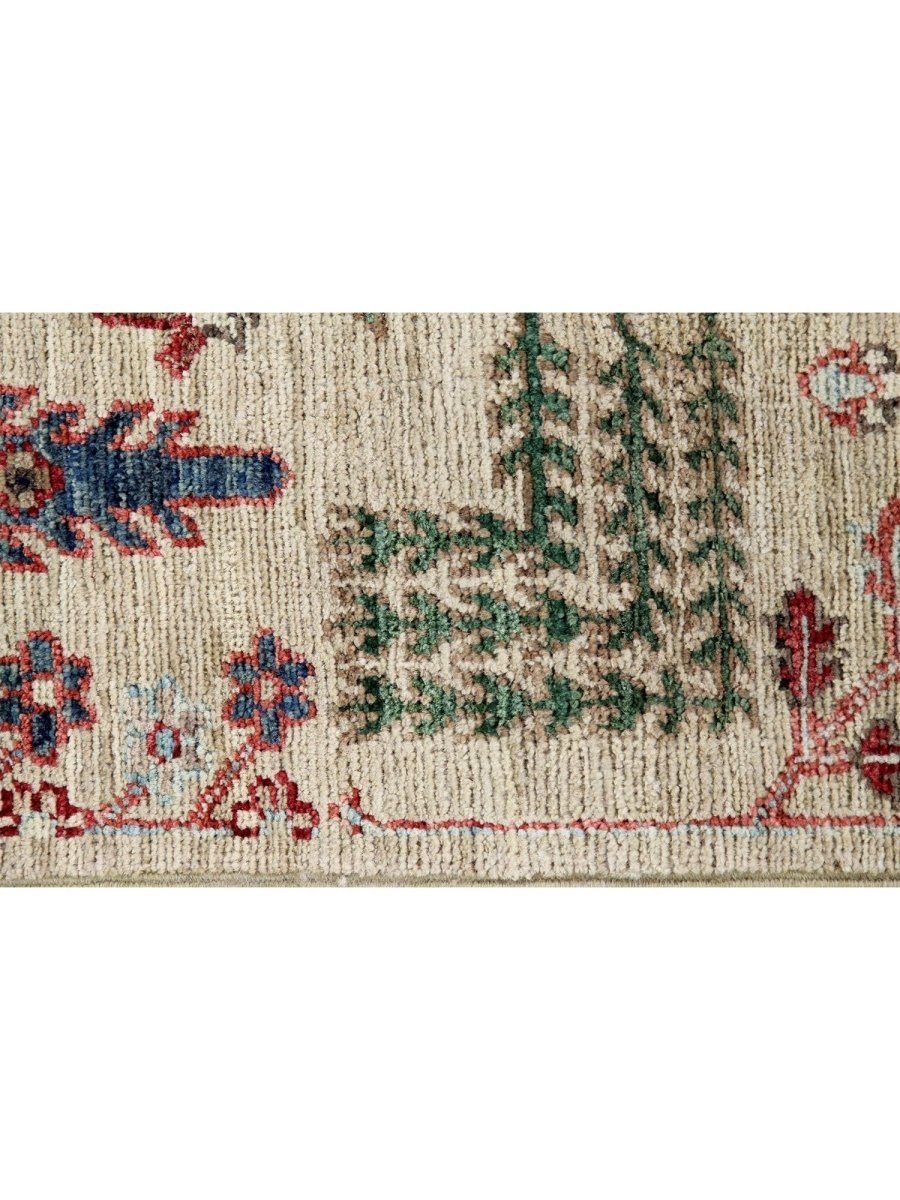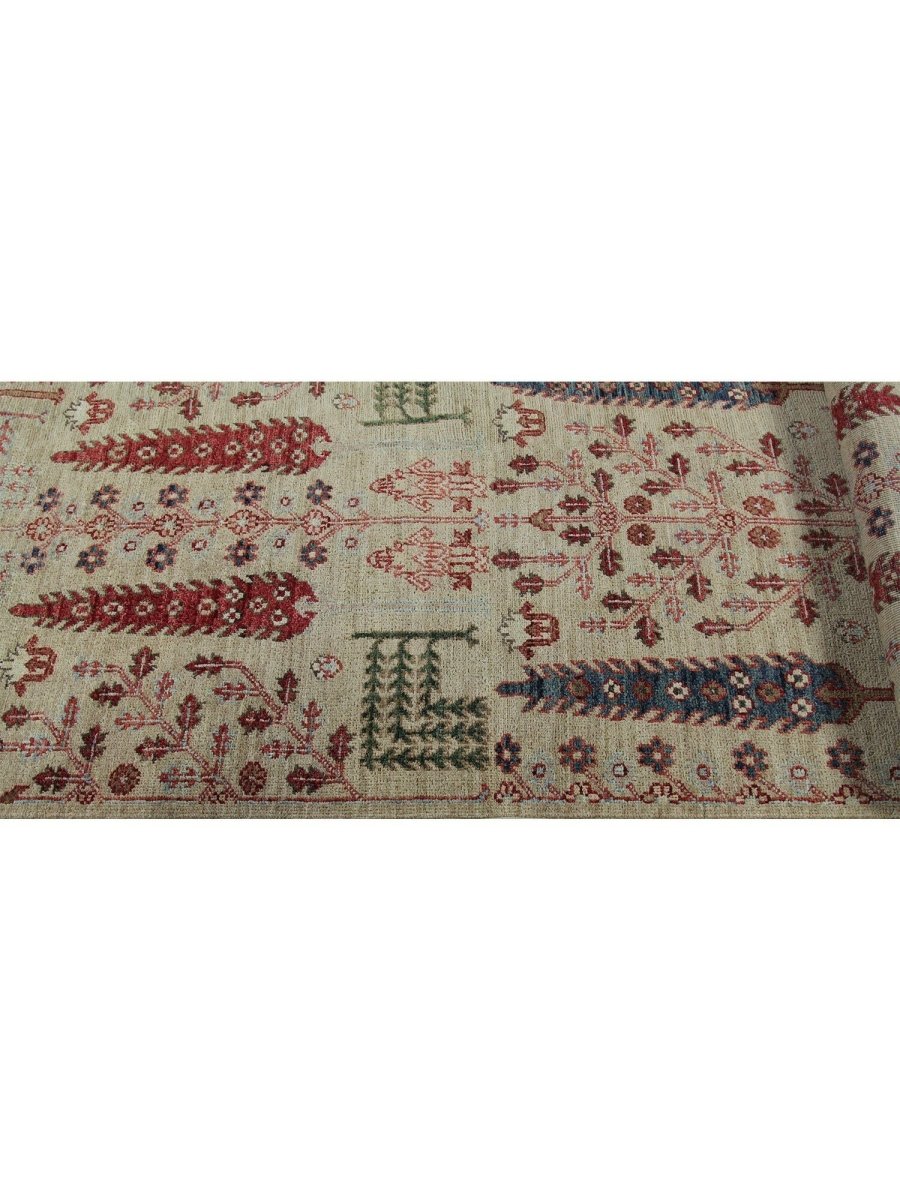 Add timeless artistry to your home with this 2x9 Handwoven Bijar Style Runner Rug crafted in Pakistan. The rug features a captivating floral pattern showcasing traditional motifs and a light beige, deep red, deep blue, and green palette. Hand-knotted wool construction ensures durability and lasting beauty and is perfect for hallways, entryways, and narrow spaces. The intricate detail reflects the artisan's skill and timeless design heritage. This rug effortlessly enhances decor while adding warmth, texture, and style. A true blend of artistry functions and brings heritage charm into any space. Enjoy the benefit of free shipping across the United States. Each rug has one-of-a-kind subtle variations highlighting its handmade nature.