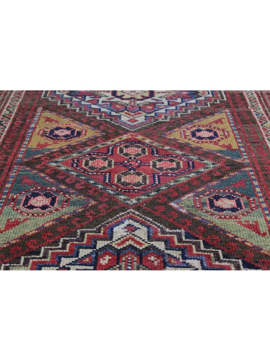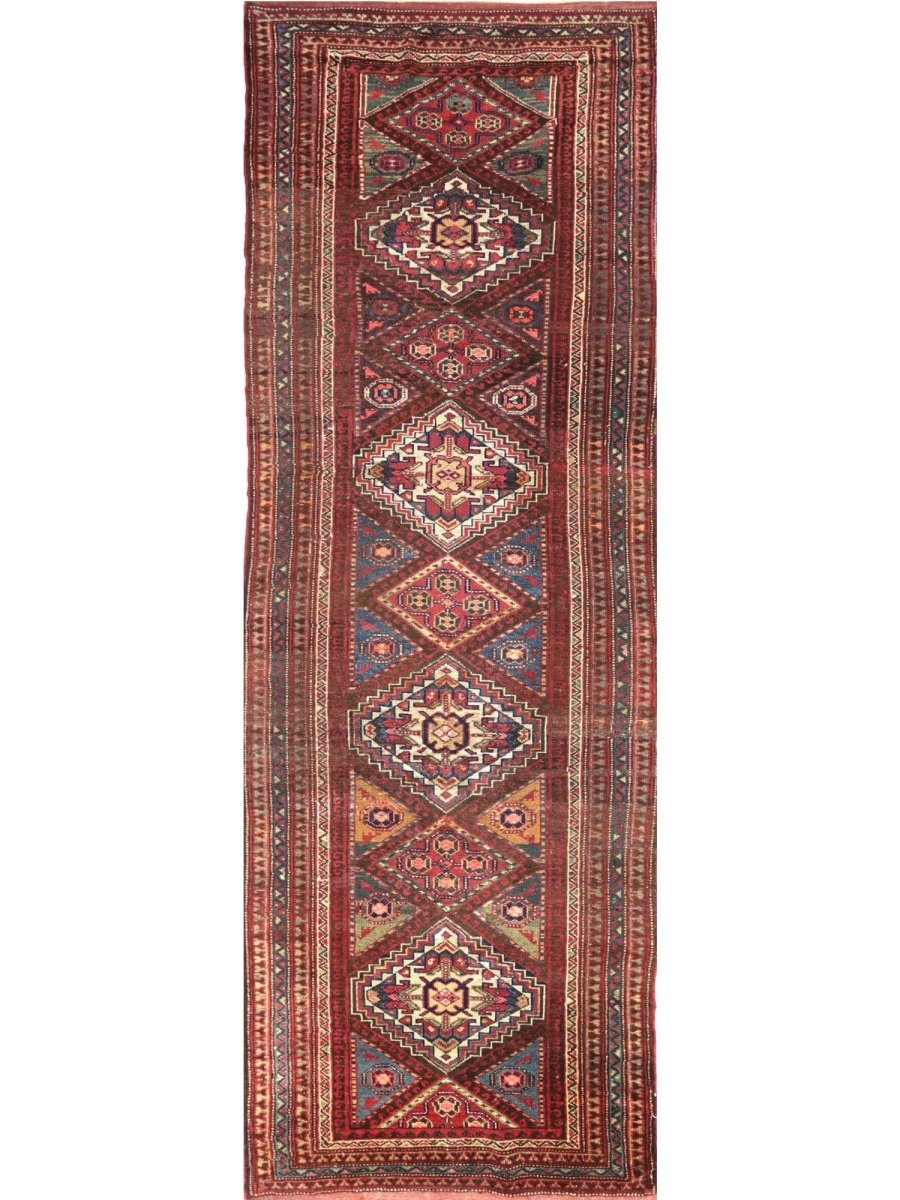 The 3x10 Antique Persian Kord Runner Rug is a unique treasure that captures the classic elegance of traditional Persian weaving and will transform your living area. This gorgeous traditional rug, which is made of high-quality wool, has a medallion design that blends in perfectly with any type of decor. It provides a cozy and welcoming atmosphere and is perfect for hallways, entryways, or your dining area. The tasteful tones of blue, beige, and red give it depth and refinement, making it a multipurpose addition to your house. This amazing carpeting is a stunning work of art that elevates your living area and goes beyond simple decoration. Take advantage of free US delivery.