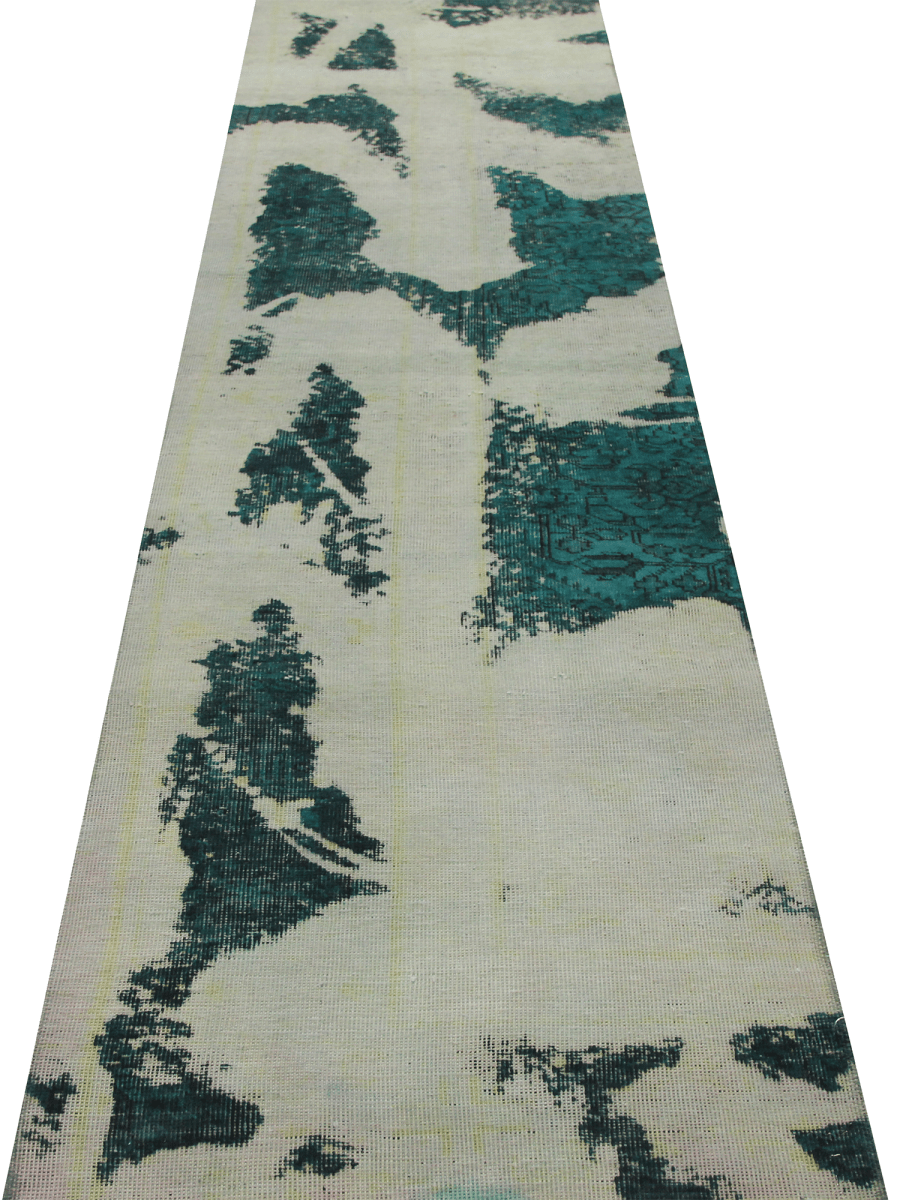 Revitalize your space with this one-of-a-kind 3x11 Persian runner rug, hand-knotted from premium wool. A distressed overdyed finish enhances the no-border pattern, adding depth and vintage charm. Featuring a captivating mix of green and cream hues, this rug effortlessly complements both current and classic decor. The intricate weaving and high-quality wool ensure durability for years to come. Elevate your interior with this unique piece of Persian artistry.