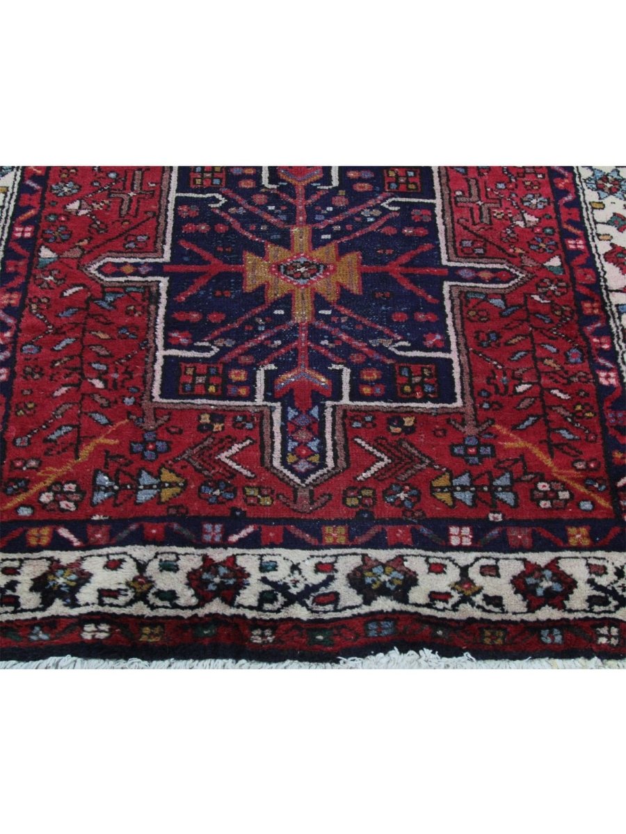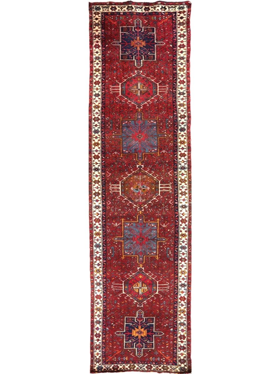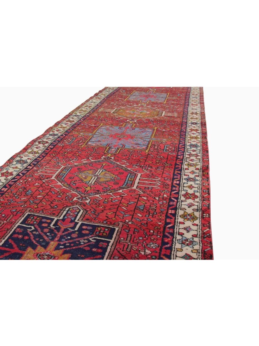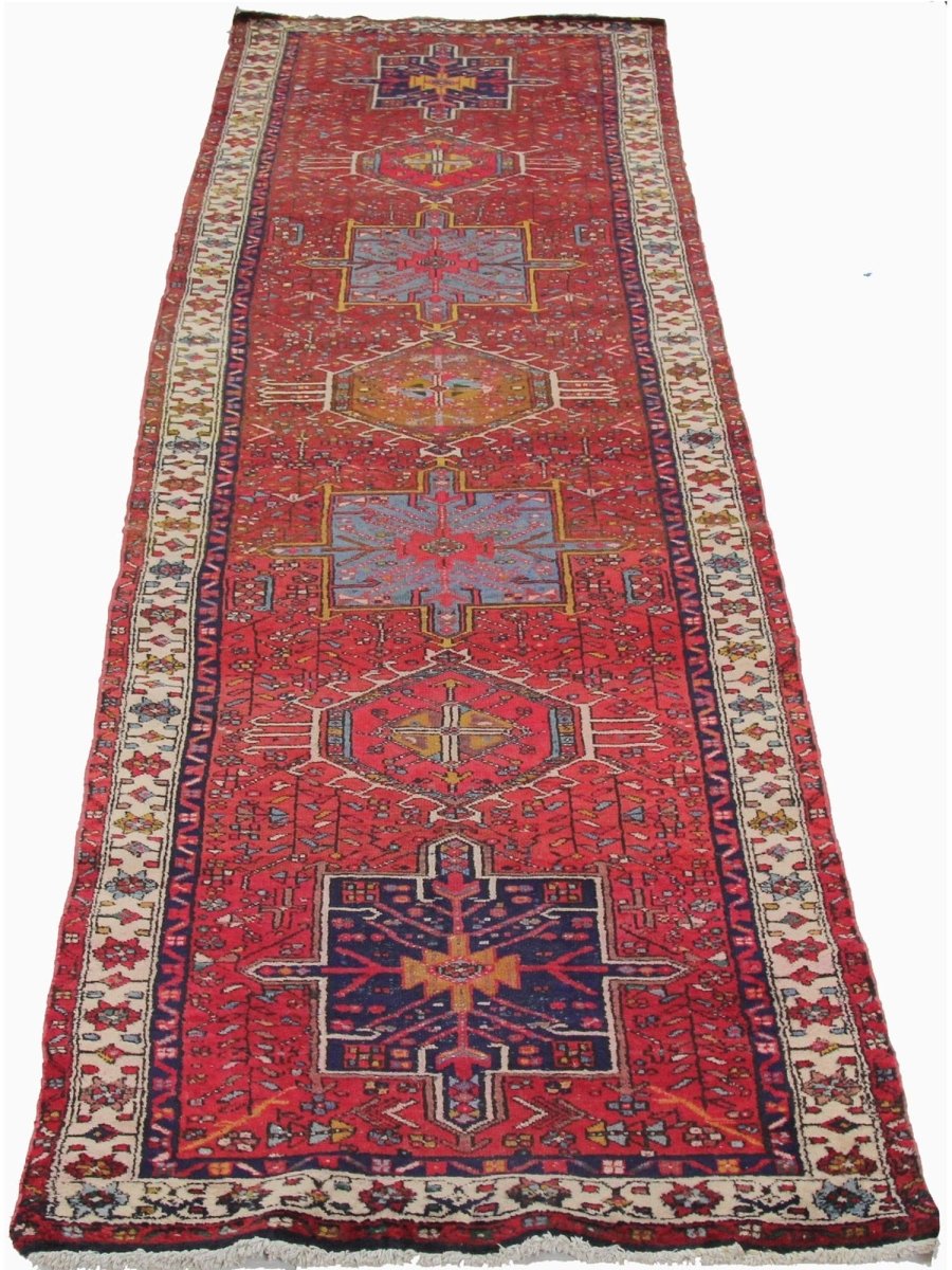 This gorgeous, 3x13 Antique Persian Karajeh Runner is a work of subtle simplicity, featuring a soothing color scheme that exudes coziness and peace. A rich geometric pattern that highlights the beauty of the carefully hand-knotted structure is created by the perfect blending of warm tones with creamy softness. Its classic form and superb traditional craftsmanship make it an excellent investment item. The subtle mix of rust, cream, blue tones creates the illusion of warmth and welcoming comfort, ideal for long corridors, entryways, or by a dining bench adding a homely touch to any environment. It's perfect for both formal and casual settings, and it will soon become a beloved feature in your house. Enjoy free US delivery.