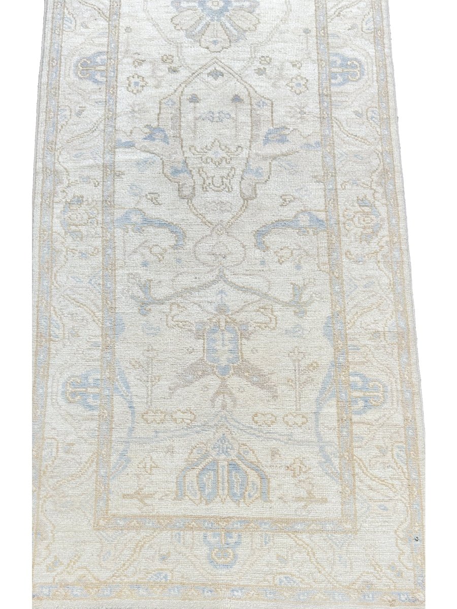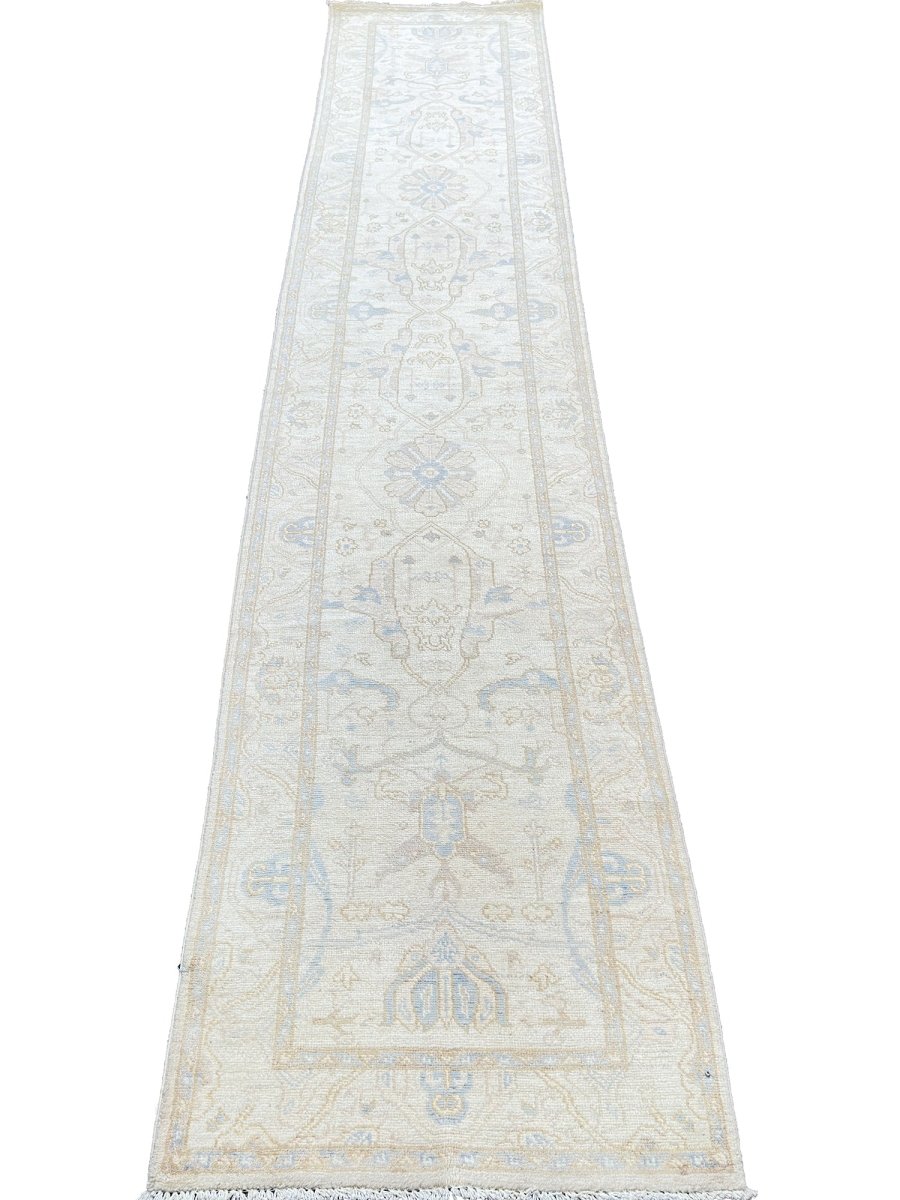Experience the elegance of the 3x13 Pakistani Style Runner Rug, a unique piece of decor that introduces classic traditional beauty to your abode. Hand-knotted from superior-quality wool, this exquisite rug boasts a floral pattern that adds a touch of individuality to any room. The stunning combination of blue and beige hues makes it a stylish option for any decor. This superior item not only enhances your decor but also stands as an incredible work of art. Enjoy free US shipping.