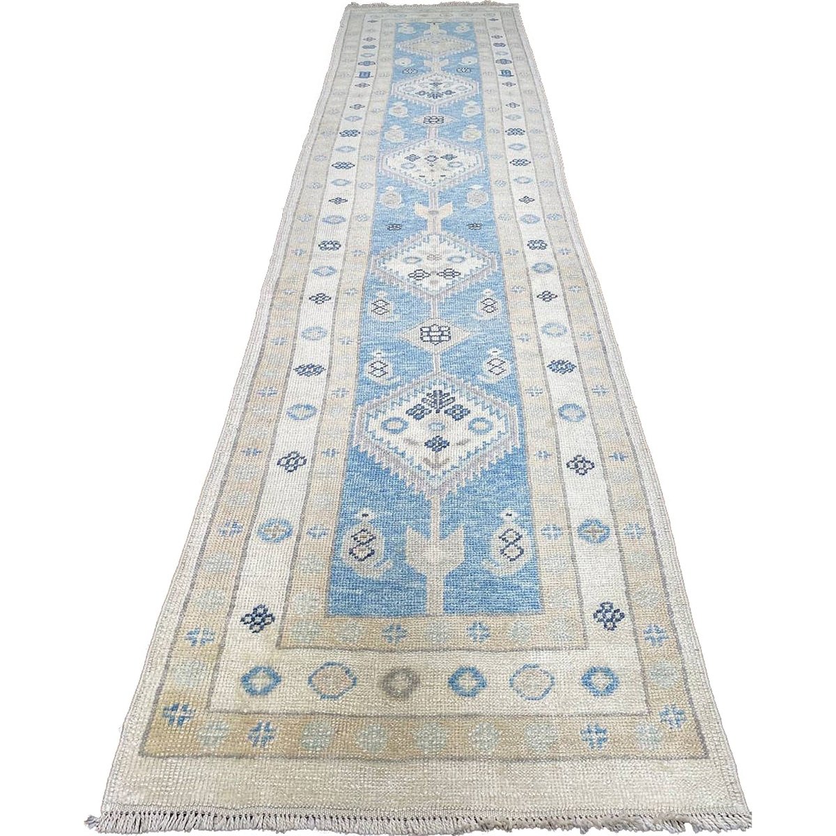 Transform your space with the 3x13 Turkish Oushak Runner Rug, a one-of-a-kind treasure that adds sophistication and charm to any room. Crafted from premium wool, this exquisite rug features a lovely floral pattern that enhances your decor. Ideal for narrow hallways, entryways, or as a stylish accent in your dining area, it creates a welcoming environment. The rich tones of blue, beige, and navy make it a versatile addition to your home. This remarkable rug not only serves a practical purpose but also acts as a stunning focal point in your space. Enjoy free shipping in the US.