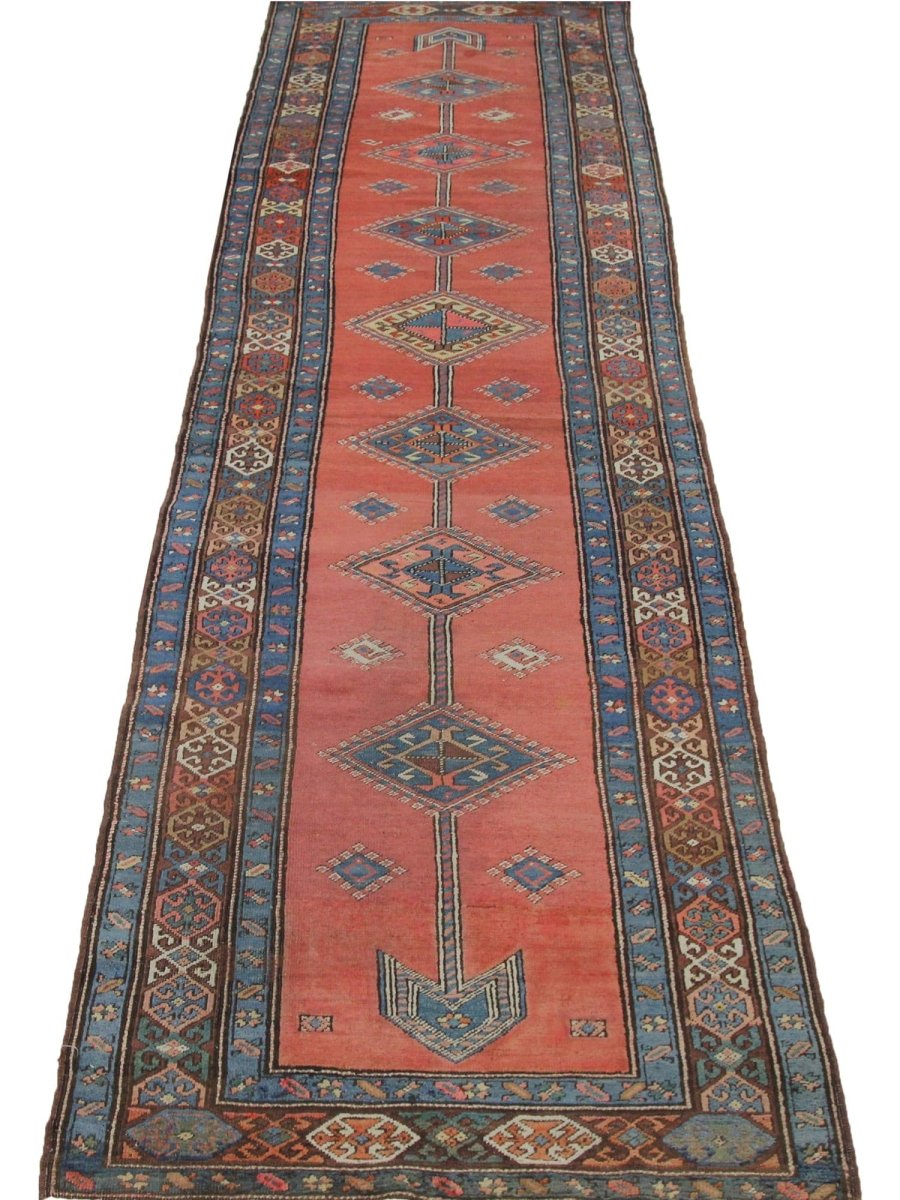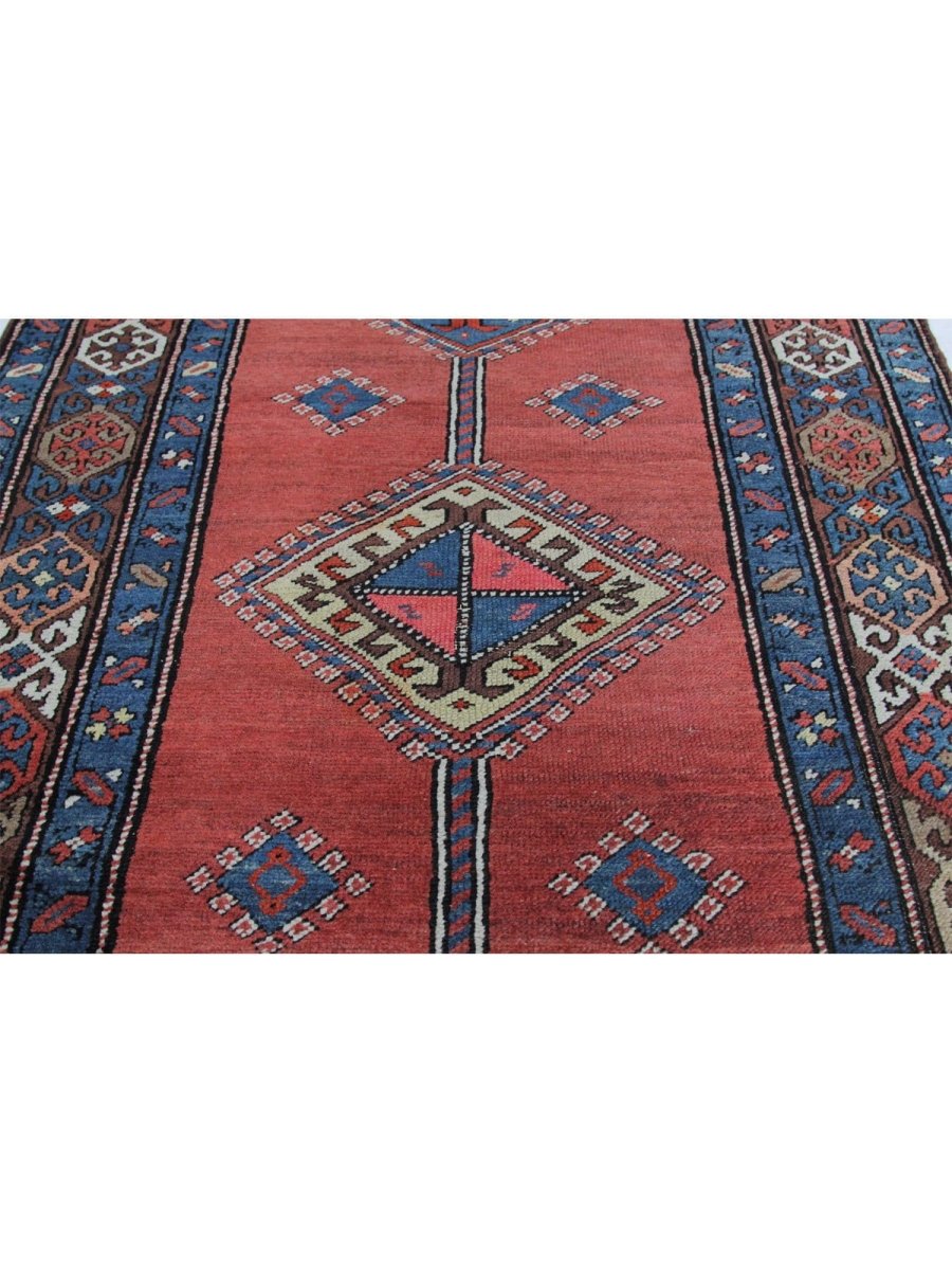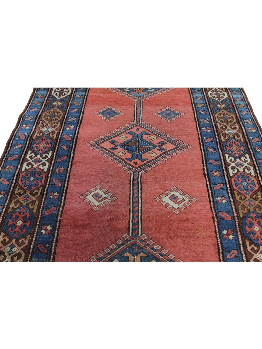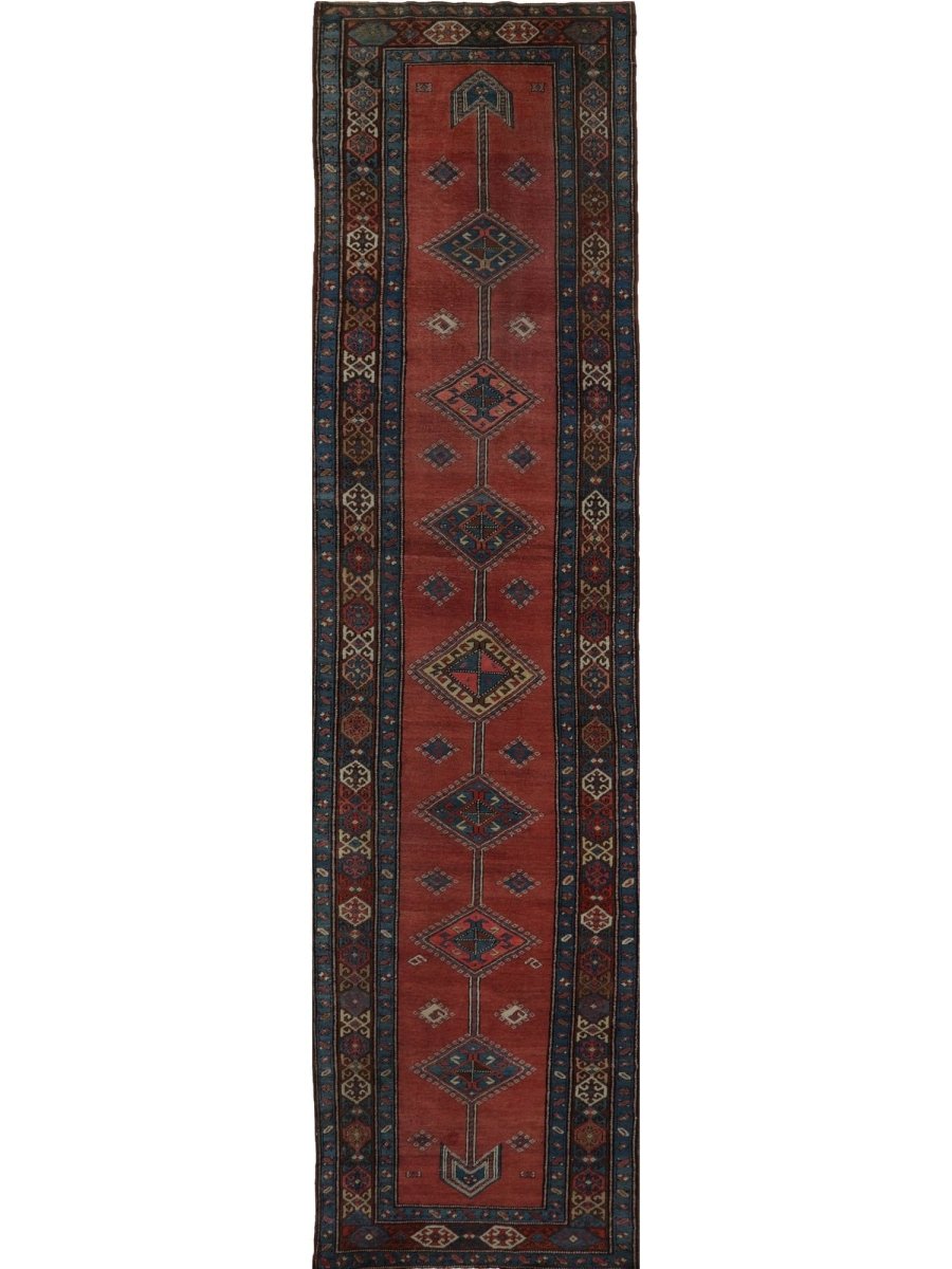 The 3x14 Old Persian Heriz Runner Rug is a unique treasure that embodies the rich history of Persian weaving and will transform your decor. This traditional, gorgeous rug, which is made of high-quality wool, features a geometric design that blends in perfectly with any type of decor. It provides a friendly atmosphere and is perfect. Designed for busy halls, entryways, or dining areas, or as a chic addition in your workplace, It is a multipurpose addition to your house because of the striking blend of warm tones featuring rust, blue, brown, that offer depth and character. Take advantage of free US delivery.