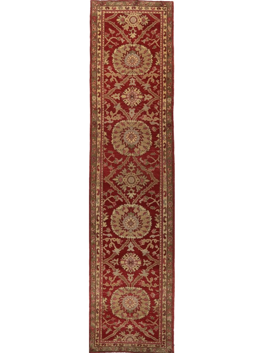 Enhance your long hallway with this striking 3x14 Persian Mahal-style runner, handmade in China. This beautiful rug features a captivating geometric pattern repeating along its substantial length. Intricate design, blending structured shapes with stylized motifs, creates a sense of movement and traditional artistry. The field is rich, with a deep red hue, providing the warm, classic foundation. Geometric patterns are detailed with a palette including soft beige, warm gold, and darker brown accents, adding visual complexity. This elongated size is perfect for hallways, corridors, or beside long furniture, defining the area with comfort and style. Crafted using traditional hand-making techniques with quality materials, likely wool, this runner offers lasting durability and a soft feel underfoot. Enjoy free US shipping.