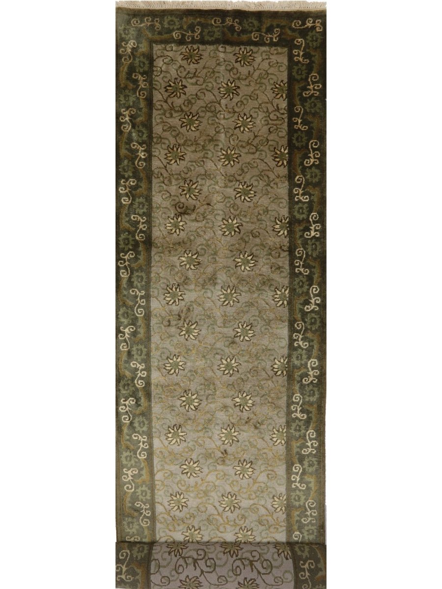 The 3x14 Transitional Tibetan Runner is a unique treasure that embodies the rich history of Indian weaving and will transform your living area. Made from high-quality wool, this gorgeous transitional rug features a floral design that blends in perfectly with any type of interior design. It provides a friendly atmosphere and is perfect for narrow spaces such as hallways or entryways or as a chic addition in your workplace. It is a multipurpose addition to your house because of the striking blend of sage and olive green, ivory, gray, and brown hues that offer depth and character. This amazing carpeting is a stunning work of art that elevates your living area and goes beyond simple decoration. Take advantage of free US delivery.
