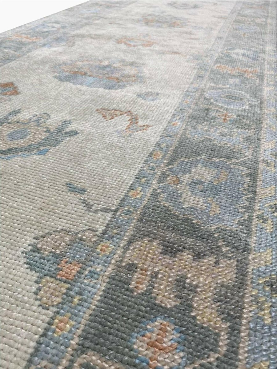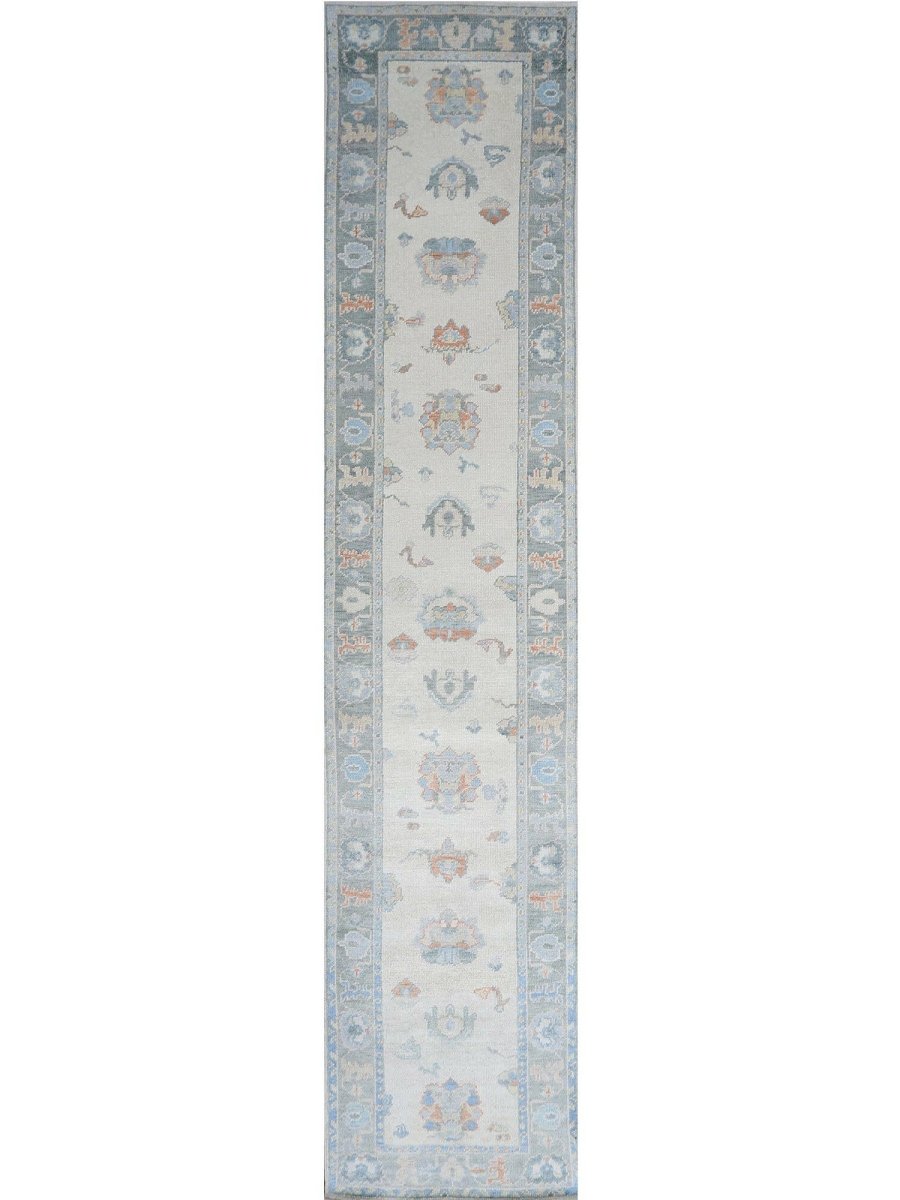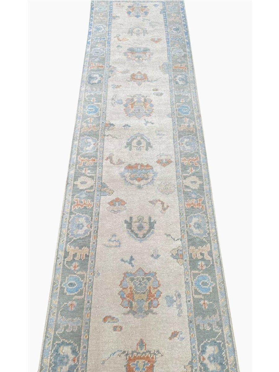 Add a touch of casual style to your home with this 3x14 Turkish Oushak Runner Rug, crafted in Turkey. This traditional rug features a captivating geometric pattern, showcasing a simple yet effective design in a soft beige, gray, blue, orange, and green palette. Its durable wool construction ensures longevity and easy care, perfect narrow spaces such as hallways or entryways or as a chic addition in your workplace. The clean finish reflects quality craftsmanship and design. This piece effortlessly brightens, adding warmth, texture, and a relaxed feel. A blend of simple design and function, it easily enhances any space. Enjoy the benefit of free shipping across the United States. Each rug offers a distinct look, with subtle variations inherent to its creation.