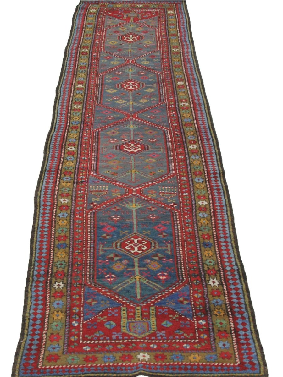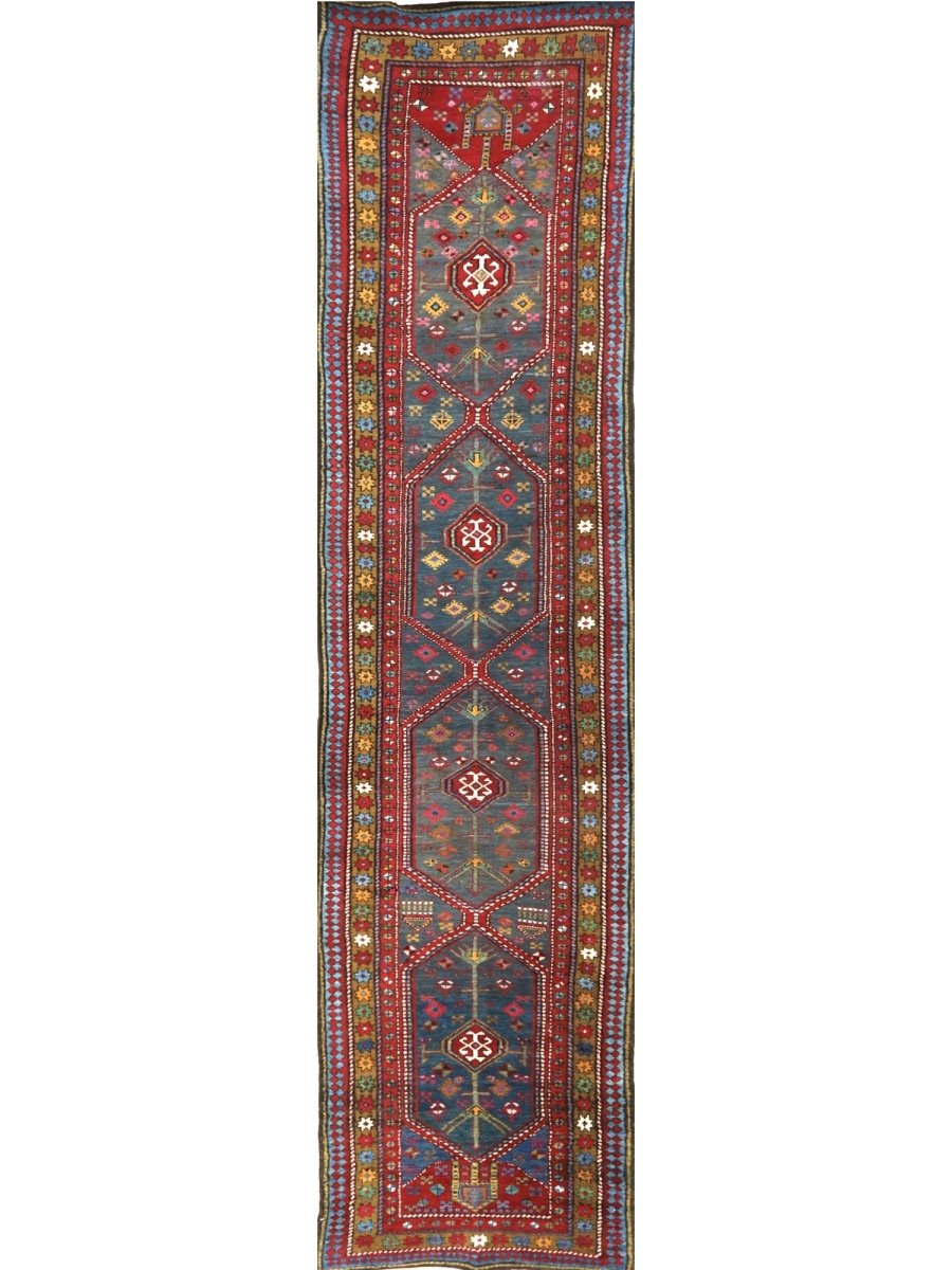 The 3x15 Antique Persian Sarab Runner Rug is a unique treasure that embodies the rich history of Persian weaving and will transform your decor. This traditional, exquisite rug, made from high-quality wool, features a geometric design that seamlessly blends with any decor. It creates a welcoming atmosphere and is ideal for large dining rooms, cozy living spaces, or as a stylish addition to your workplace. Its striking combination of warm tones rust, blue, yellow, and green adds depth and character, making it a versatile complement to your home. Enjoy free US delivery.