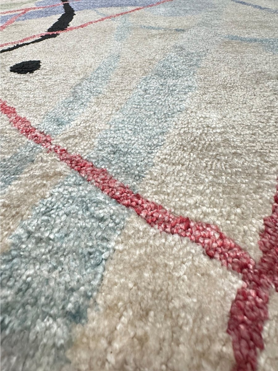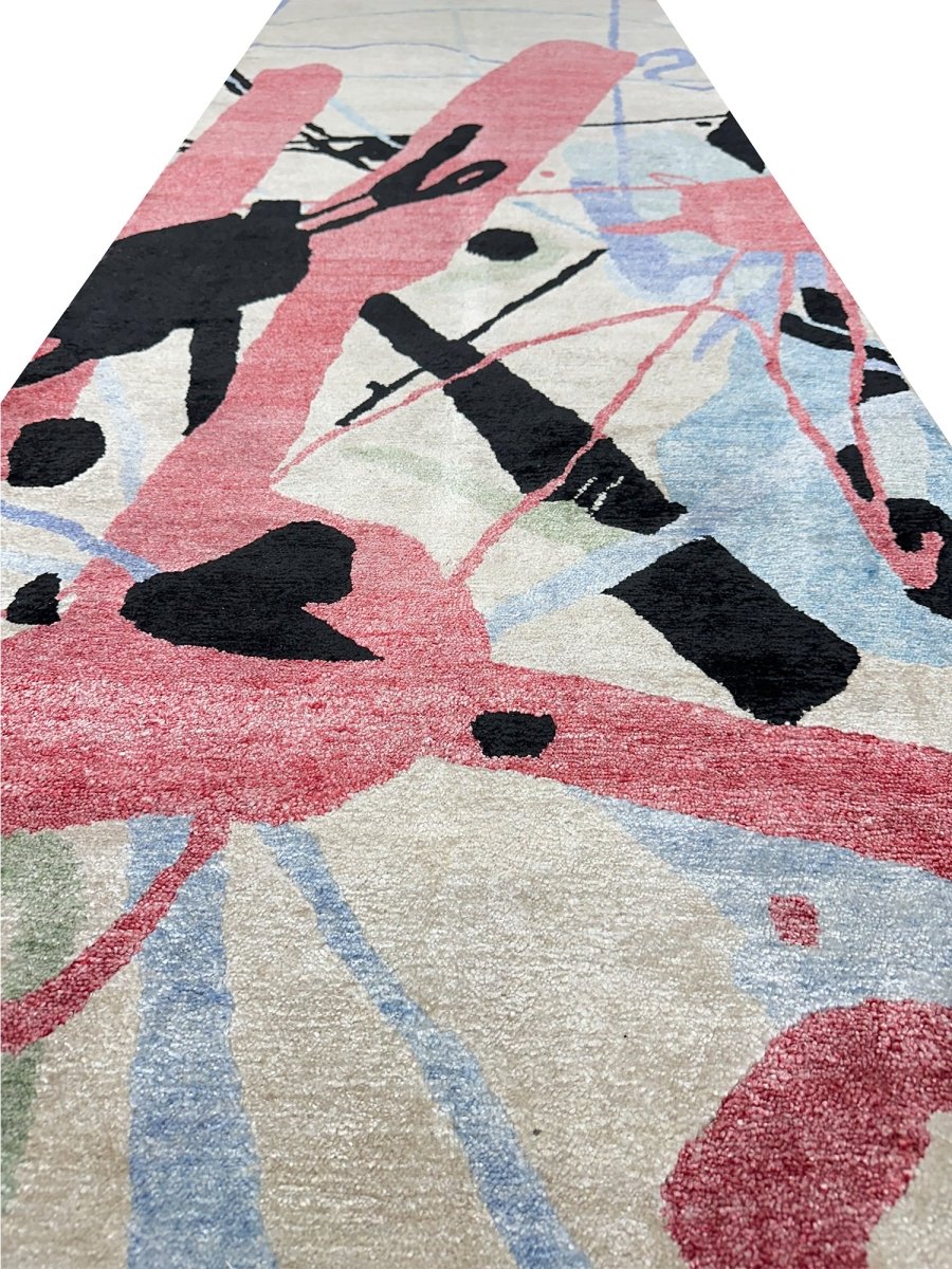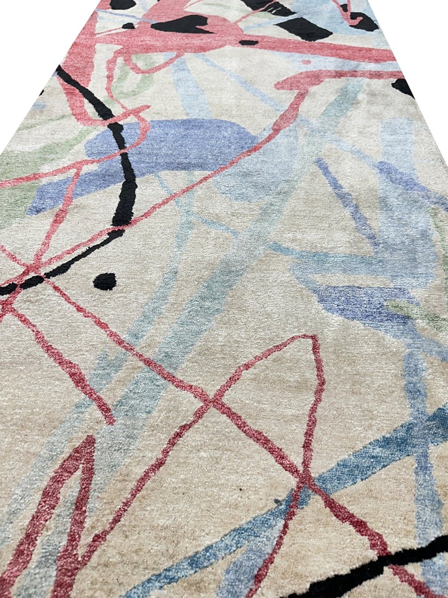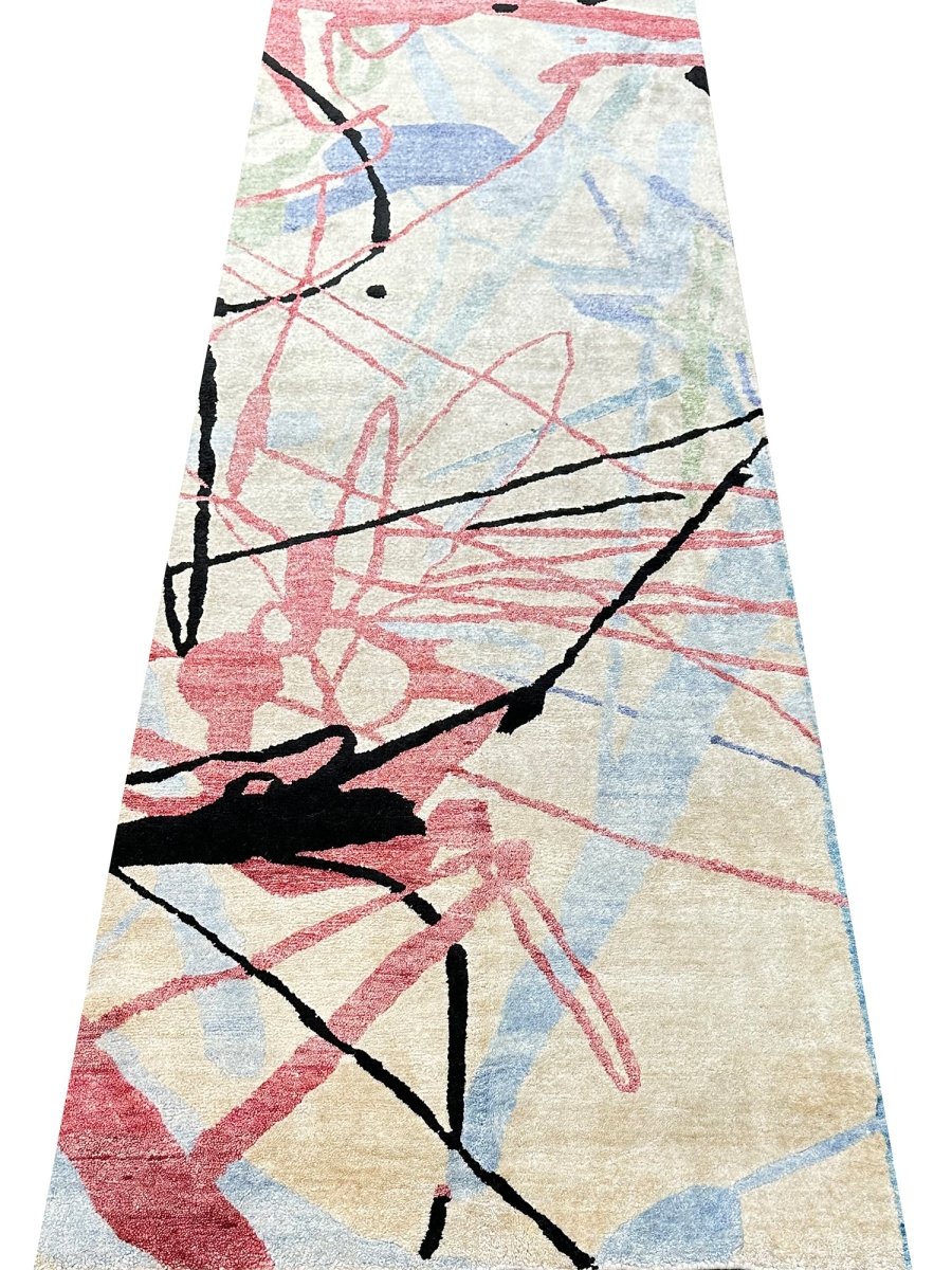 Enhance your living spaces with this one-of-a-kind 3x15 Modern Runner Rug, which features soft beige, blue, red, and black hues. Hand-knotted by skilled artisans, this rug adds a comfortable and artistic touch to any area. While the abstract pattern creates a chic yet inviting atmosphere. This elegant piece brings a unique character, sophistication, and warmth to your home decor. Enjoy the benefit of free shipping within the US for a hassle-free purchase.