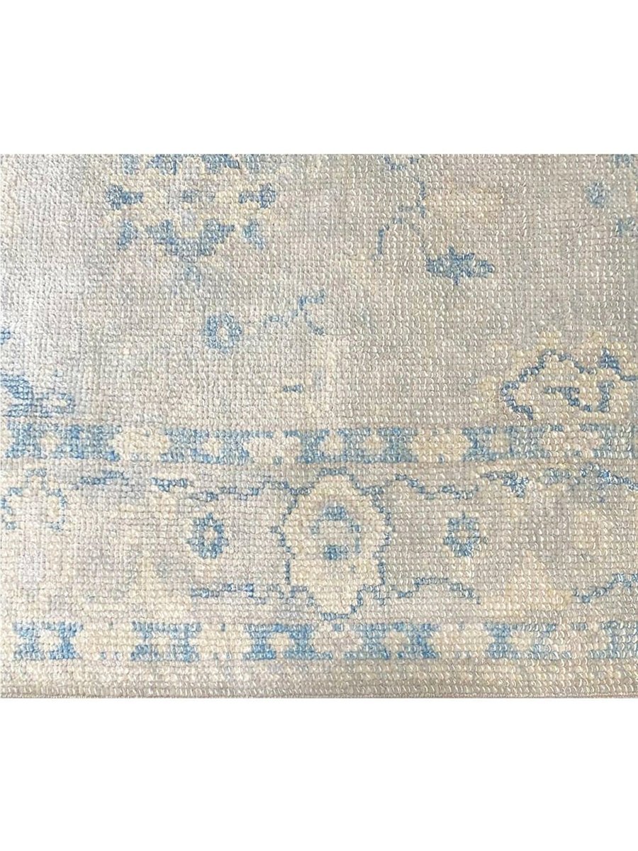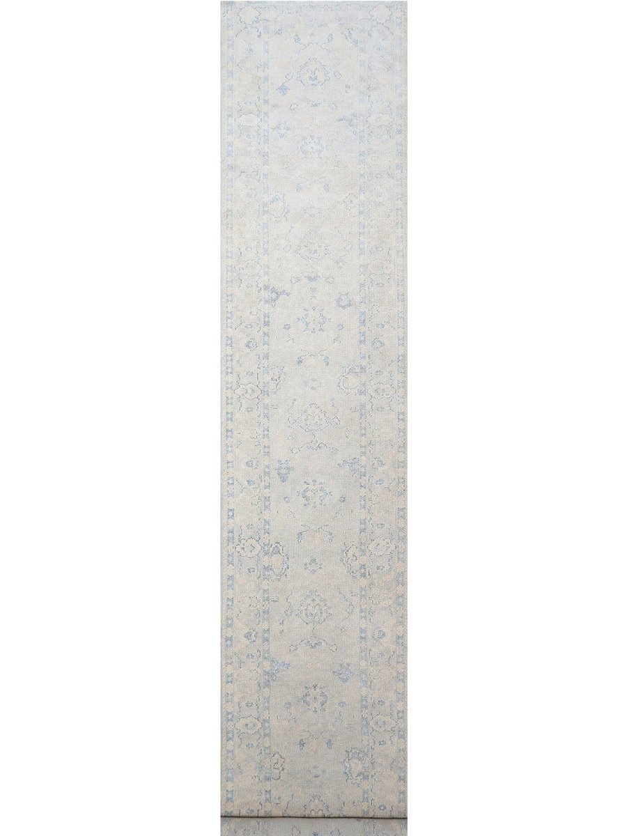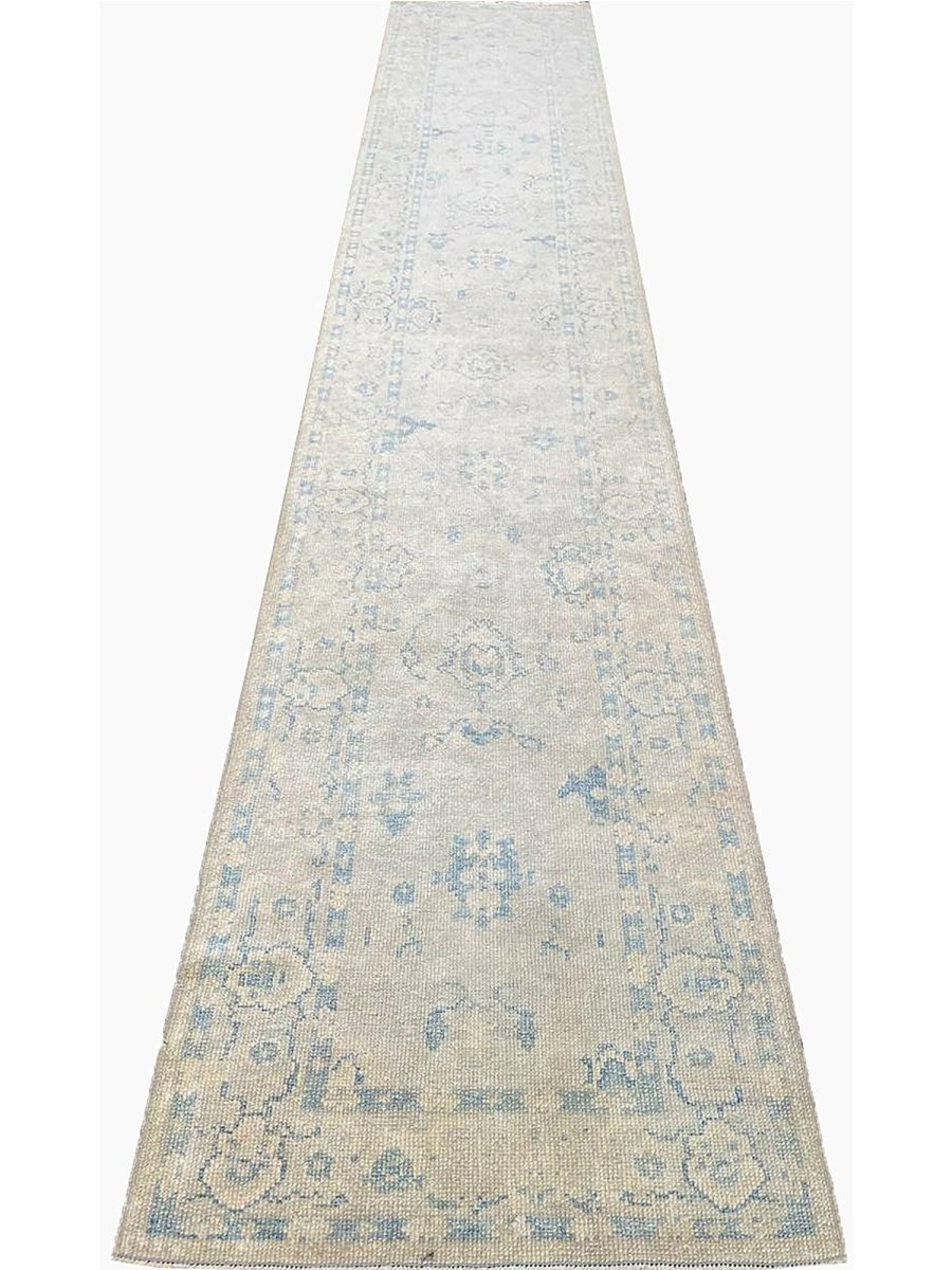 Enhance your space with the understated elegance of this 3x17 Turkish Oushak Runner Rug. This refined runner features a geometric pattern with delicate floral and diamond motifs, reflecting the traditional craftsmanship of Turkey. The light gray field is accented by soft blue and beige tones, creating a calm and sophisticated look. A detailed border with repeating geometric designs adds to its timeless appeal. Handmade with premium wool, this rug offers durability and a luxurious texture. Ideal for long hallways, entryways, or alongside furniture, it brings the authentic heritage of Turkish weaving to your home. Shop now to get free shipping in the United States.
