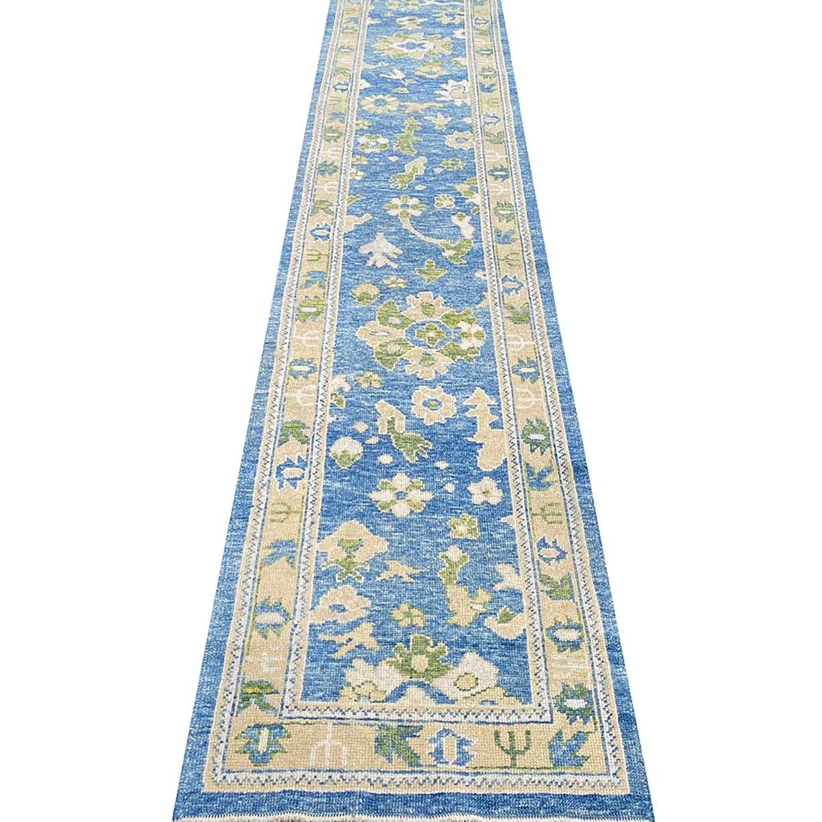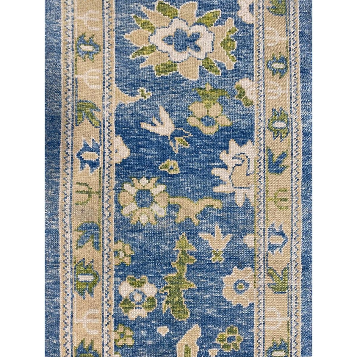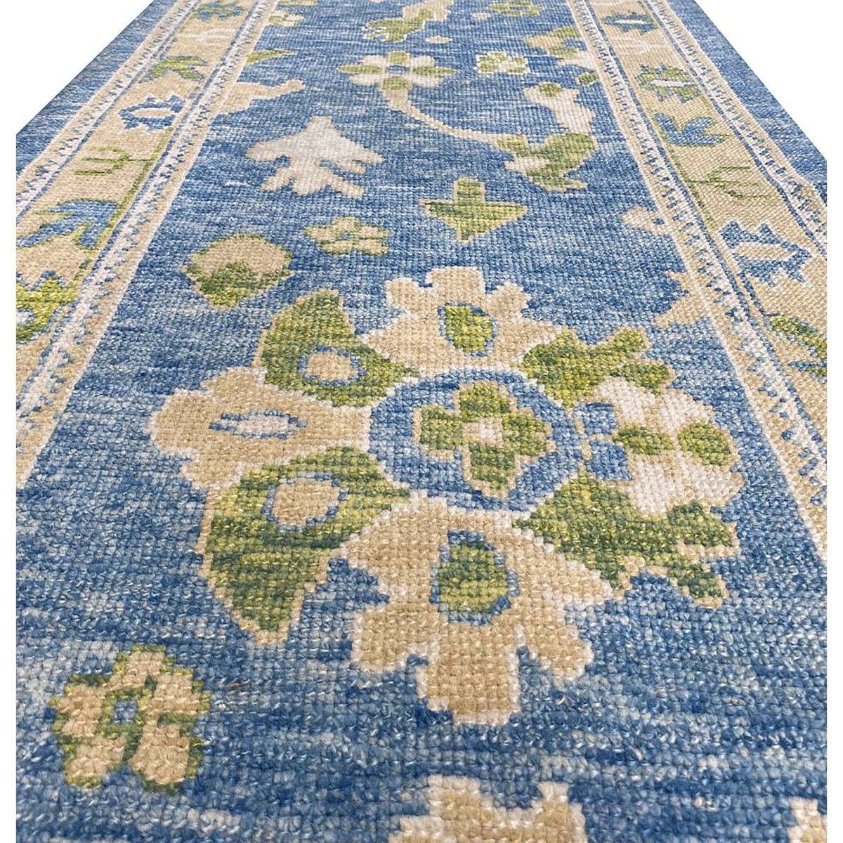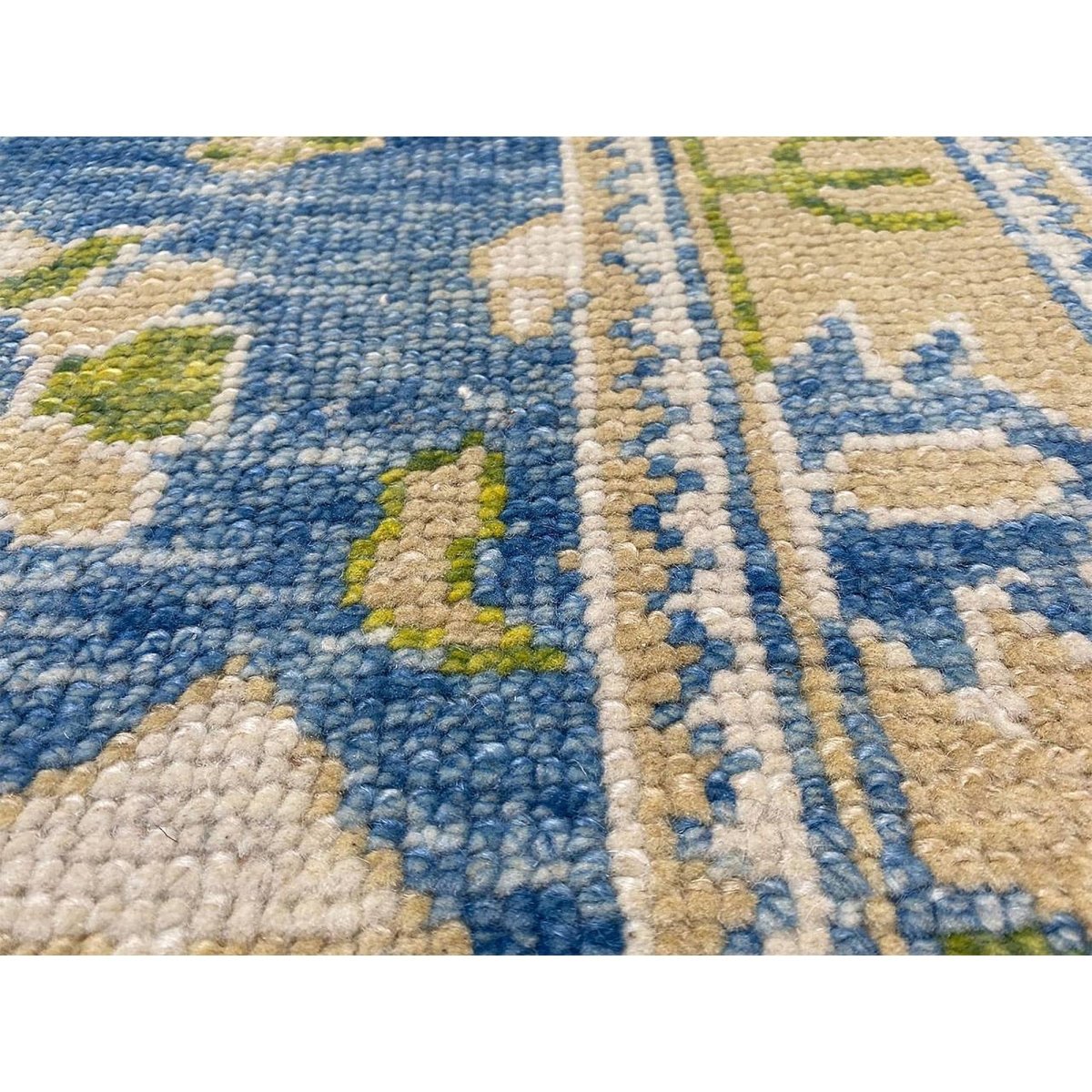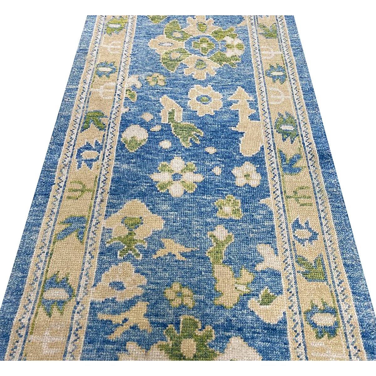 The 3x17 Turkish Oushak Runner Rug is a unique treasure that embodies the rich history of Turkish weaving and will transform your living area. Made from high-quality wool, this gorgeous traditional rug features a geometric design that blends in perfectly with any type of interior design. It provides a friendly atmosphere and is perfect narrow spaces such as hallways, dining halls, or as a chic addition in your workplace. It is a multipurpose addition to your house because of the striking blend of beige, blue, and sage green hues that offer depth and character. This amazing carpeting is a stunning work of art that elevates your living area and goes beyond simple decoration. Take advantage of free US delivery.
