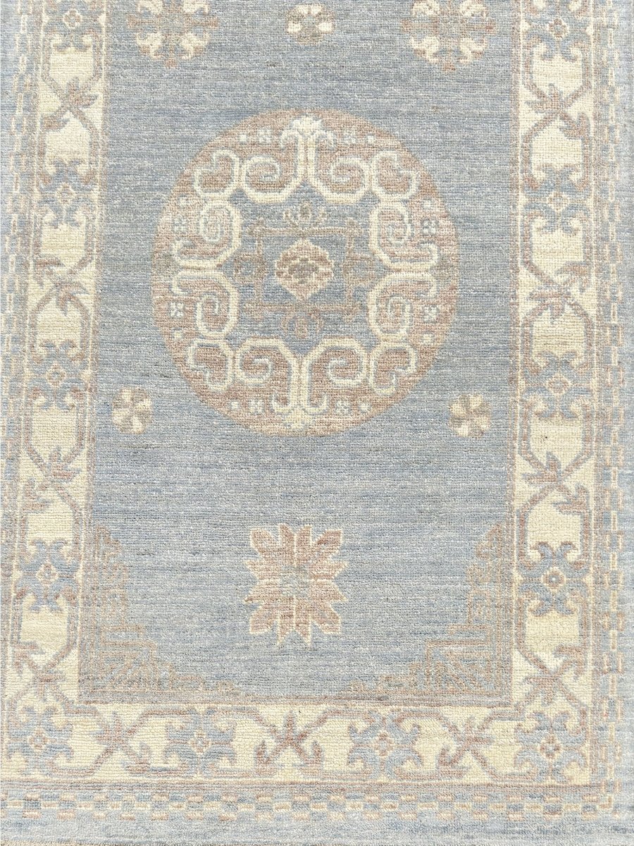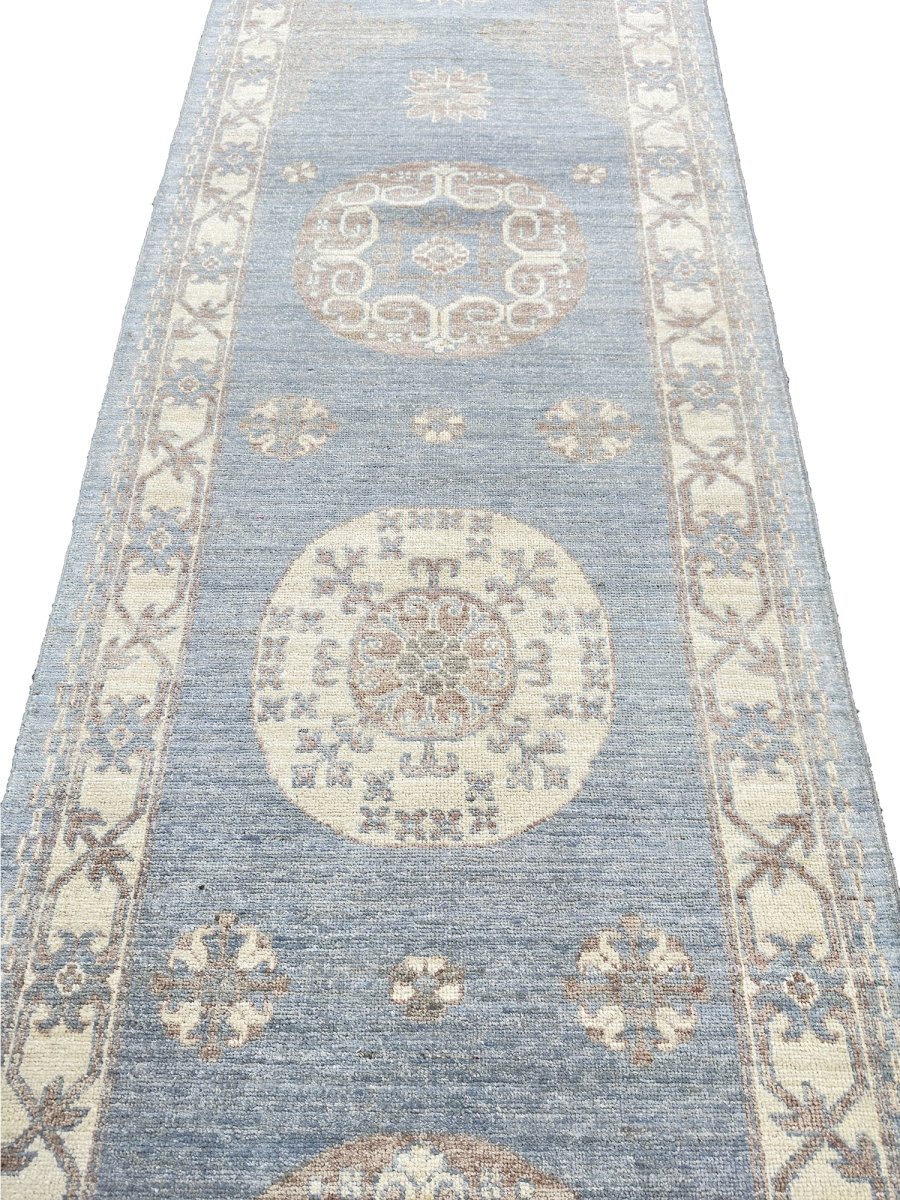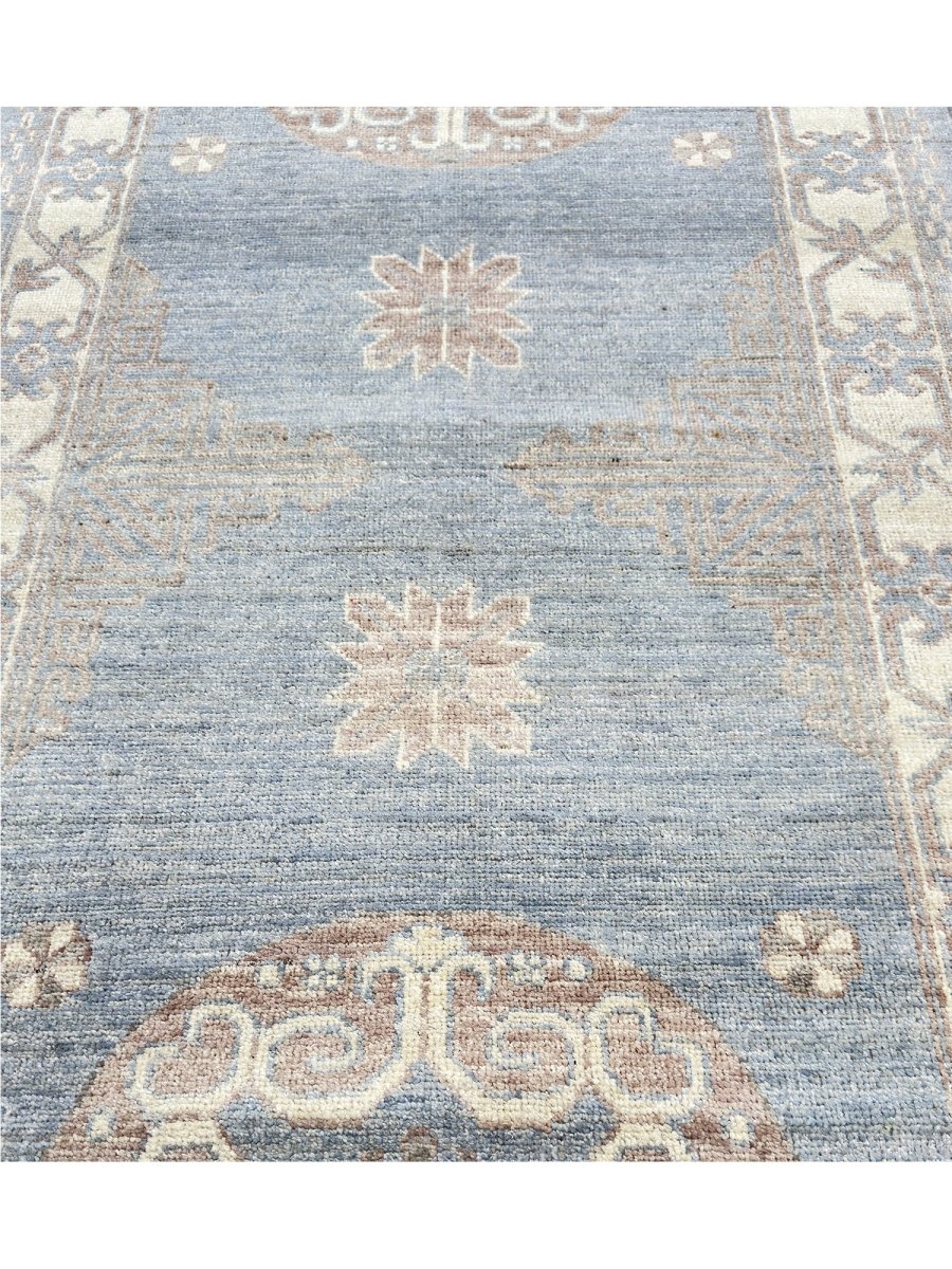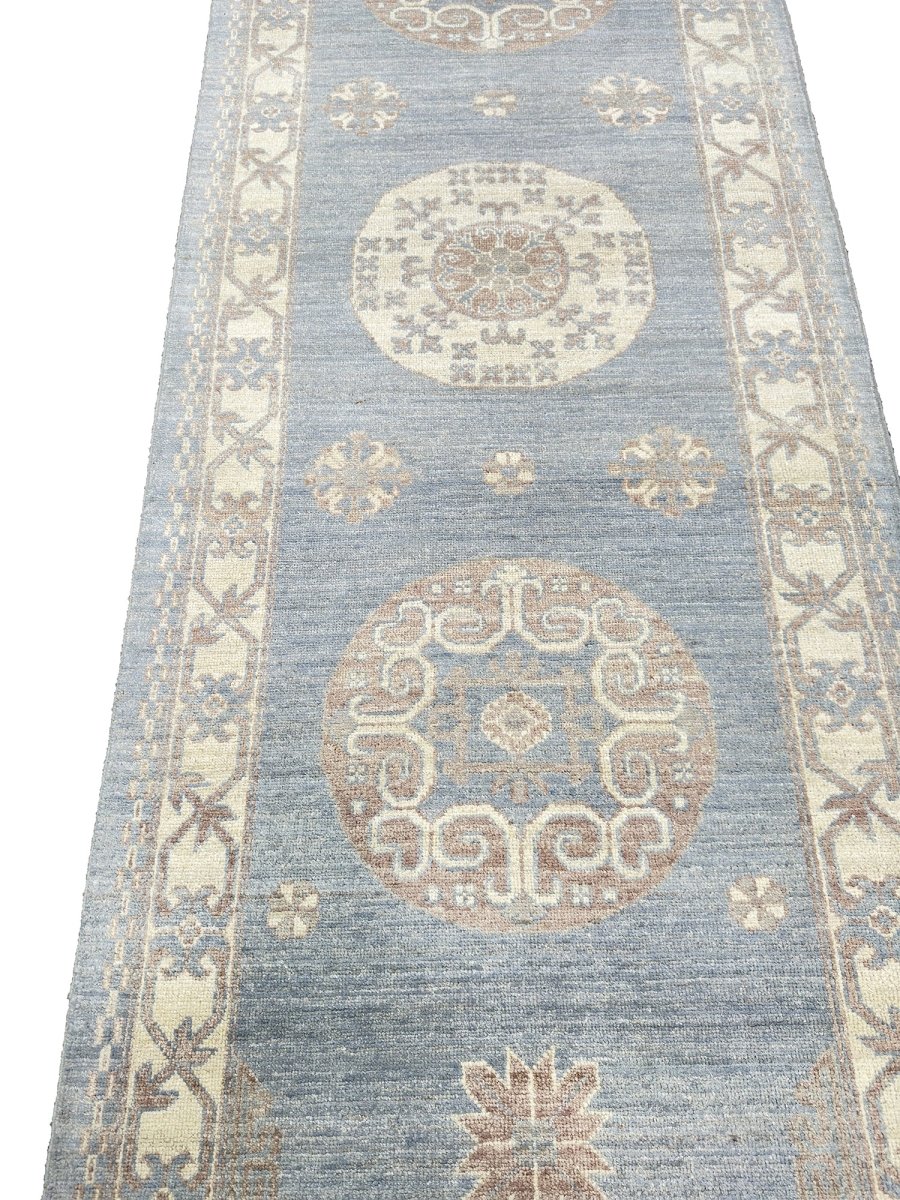 Transform your home with the 3x18 Pakistani Style Runner Rug, a unique piece that masterfully combines traditional artistry. Hand-knotted in premium wool, this exquisite traditional rug boasts a geometric design that brings warmth and elegance to every room. The calming tones of blue and beige add a peaceful touch to your interior design, making it a chic addition to many different styles. This incredible rug is more than just a decorative item, it's an ageless rug that beautifies your home. Get free shipping in the US.