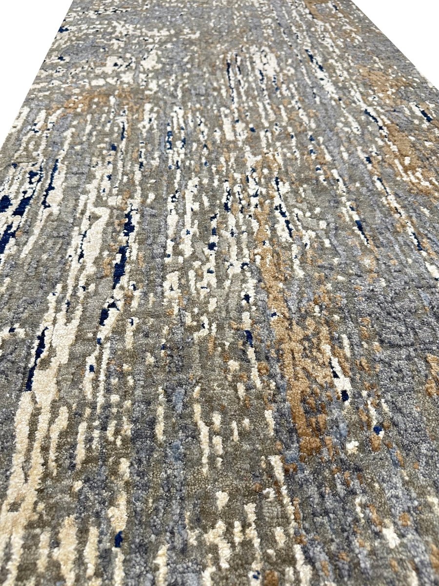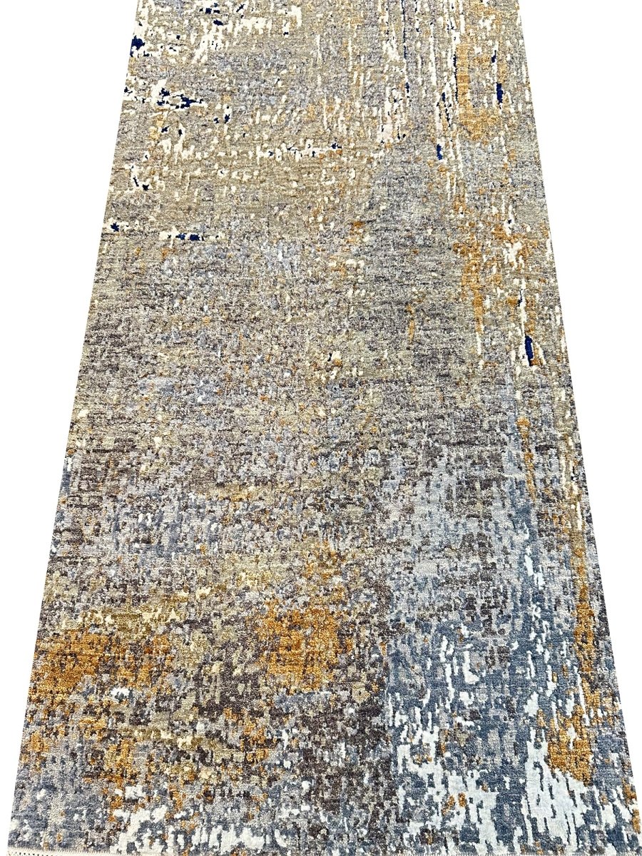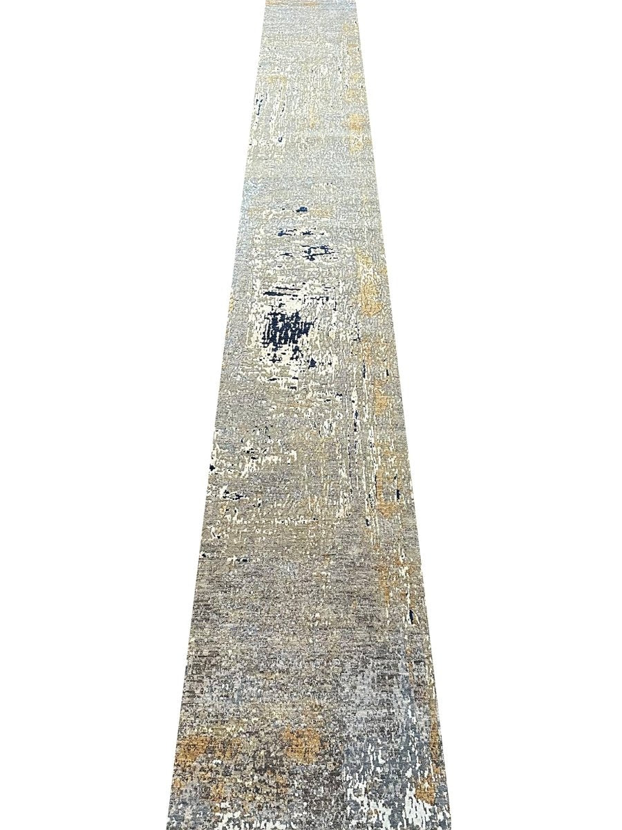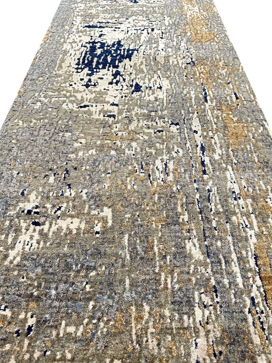 Transform your space with this 3x20 Modern Runner Rug, a perfect balance of sophistication and artistry. Hand-knotted in India from premium wool, it boasts a luxuriously soft texture while ensuring long-lasting durability. The sleek beige, gray, taupe, navy, and orange hues and intricate abstract patterns create a classic aesthetic, making an ideal choice for minimalist interiors. Designed to seamlessly complement different decor styles, this rug adds depth, dimension, and character to any space. Its high-quality craftsmanship and artistic appeal will elevate the ambiance.