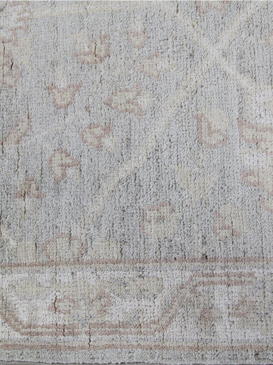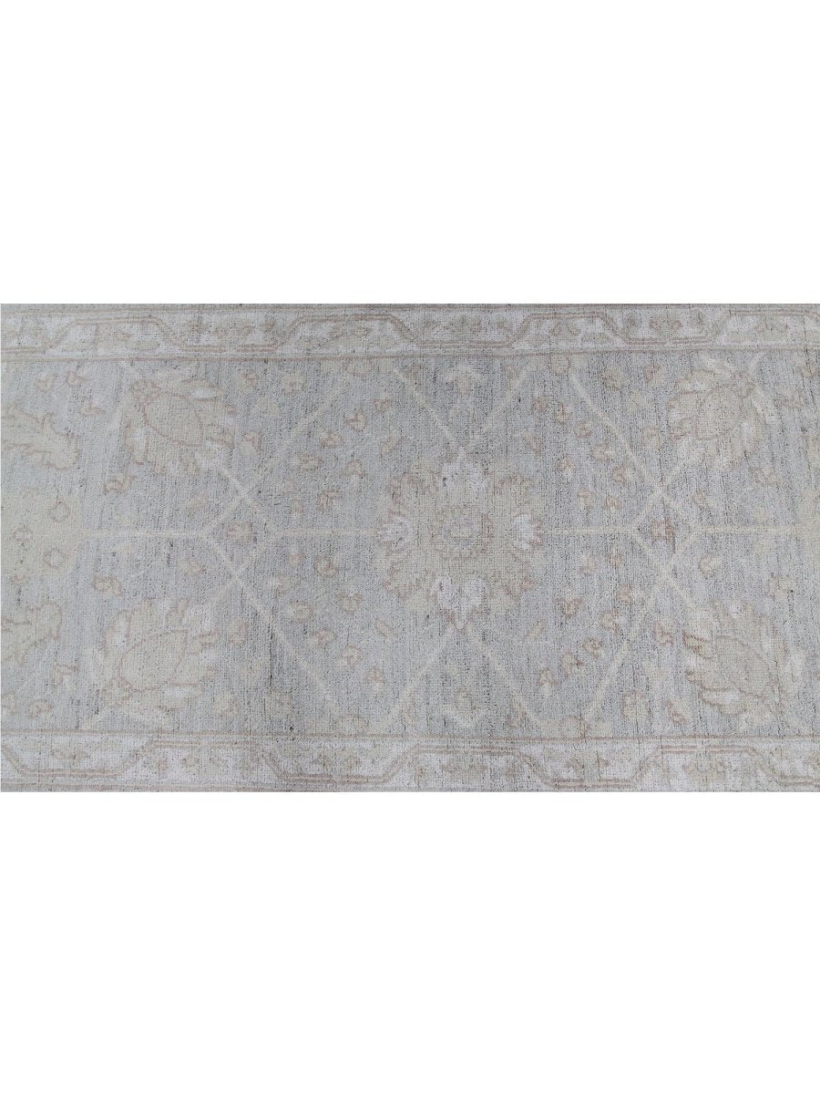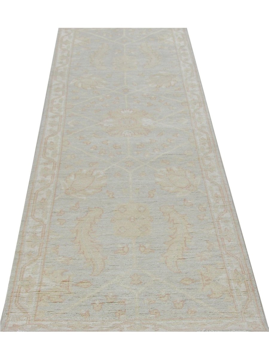 Discover the beauty of this 3x8 Persian Oushak Style Runner Rug. Handwoven in Pakistan, this rug showcases skilled artistry. Its size makes it an excellent choice for hallways, entryways, and narrow spaces, adding a touch of traditional elegance to your decor. The detailed floral pattern gives it a sophisticated feel. The color palette appears dominated by very light tones of ivory and gray, creating a serene and spacious feel. Subtle variations within this light spectrum suggest hints of the palest beige in certain areas, adding depth without disrupting the overall airy aesthetic. The design elements, while intricate, are rendered in these gentle hues, contributing to the rug's understated elegance. Made from durable wool, this rug is more than just a floor covering; it's a work of art that will enhance your home decor for years. Enjoy the lasting charm of a handwoven rug, plus free shipping within the United States.