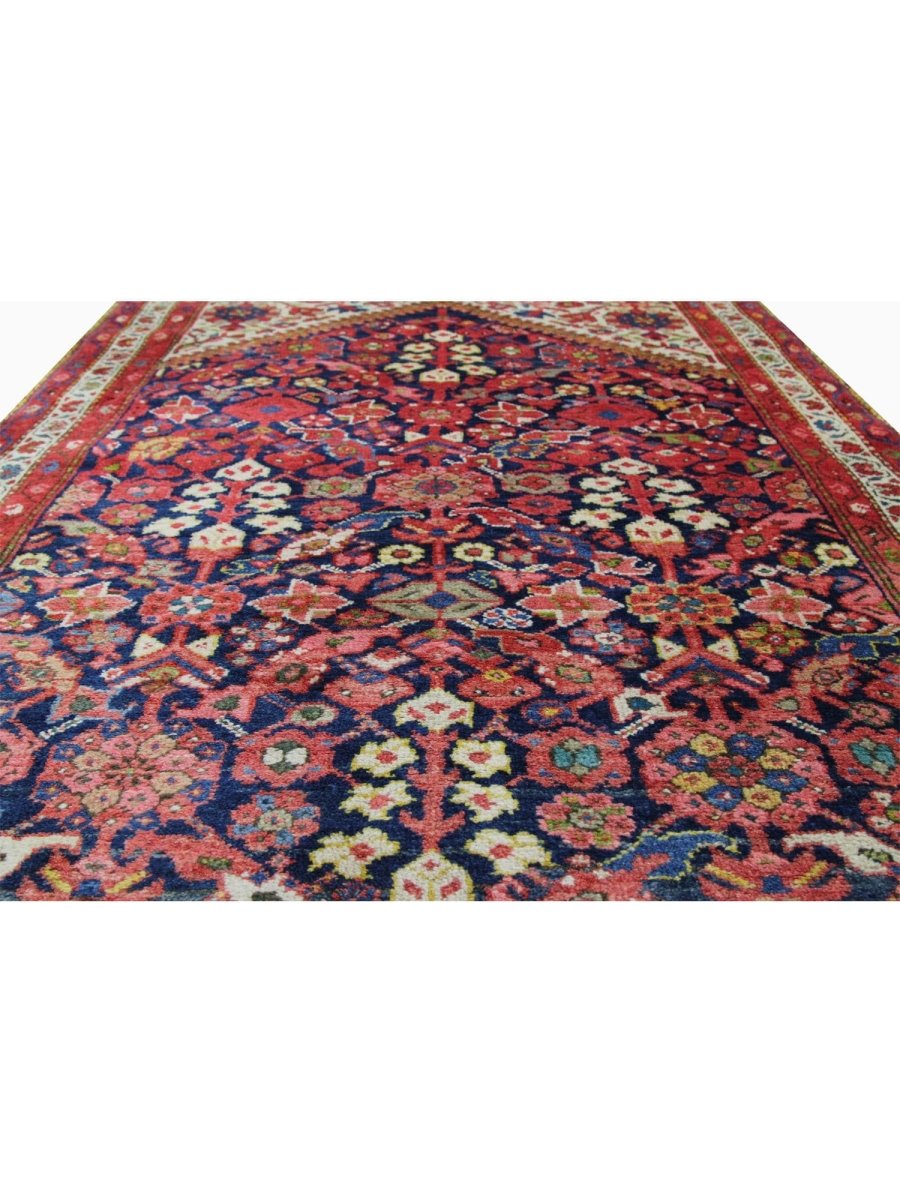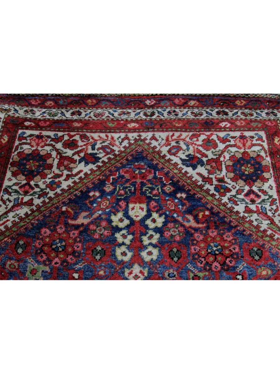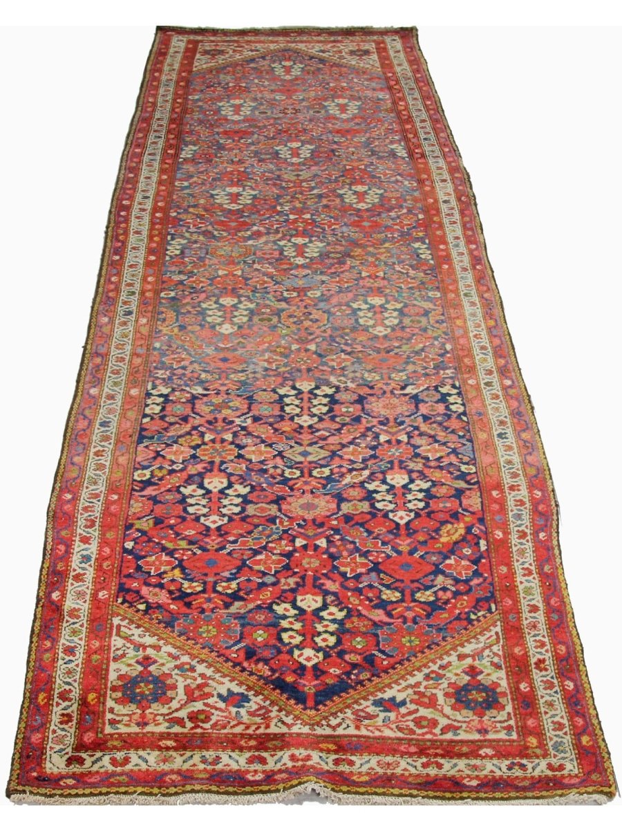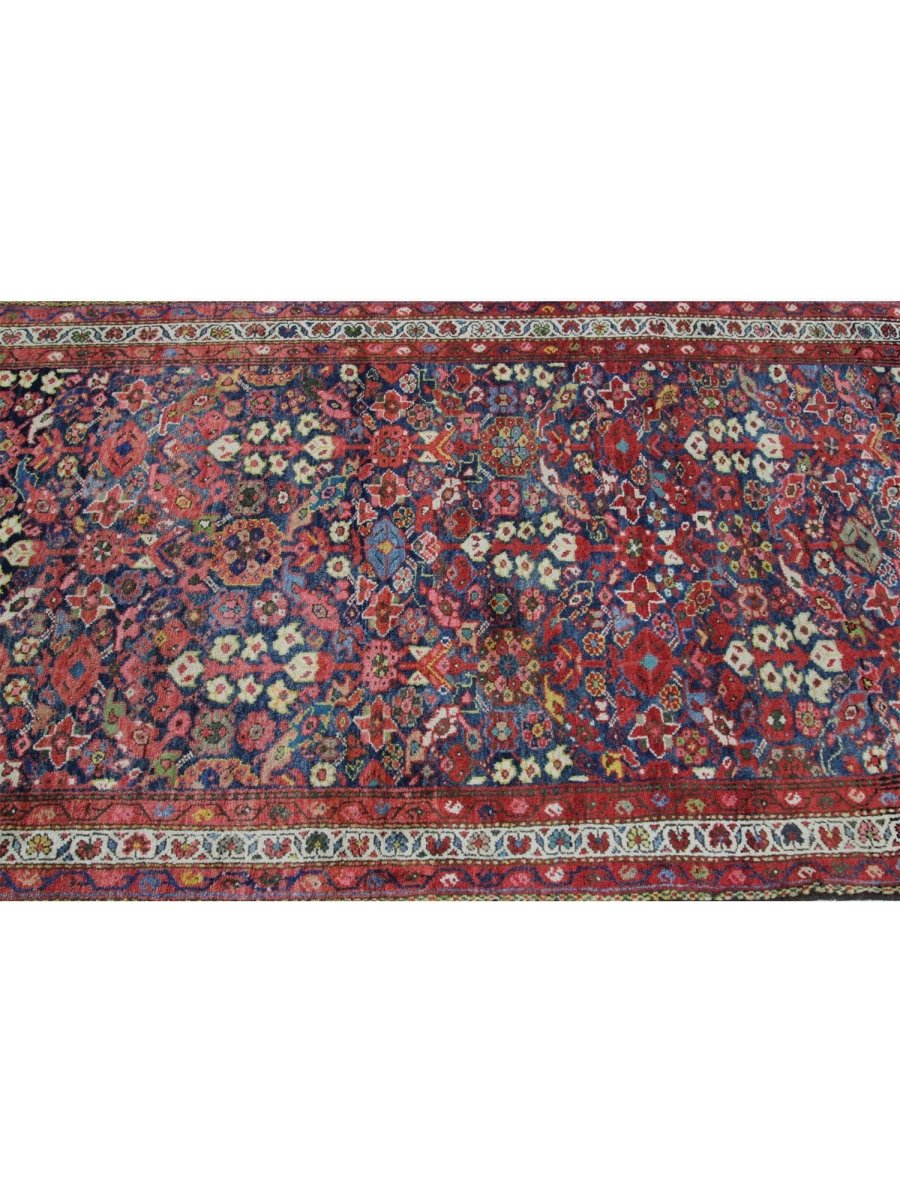 The 4x13 Old Persian Hamedan Runner Rug is a unique treasure that embodies the rich history of Persian weaving and will transform your living area. Made from high-quality wool, this gorgeous rug features a floral design that blends in perfectly with any type of interior design. It provides a friendly atmosphere and is perfect for narrow spaces such as hallways or entryways or as a chic addition in your workplace. It is a multipurpose addition to your house because of the striking blend of red, pink, blue, ivory, and taupe hues that offer depth and character. This amazing carpeting is a stunning work of art that elevates your living area and goes beyond simple decoration. Take advantage of free US delivery.