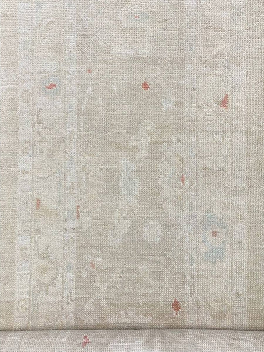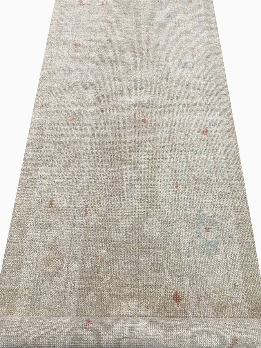 The 3x13 Turkish Oushak Runner Rug is a unique treasure that embodies the rich history of Turkish weaving and will transform your living area. Made from high-quality wool, this gorgeous traditional rug features a geometric design that blends in perfectly with any type of interior design. It provides a friendly atmosphere and is perfect for narrow spaces such as hallways or entryways or as a chic addition in your workplace. It is a multipurpose addition to your house because of the striking blend of beige, brown, gray, and rust that offer depth and character. This amazing carpeting is a stunning work of art that elevates your living area and goes beyond simple decoration. Take advantage of free US delivery.