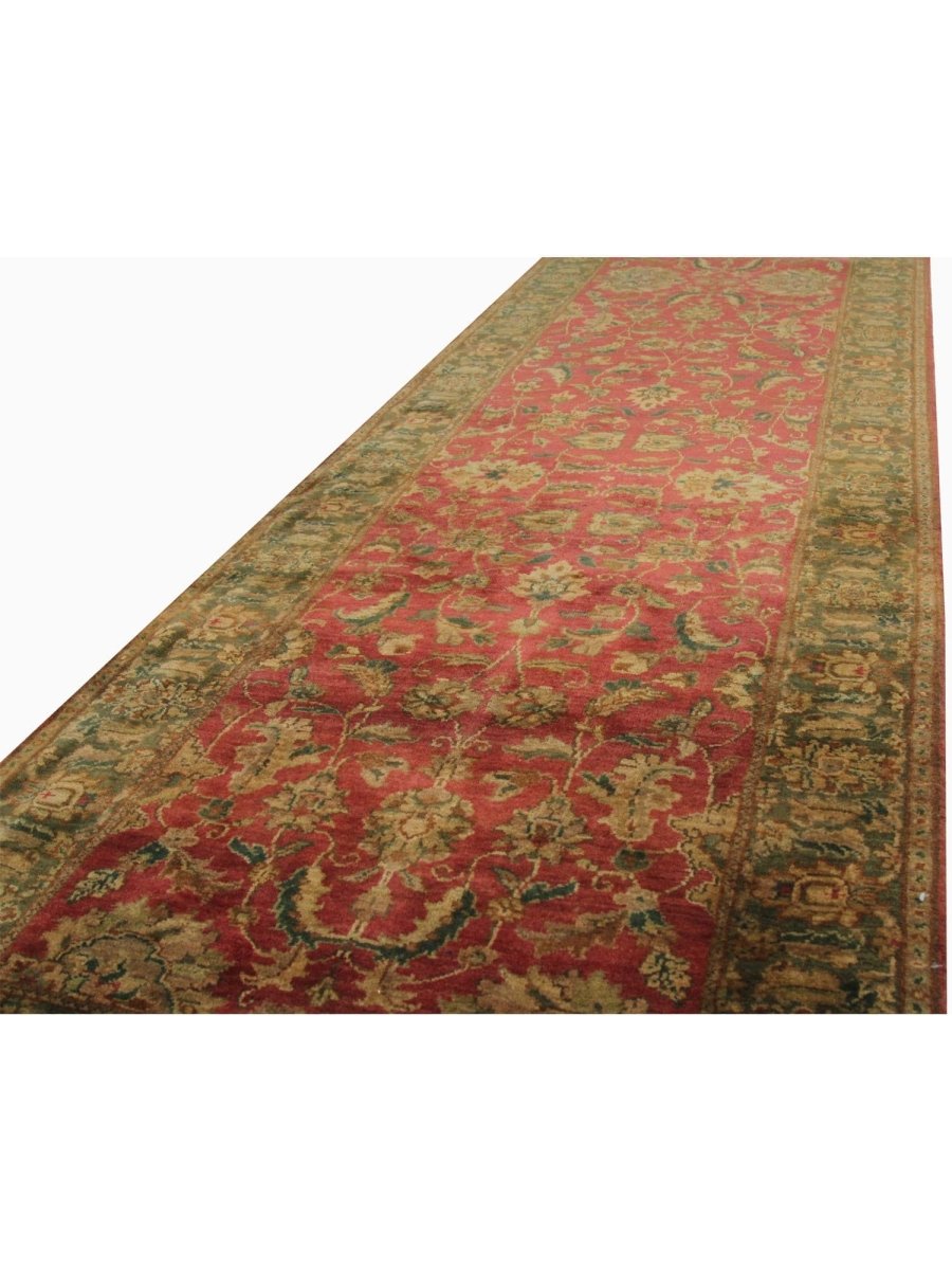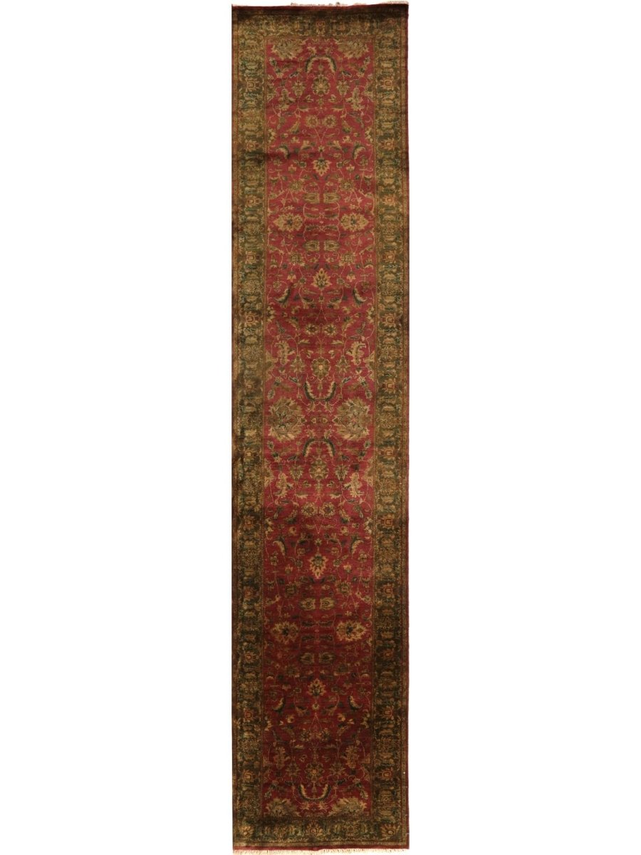 The 3x16 Handwoven Indian Agra Runner is a unique product that skillfully combines classic craftsmanship with beauty to enhance your home. This beautiful, hand-knotted rug, made from high-quality wool, features a floral pattern that transforms any room. It creates a cozy and inviting atmosphere. Its versatility makes it a great option for any decor style, thanks to the serene ambiance created by the perfect blend of warm rust, earthy green, and rich brown. This stunning rug is not just an incredible piece of artwork; it also elevates your home. Enjoy free U.S. delivery.