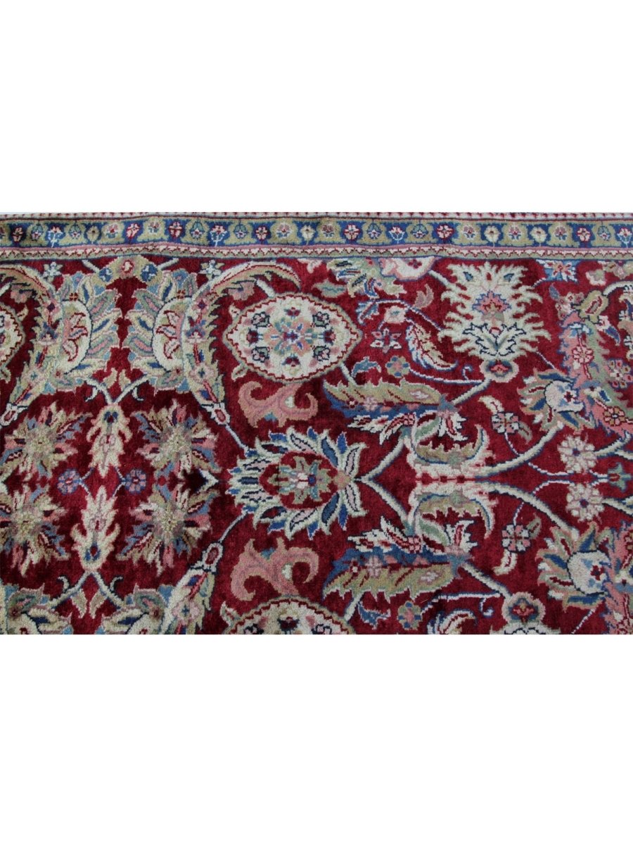 With its lovely floral pattern in deep burgundy, soft beige, and rich brown that symbolizes traditional craftsmanship, this unique 3x11 Indian Agra Runner Rug will transport you to a world of luxury. Hand-knotted from premium wool, this rug is ideal for adding flair to your dining room, hallway, or foyer. Its lengthy design and elaborate features create a cozy and welcoming ambiance, making it the perfect option for any home. More than just a floor covering, this unique rug conveys a story. Enjoy free delivery on this gorgeous item within the United States!